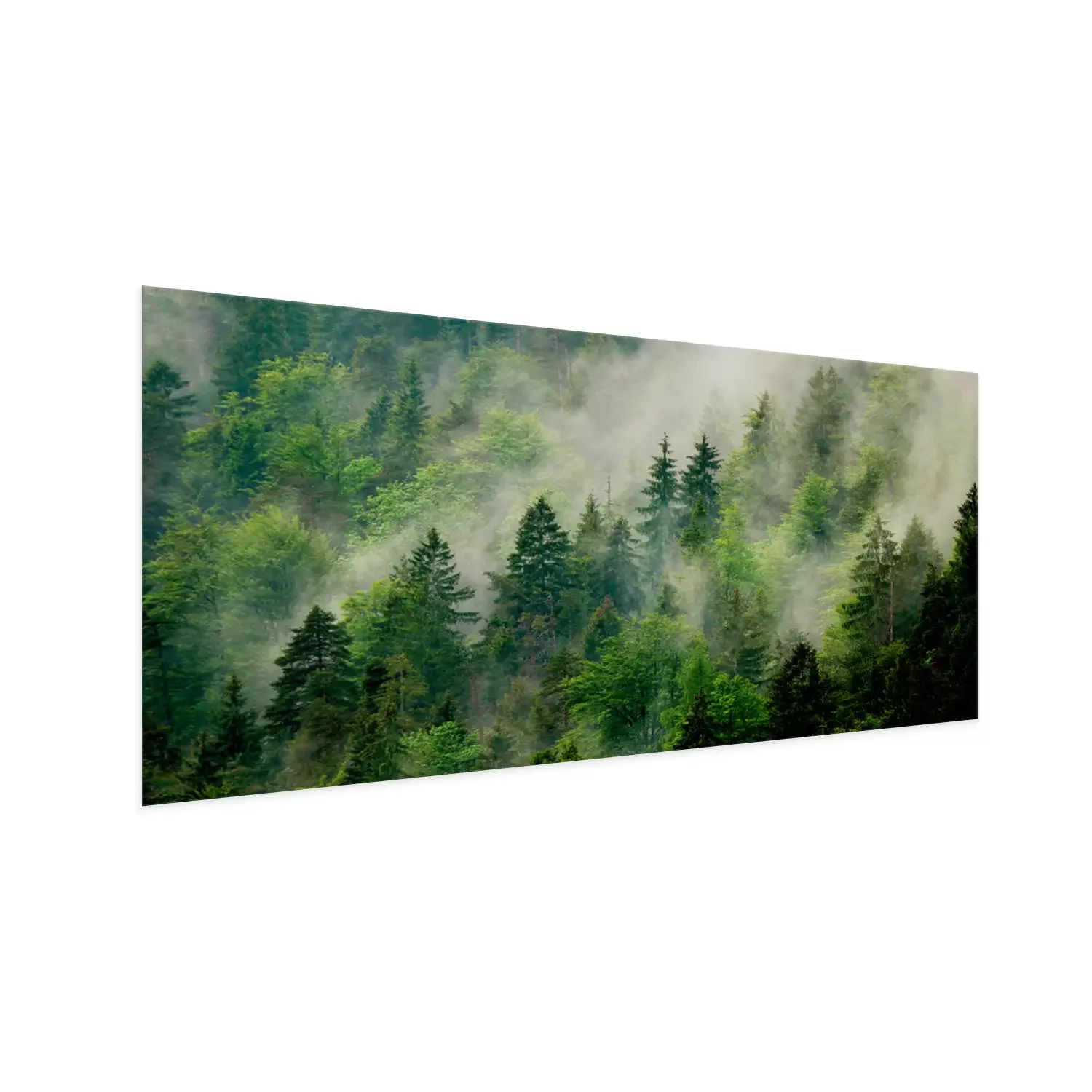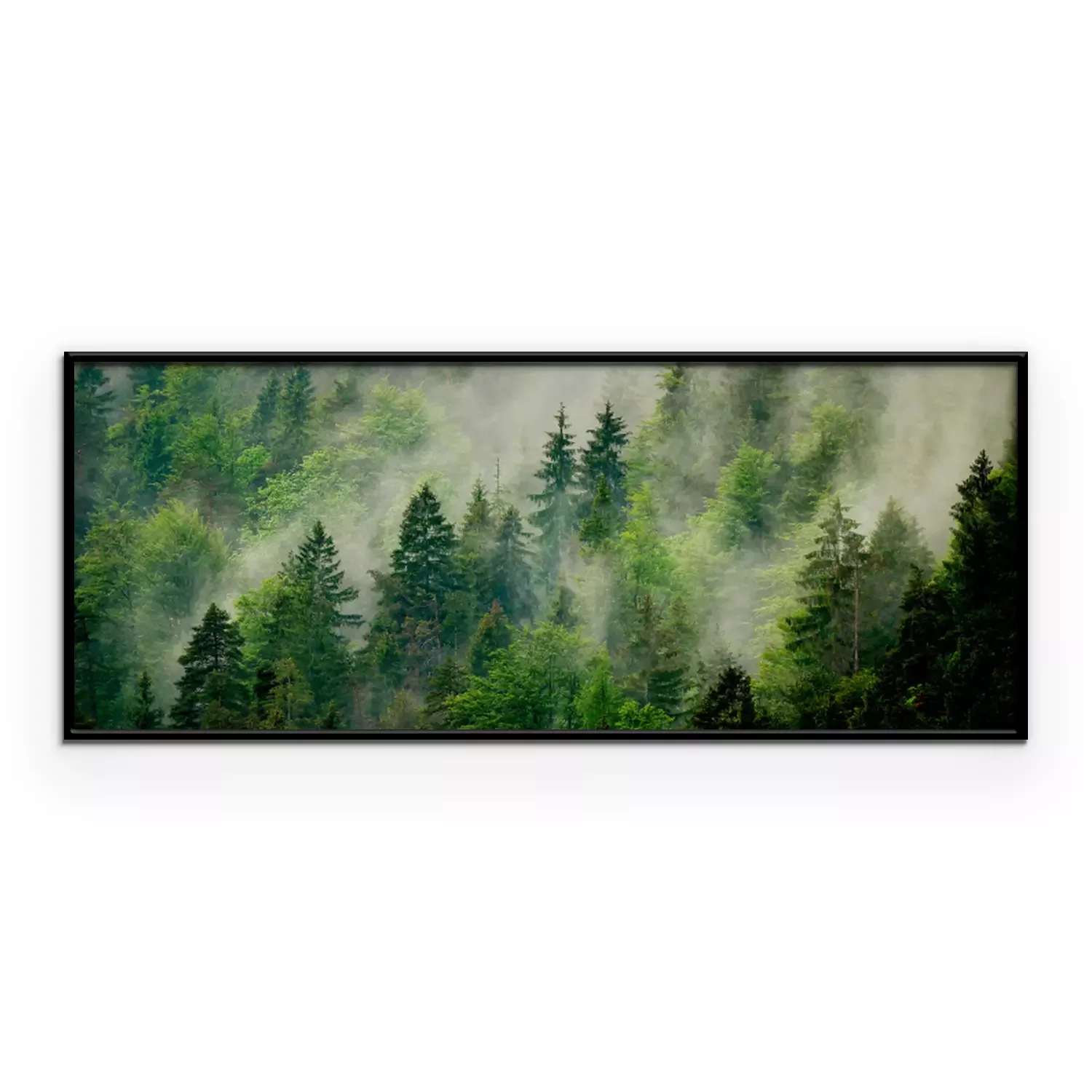 Poster  Brouillard de forêt enveloppant des arbres verts