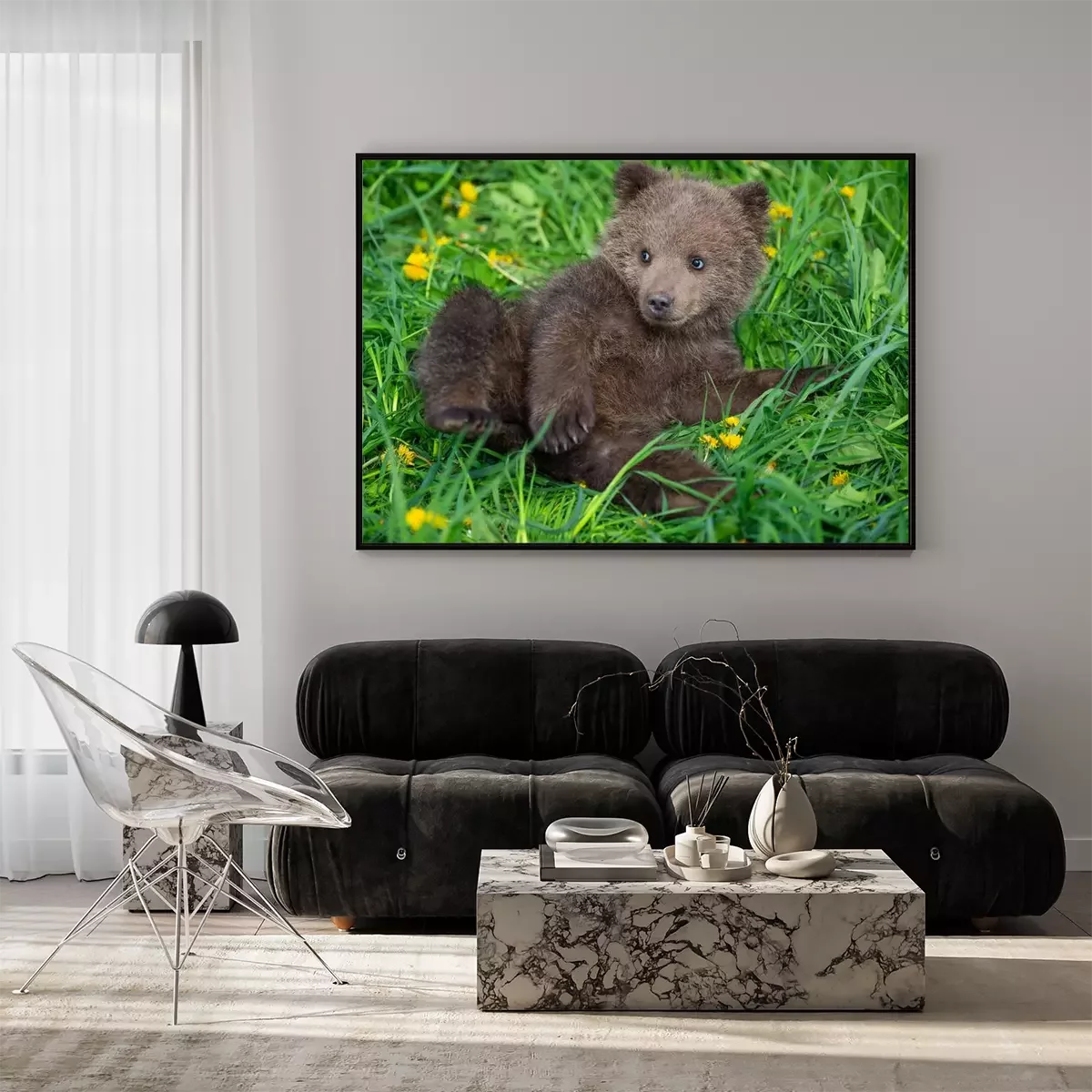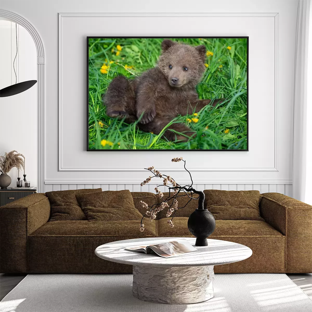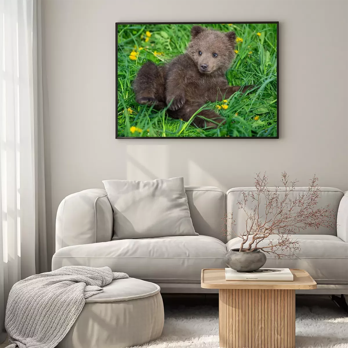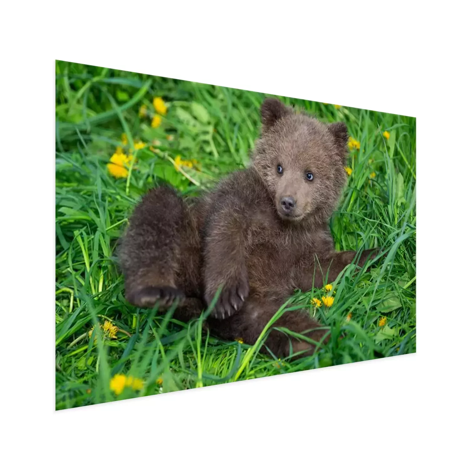Poster  Brown bear cub playing on the summer field