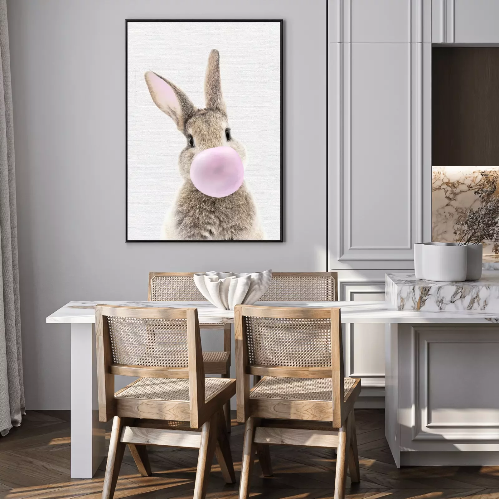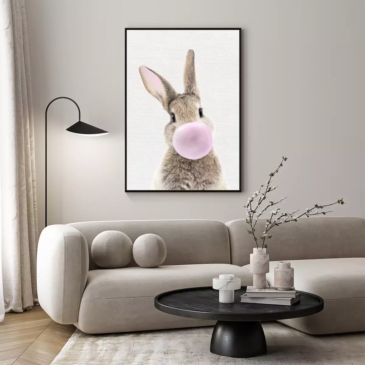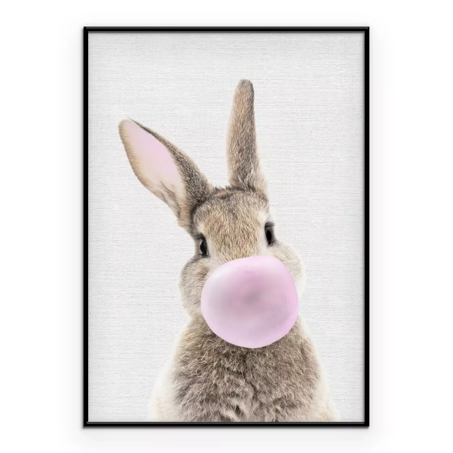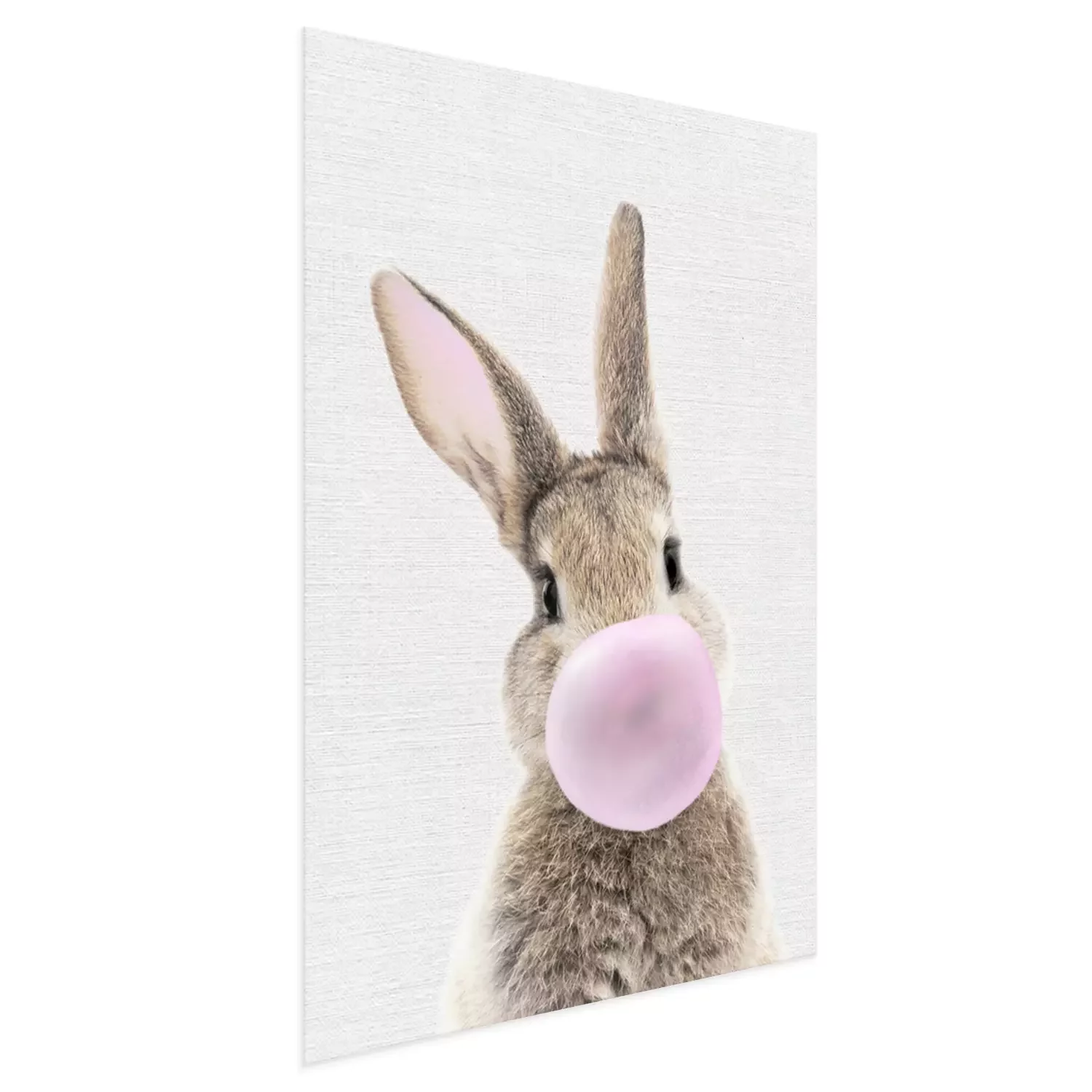 Poster  Bunny Rabbit on white textured Background with pink Balloon