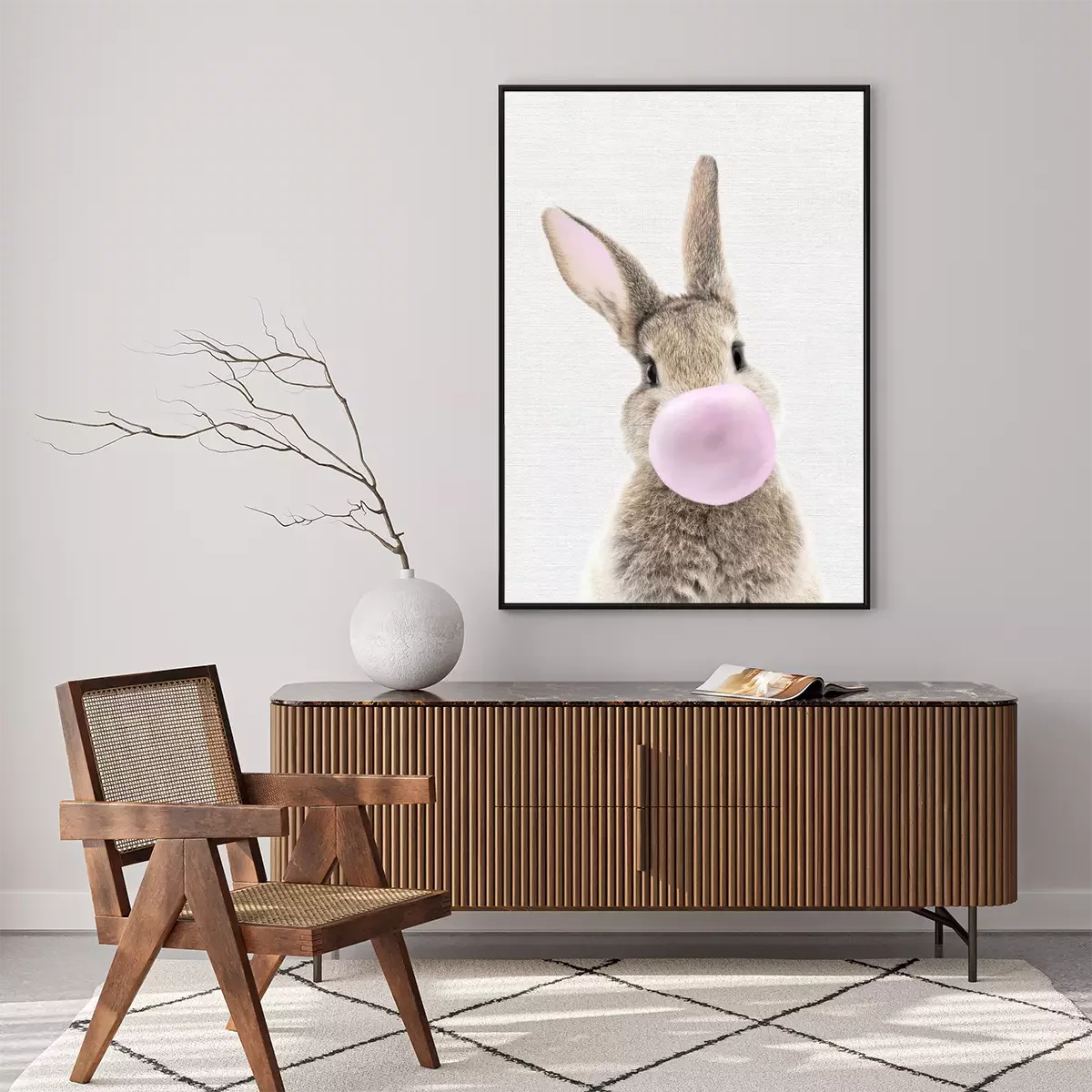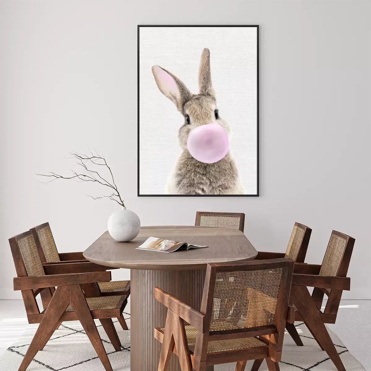 Poster : Bunny Rabbit on white textured Background with pink Balloon