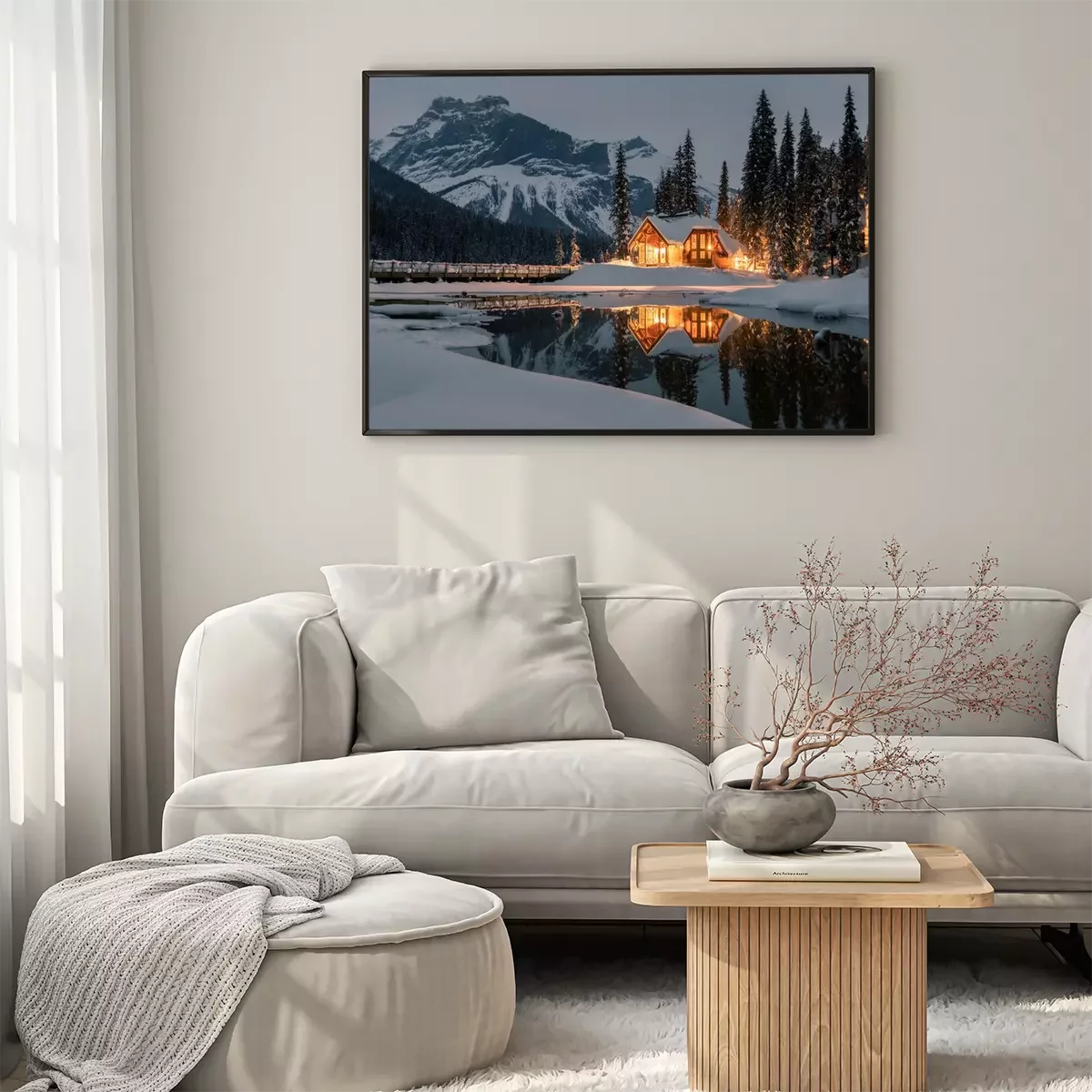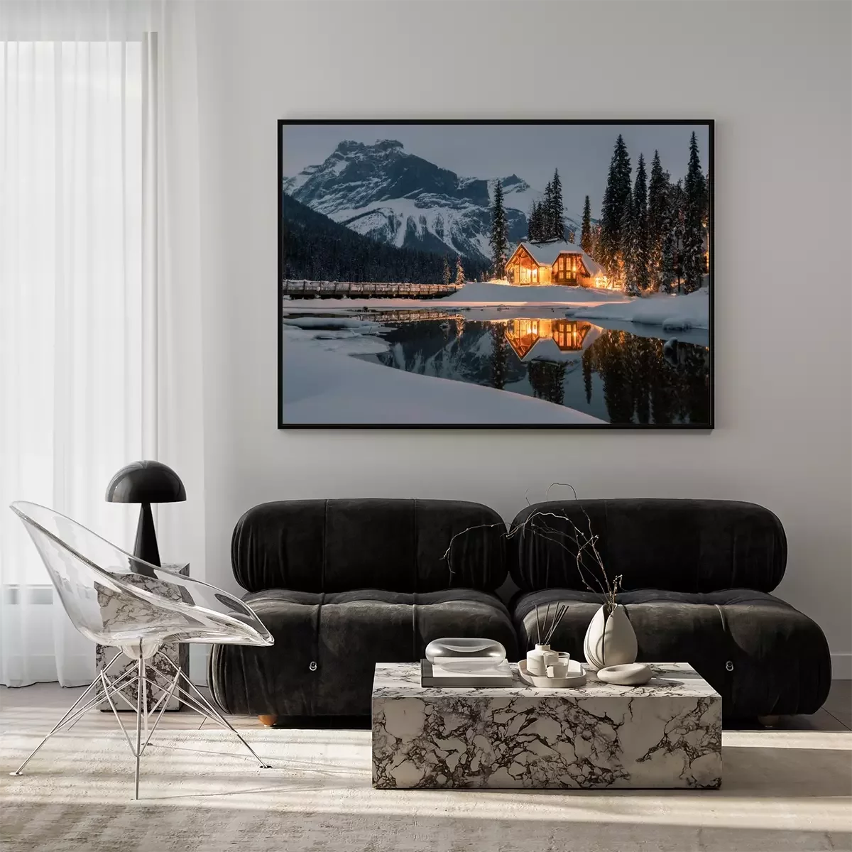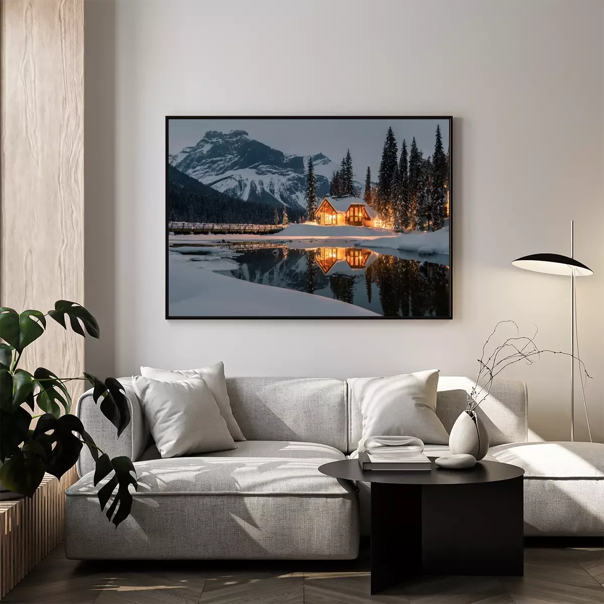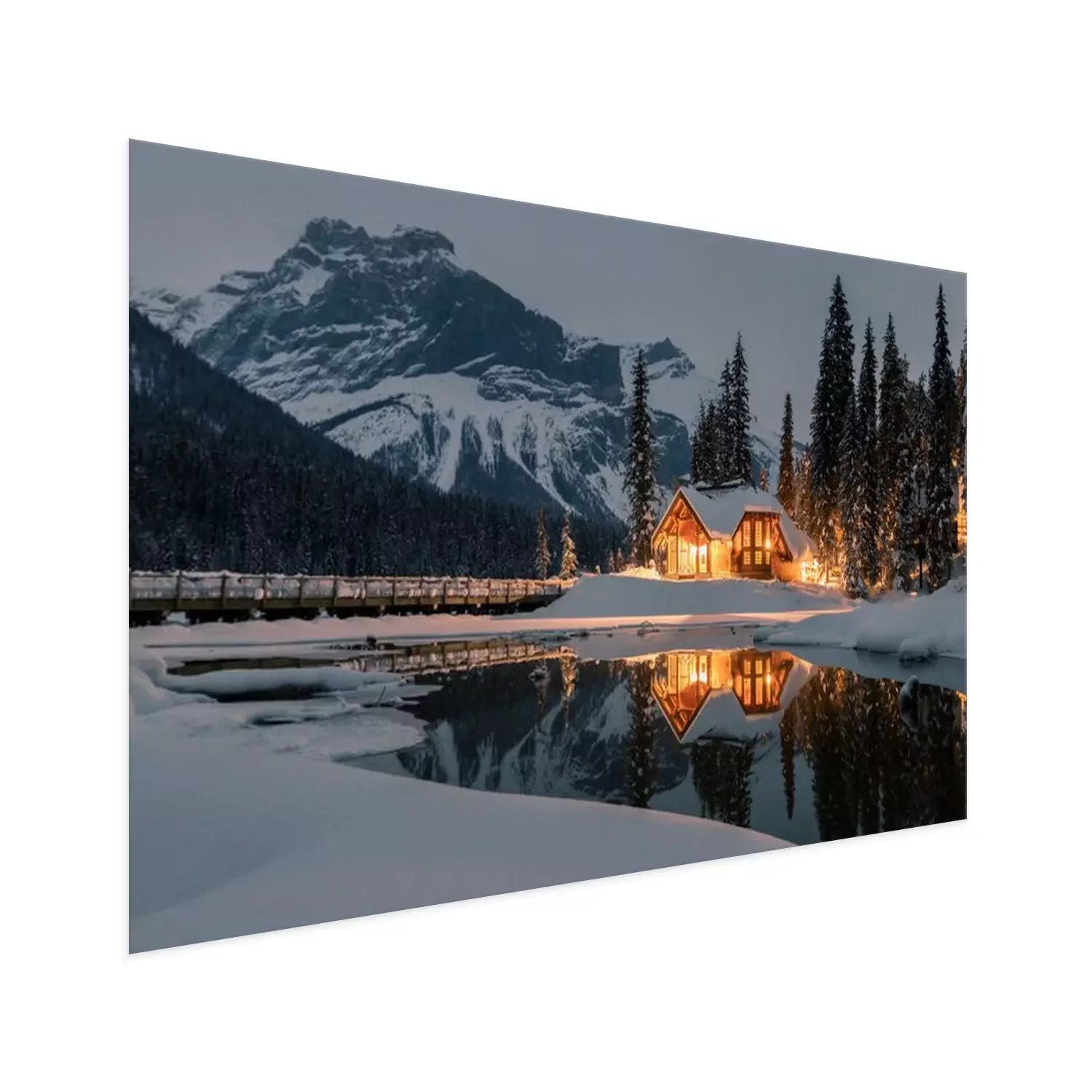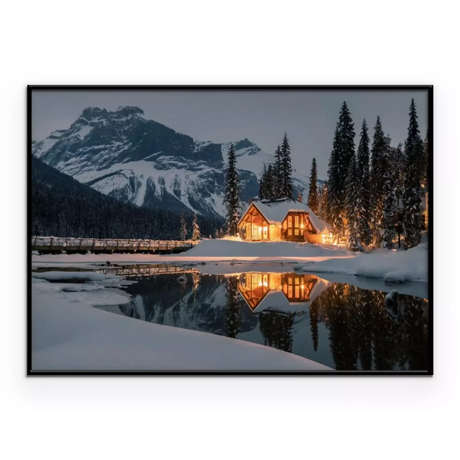 Poster : Cabane d'hiver à la montagne au bord du lac