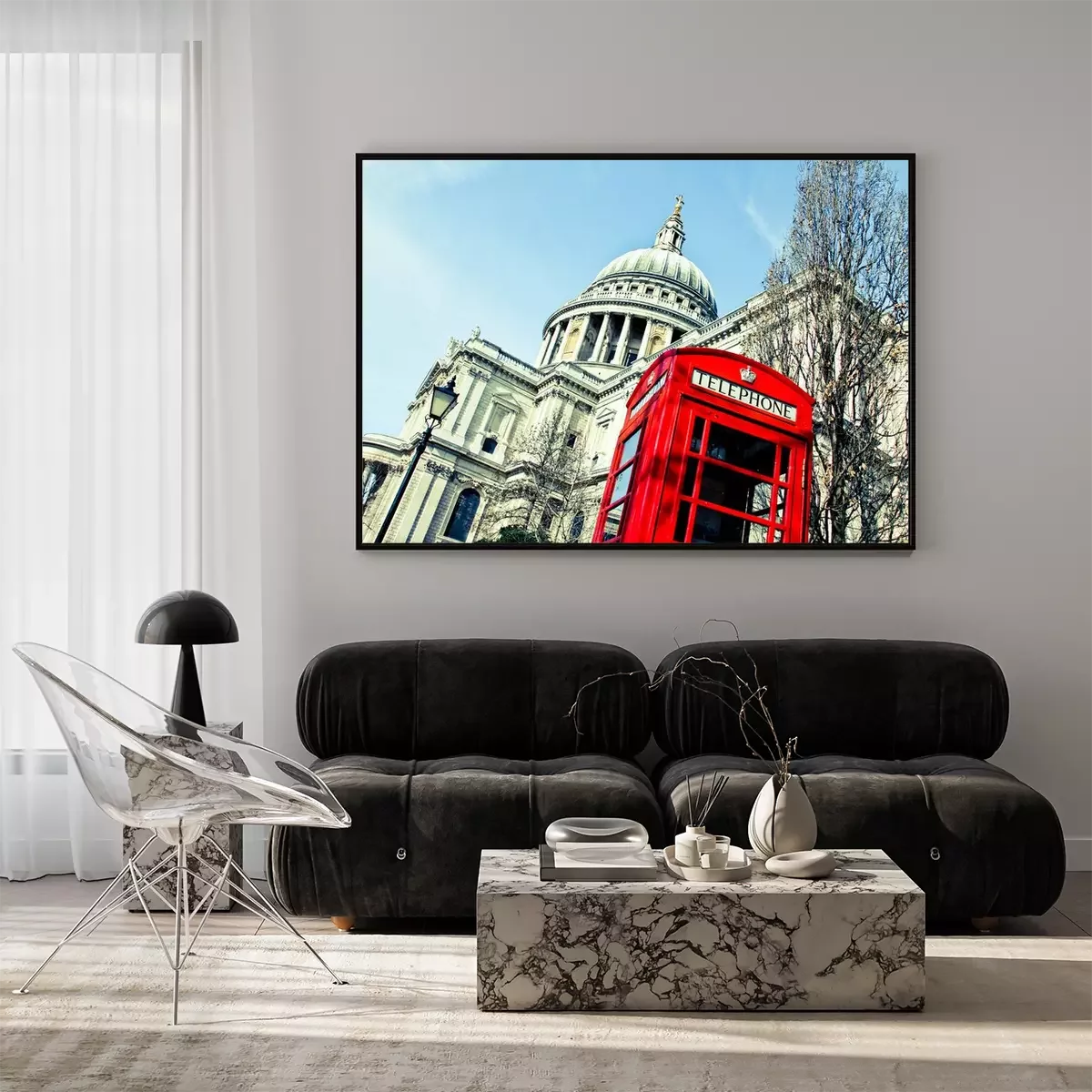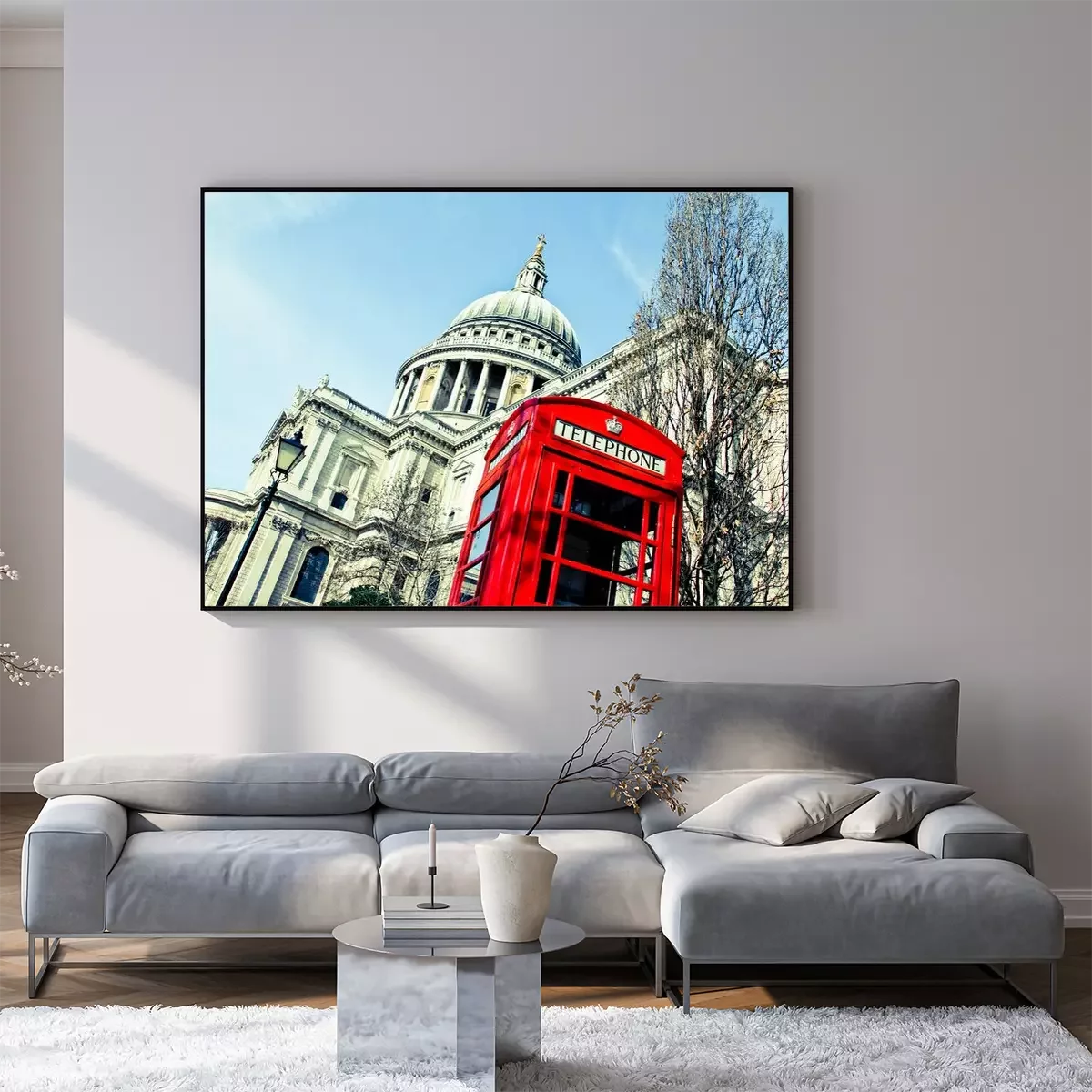 Poster  Cabine téléphonique de Londres sur le fond de St Pauls