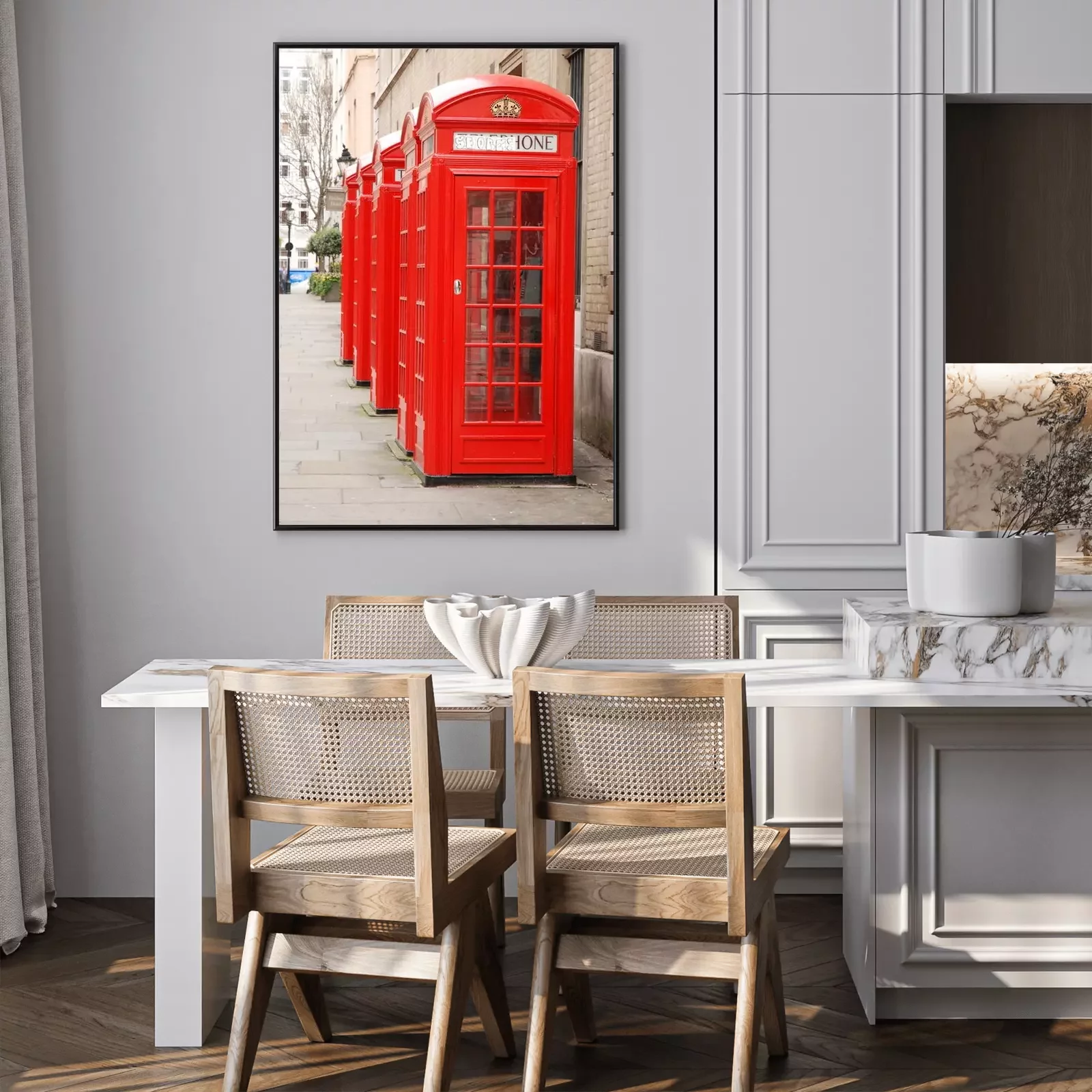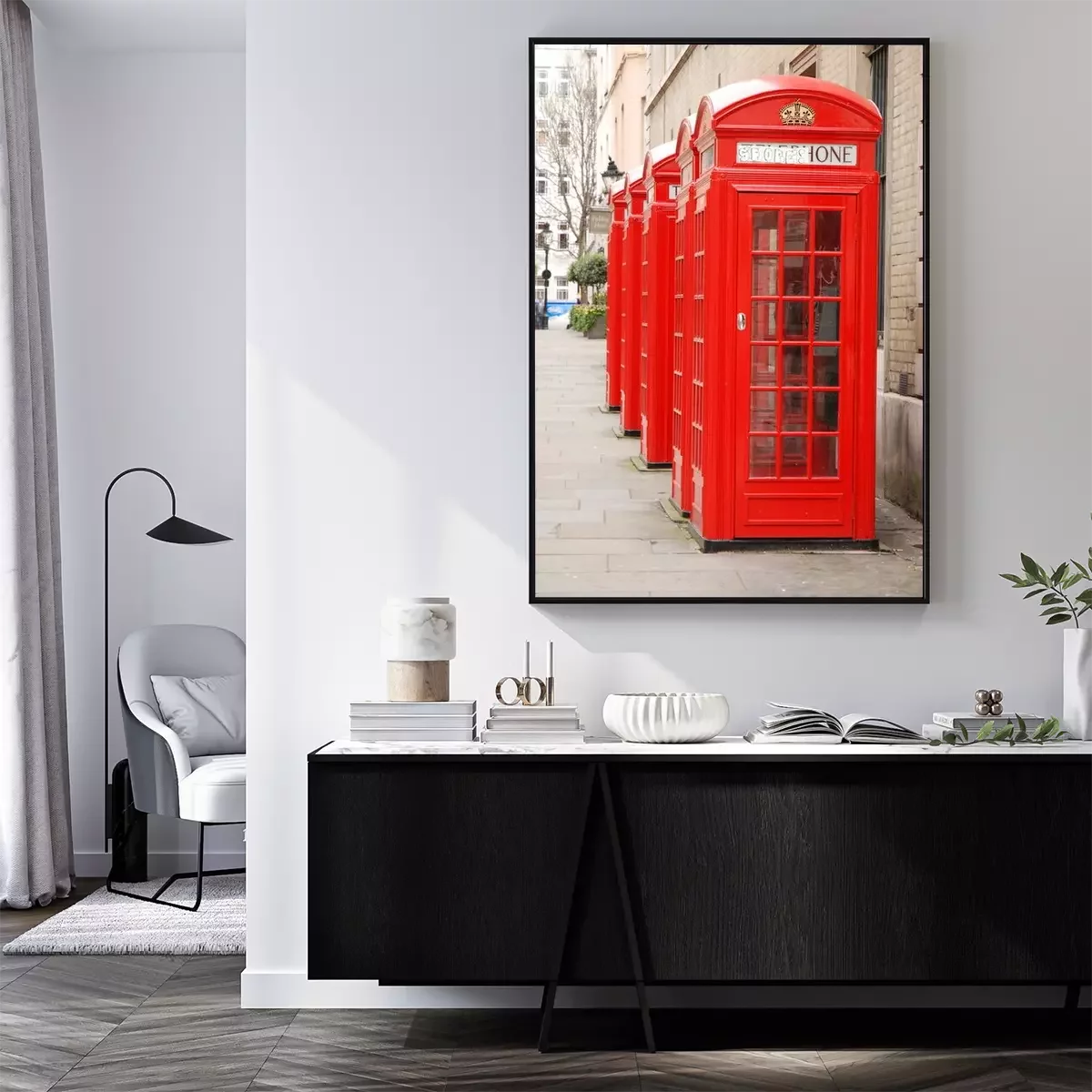 Poster : Cabines téléphoniques dans une rangée de Londres