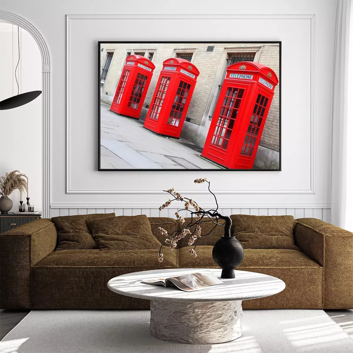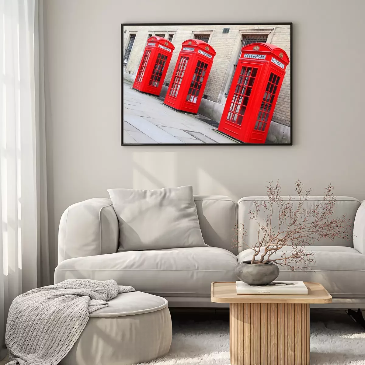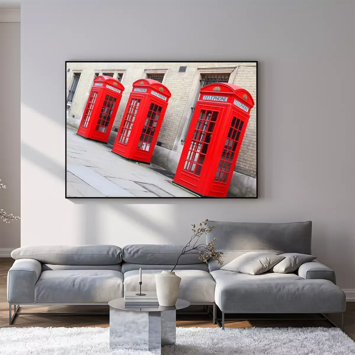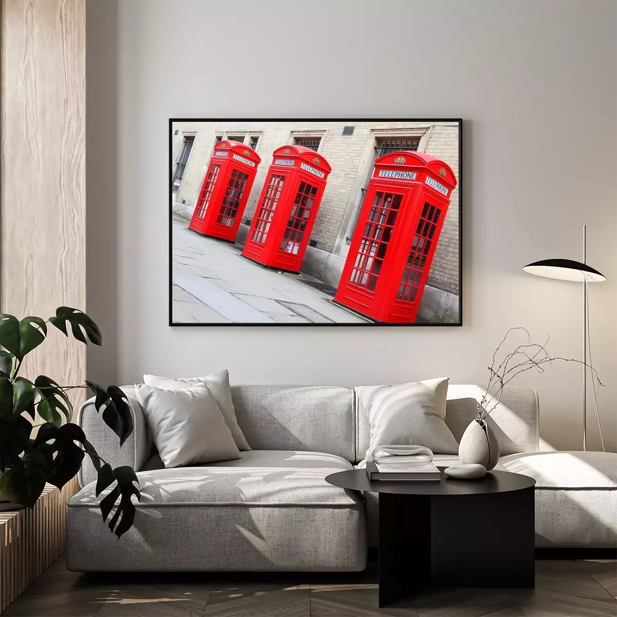 Poster  Cabines téléphoniques rouges sous le bâtiment