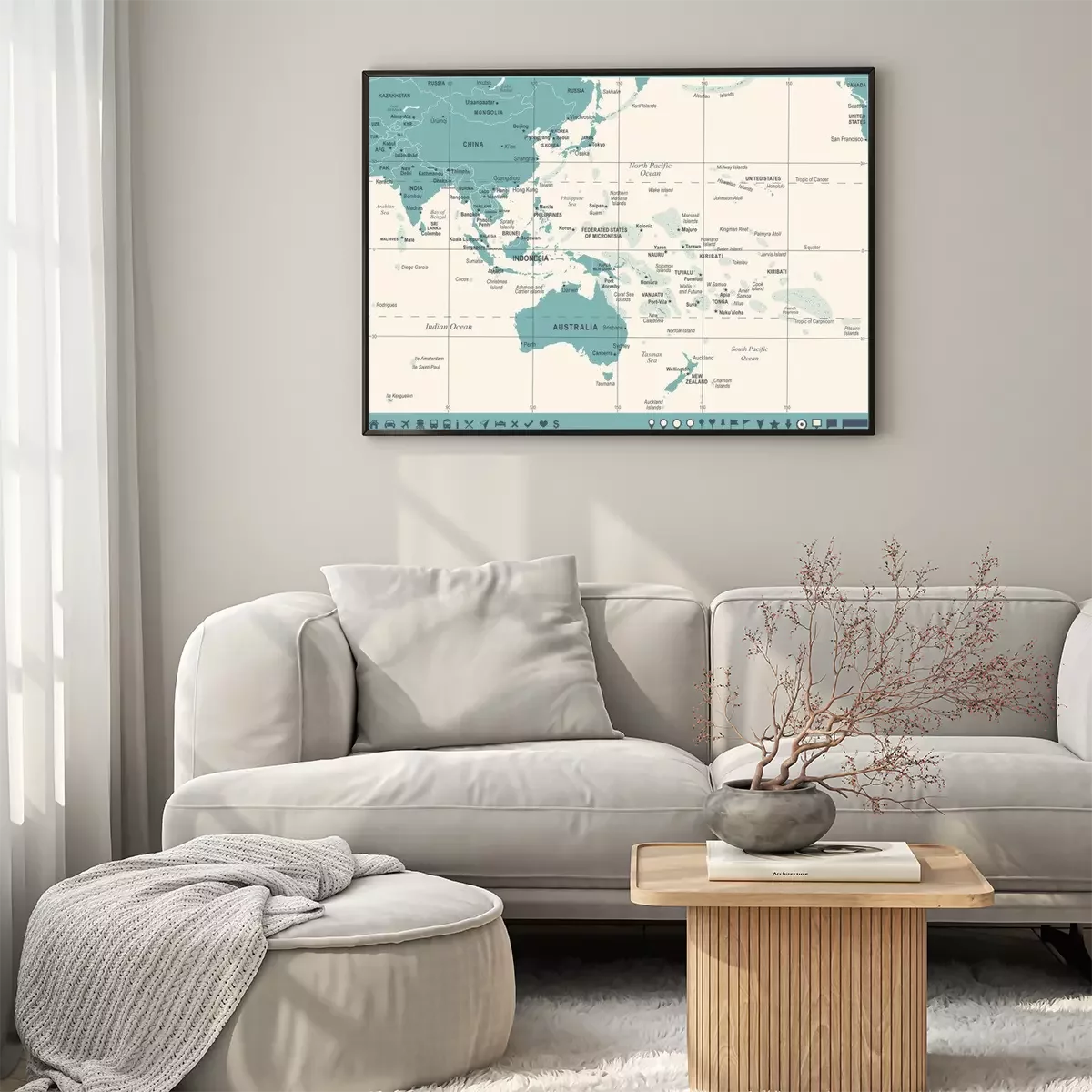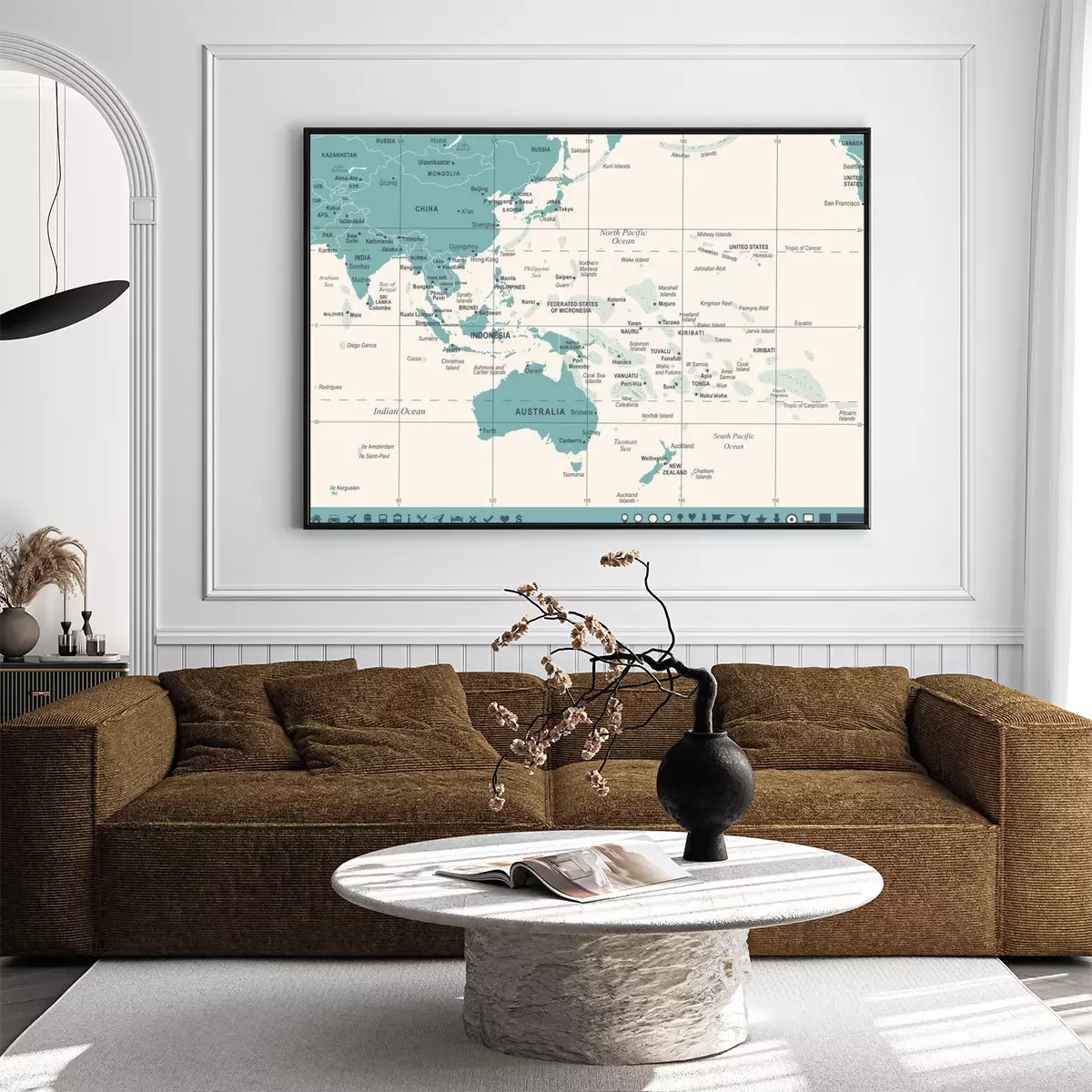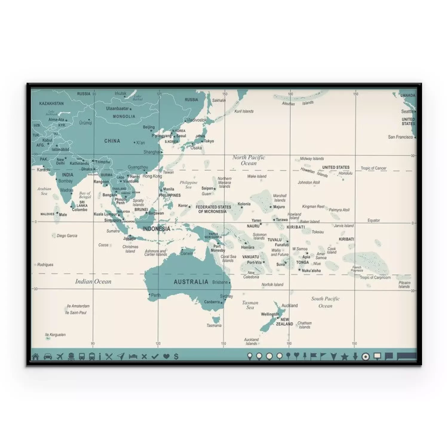 Poster  Carte de l'Asie de l'Est et de l'Océanie - Vintage Vector Illustration