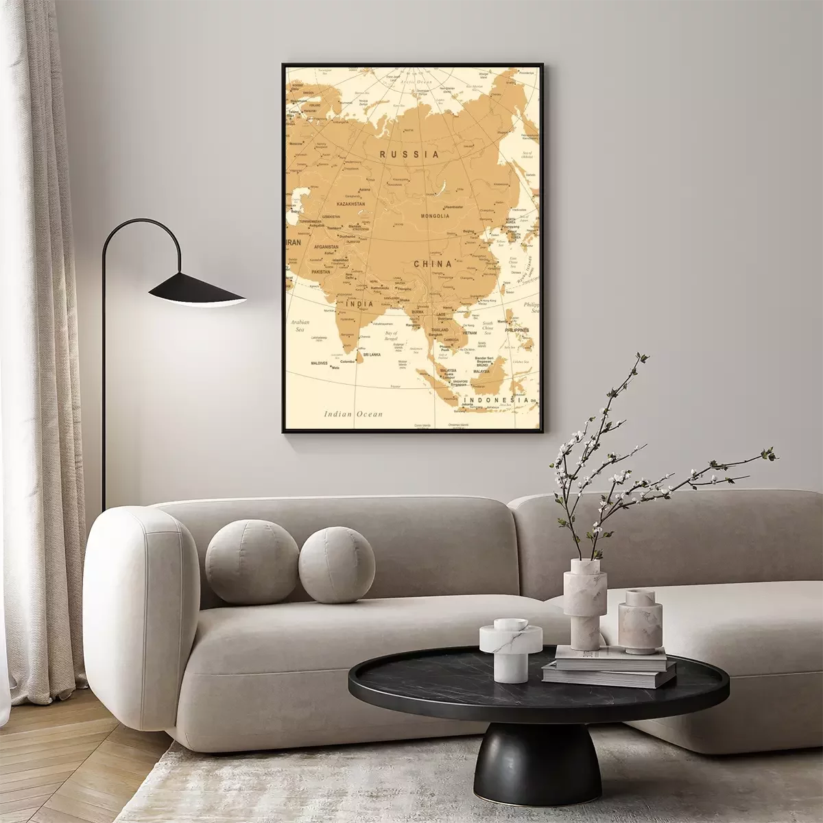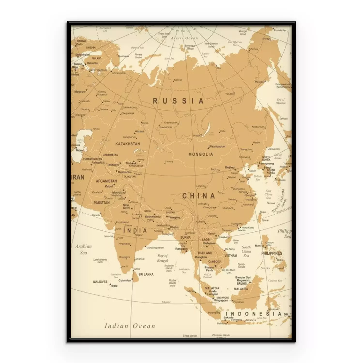 Poster : Carte de l'Asie - Illustration vectorielle vintage