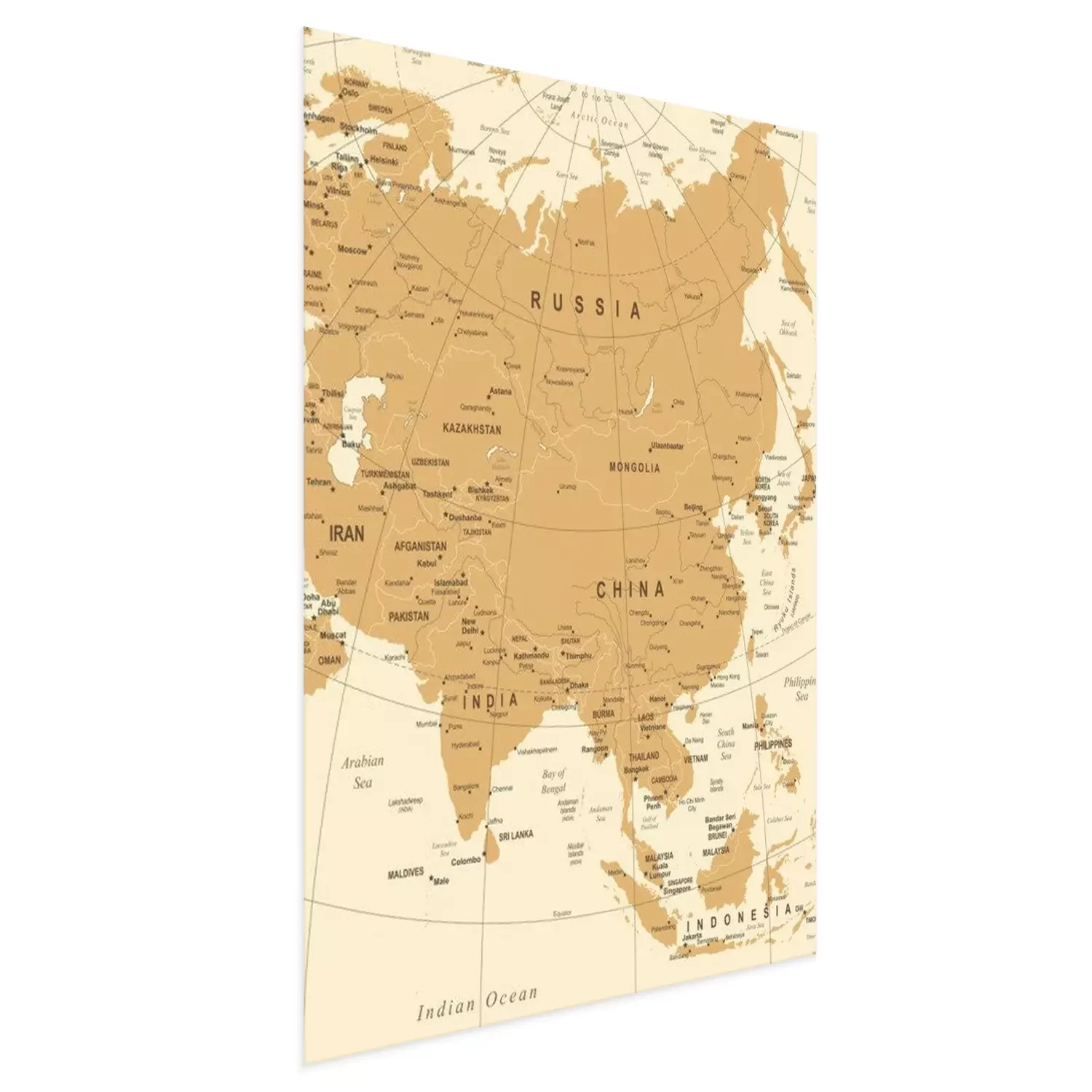 Poster  Carte de l'Asie - Illustration vectorielle vintage