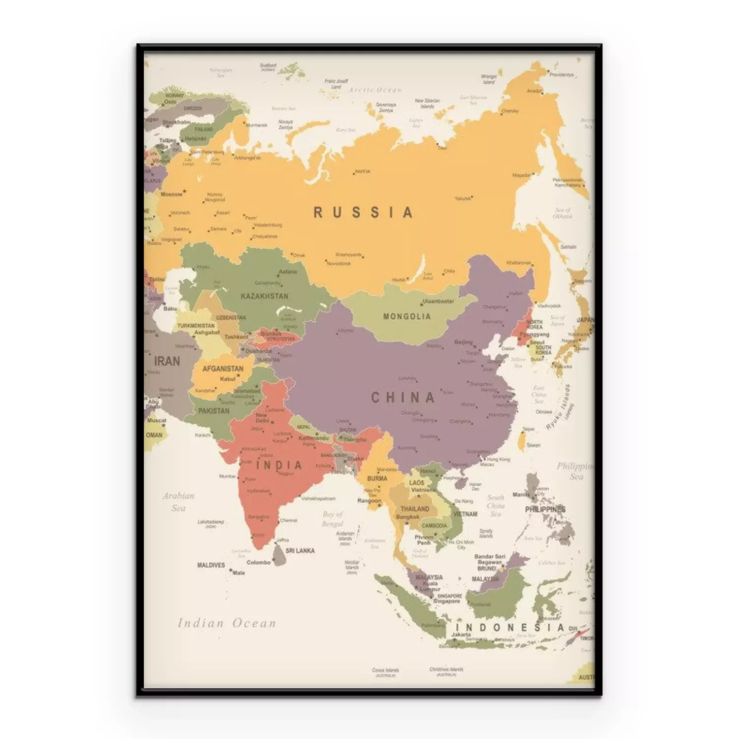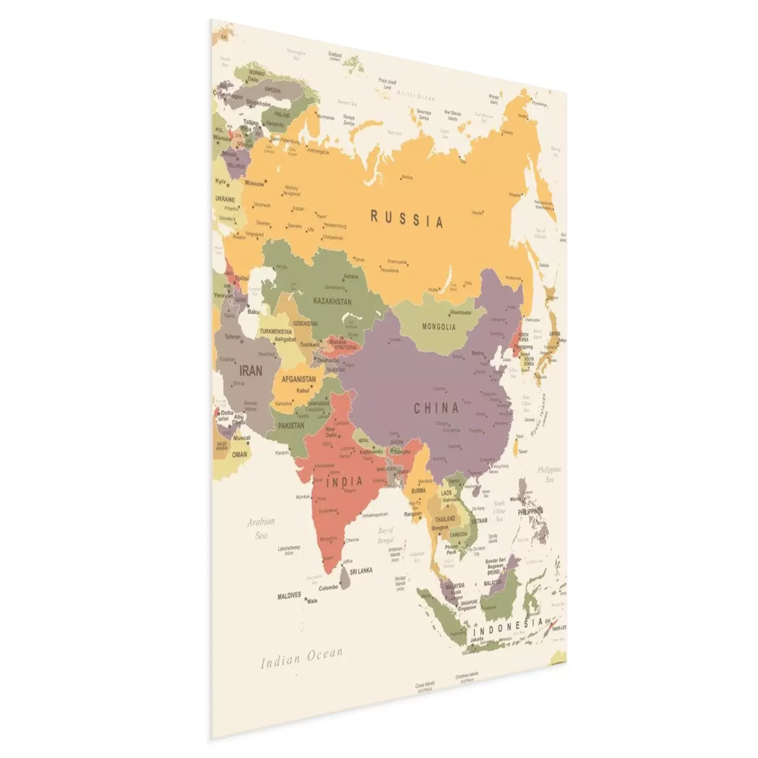 Poster  Carte de l'Asie - Illustration vectorielle vintage