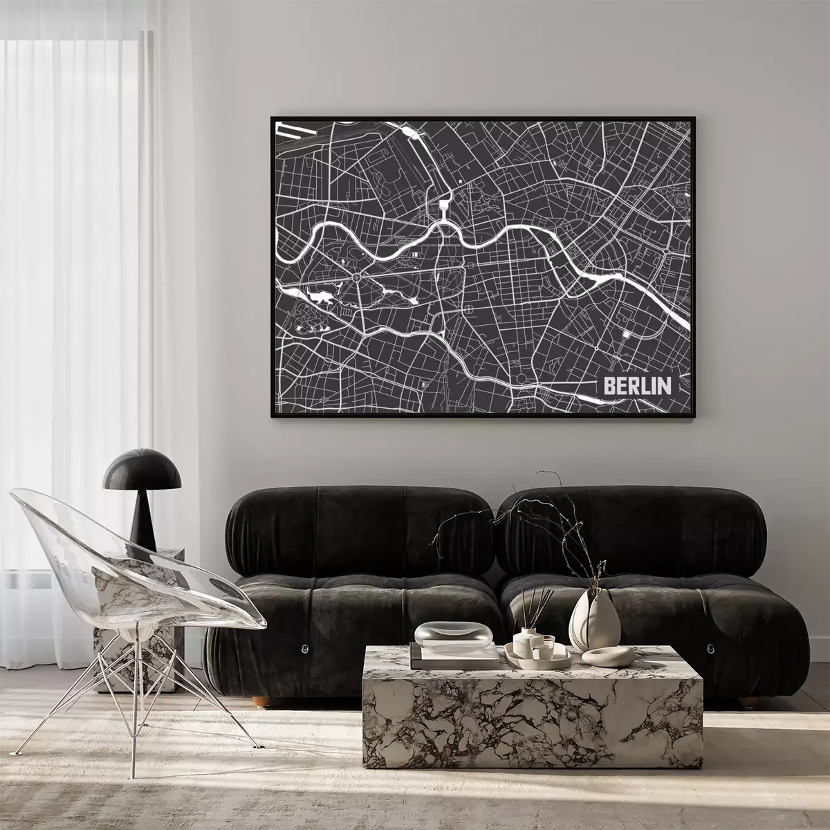 Poster : Carte de la carte de la ville de Berlin minimaliste.
