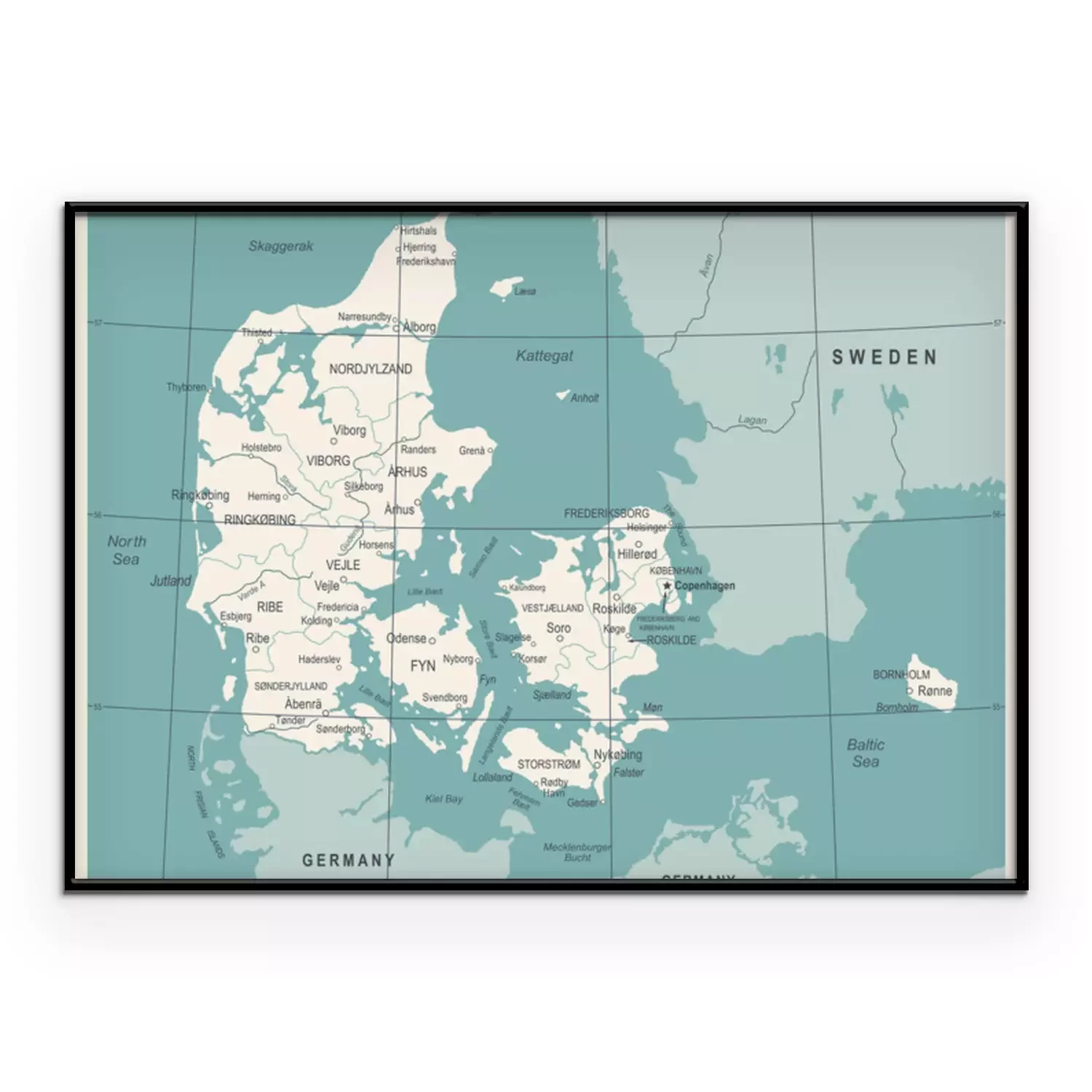 Poster  Carte du Danemark - Vintage Vector Illustration