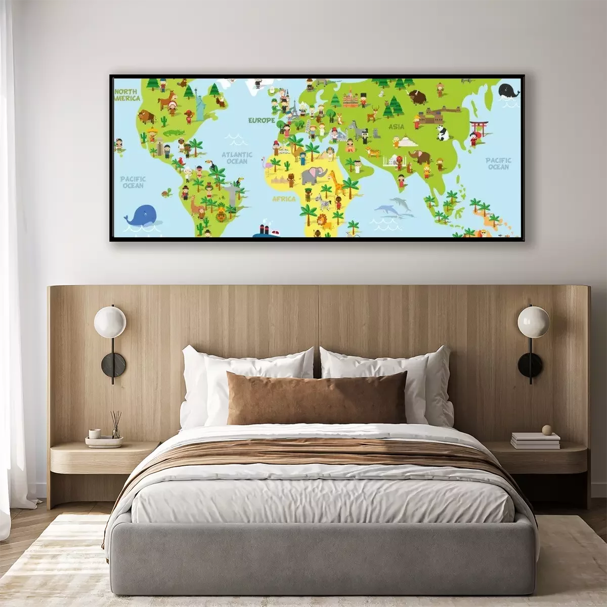 Poster : Carte du monde avec des animaux vivant sur les continents