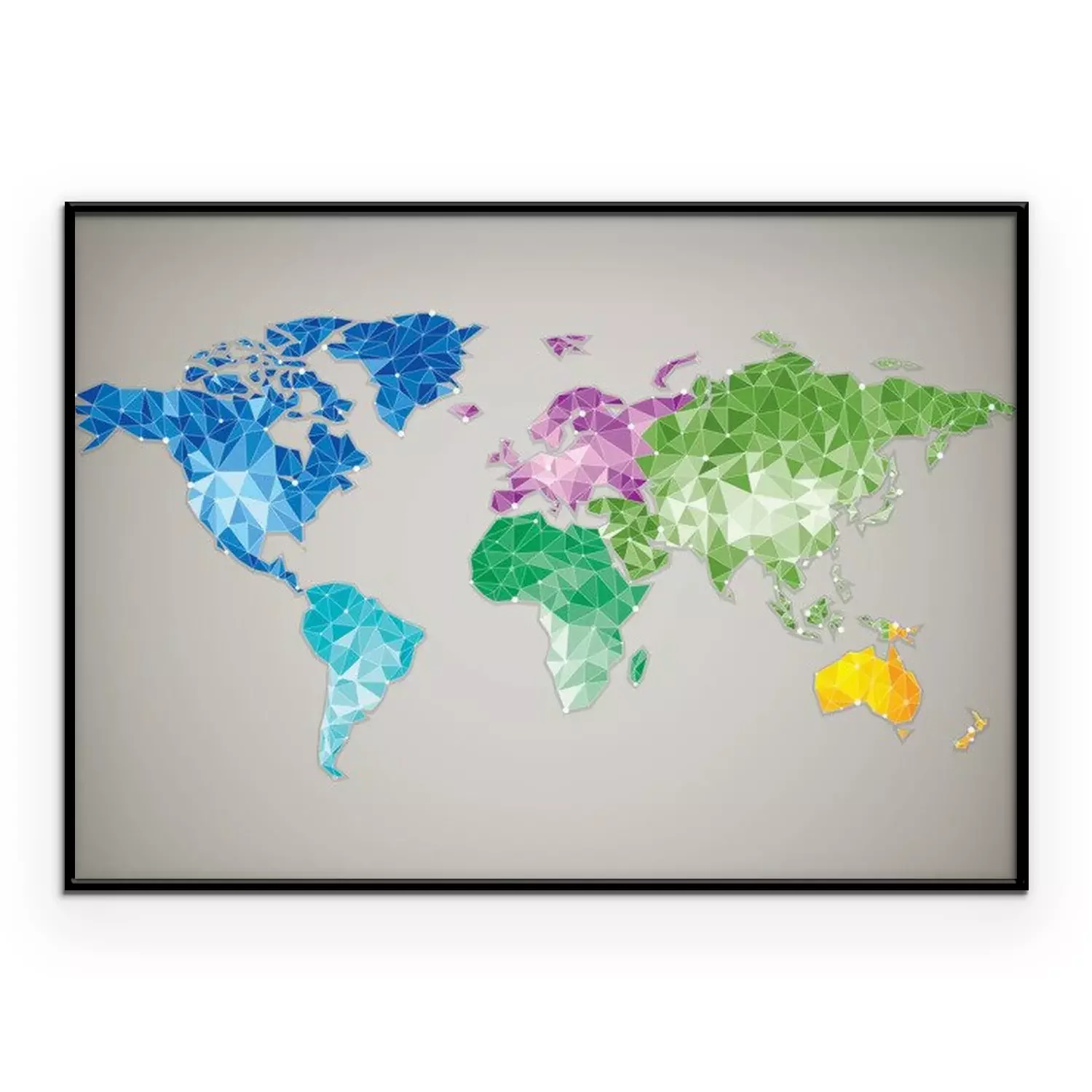 Poster : Carte du monde Faible poly - éléments modernes des graphiques d'information Le dessin de carte n'est pas sur la proportion et les détails