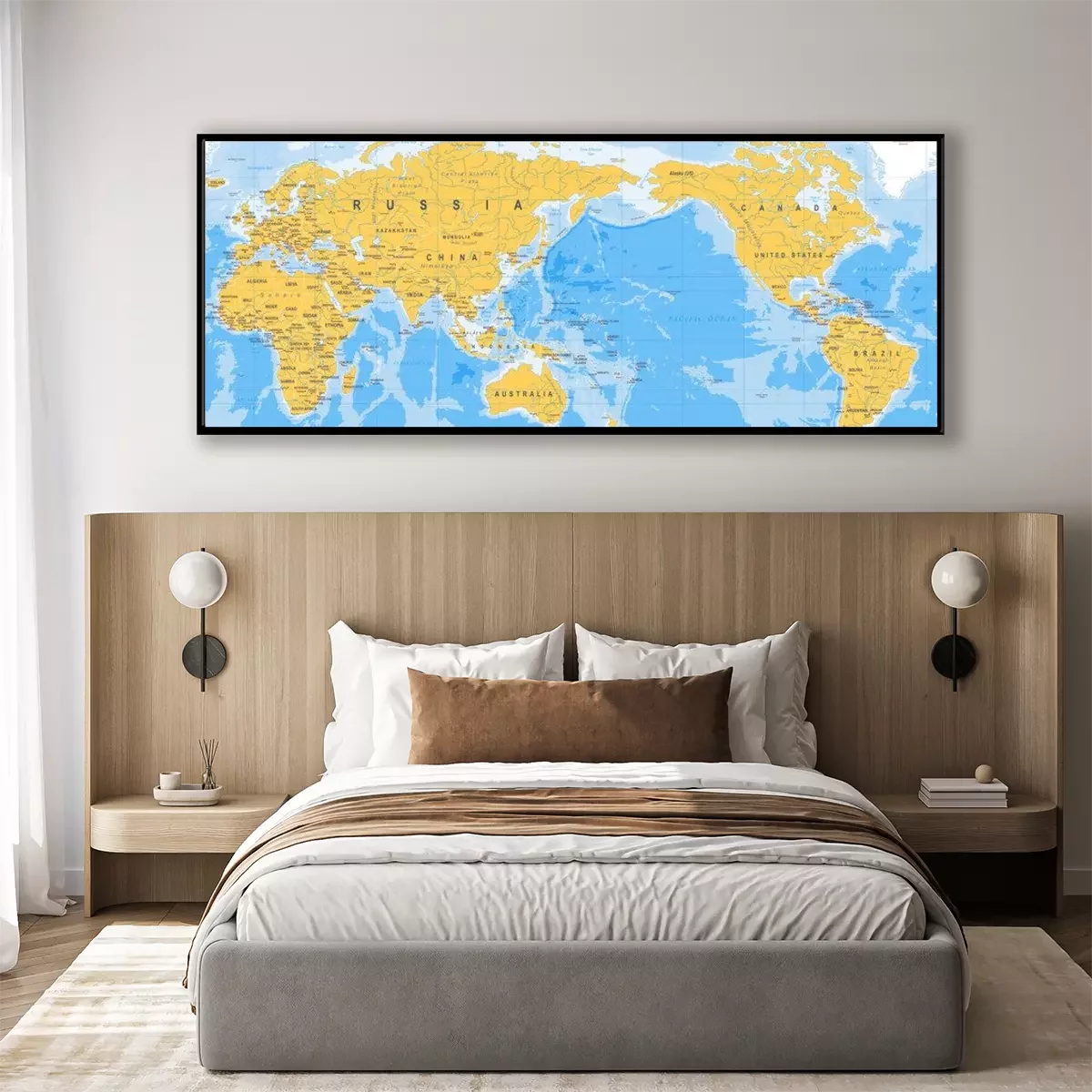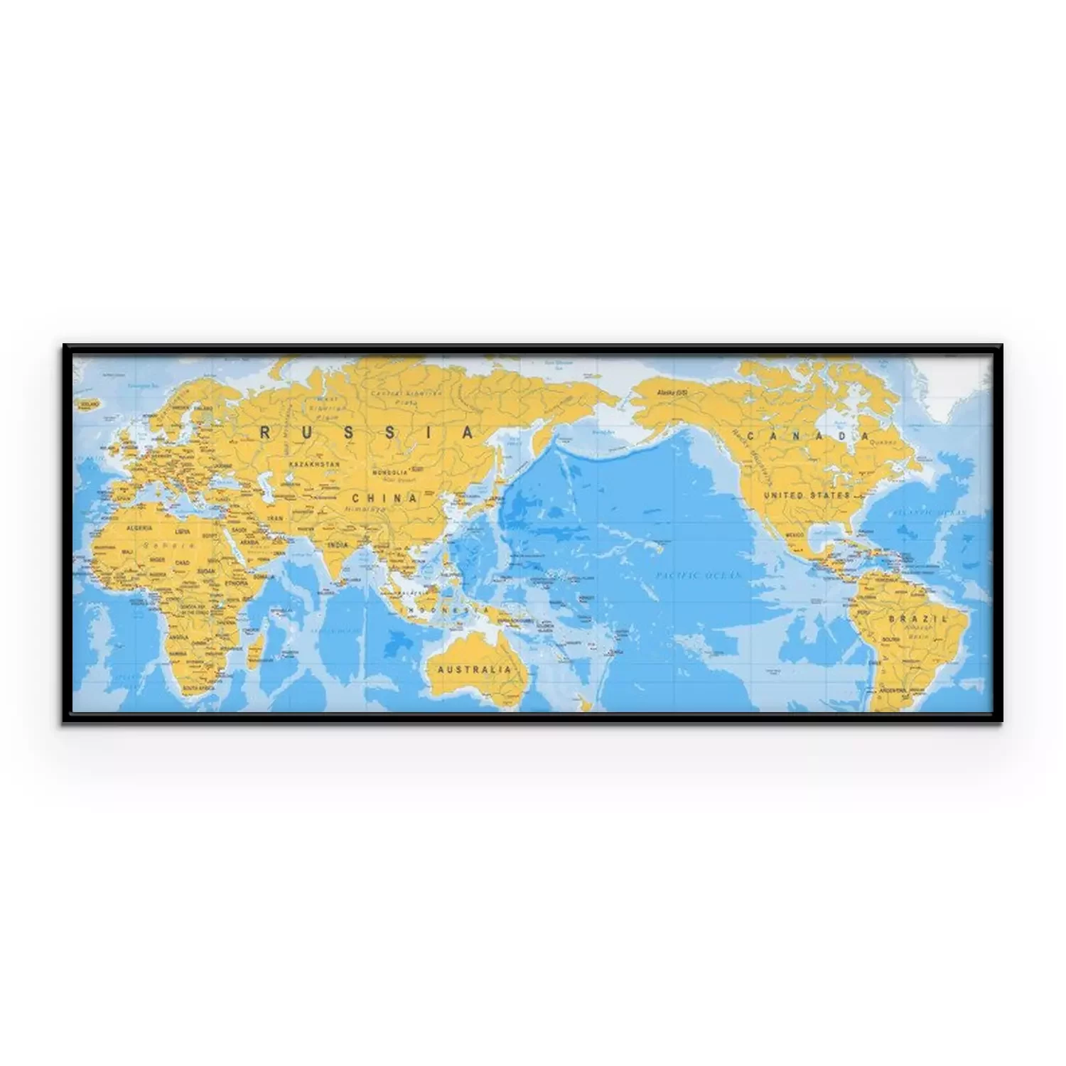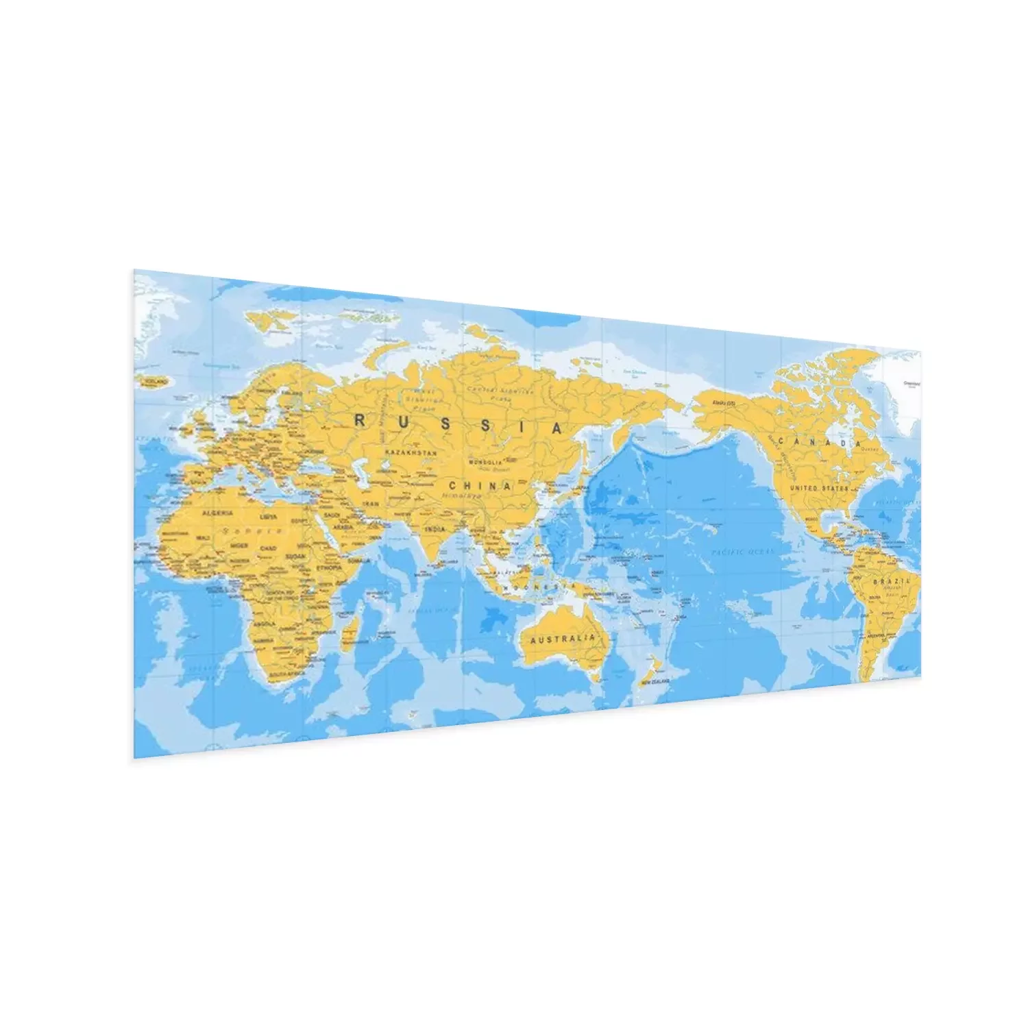 Poster : Carte du Monde Jaune Bleu - Asie en Centre