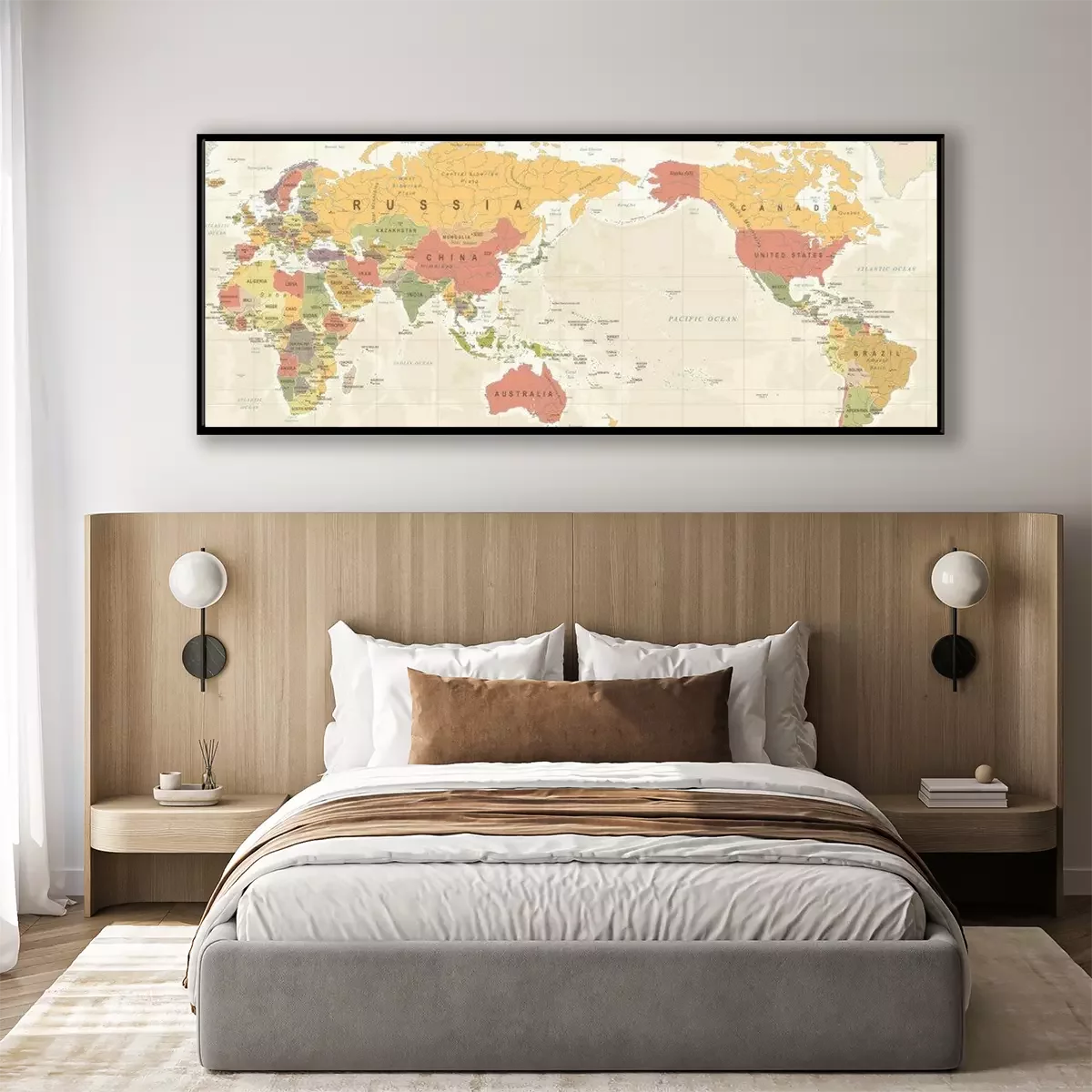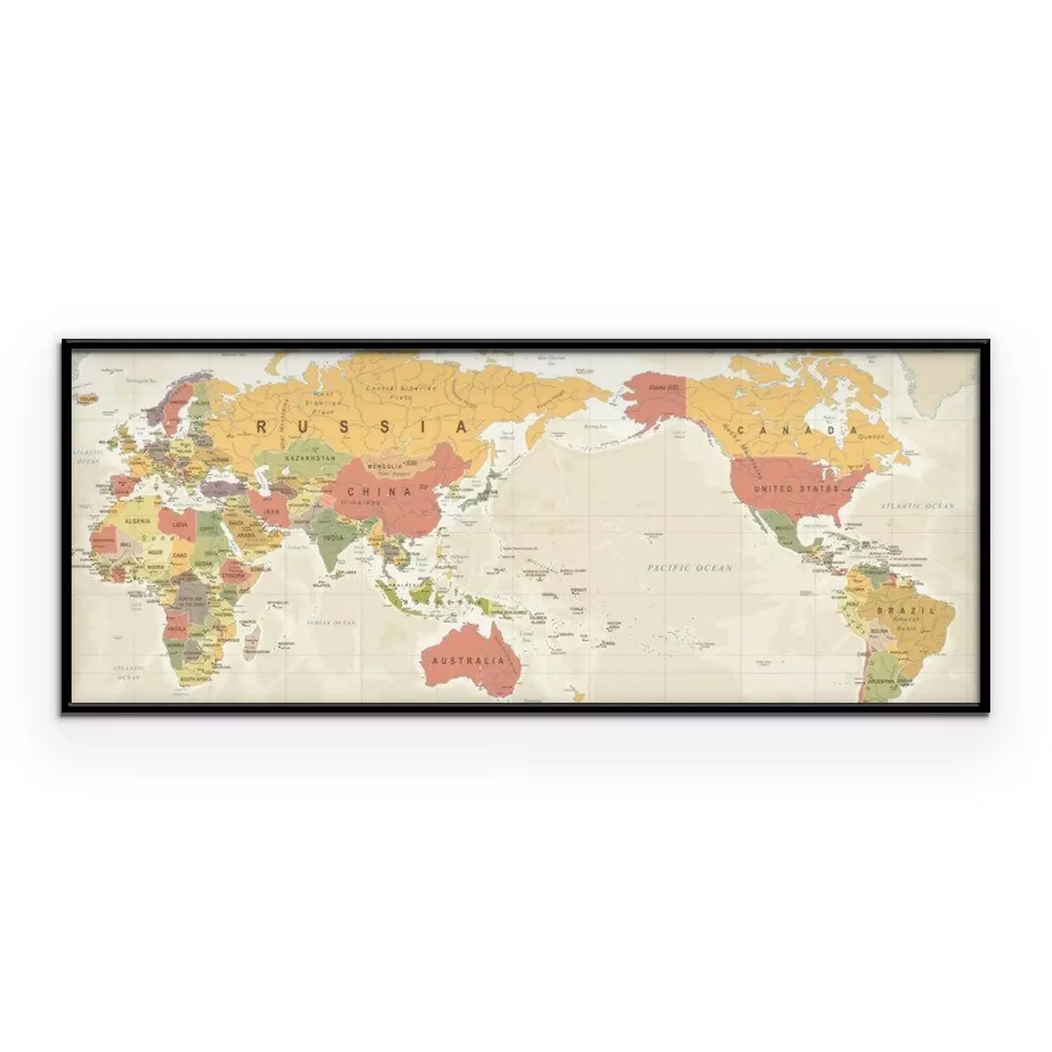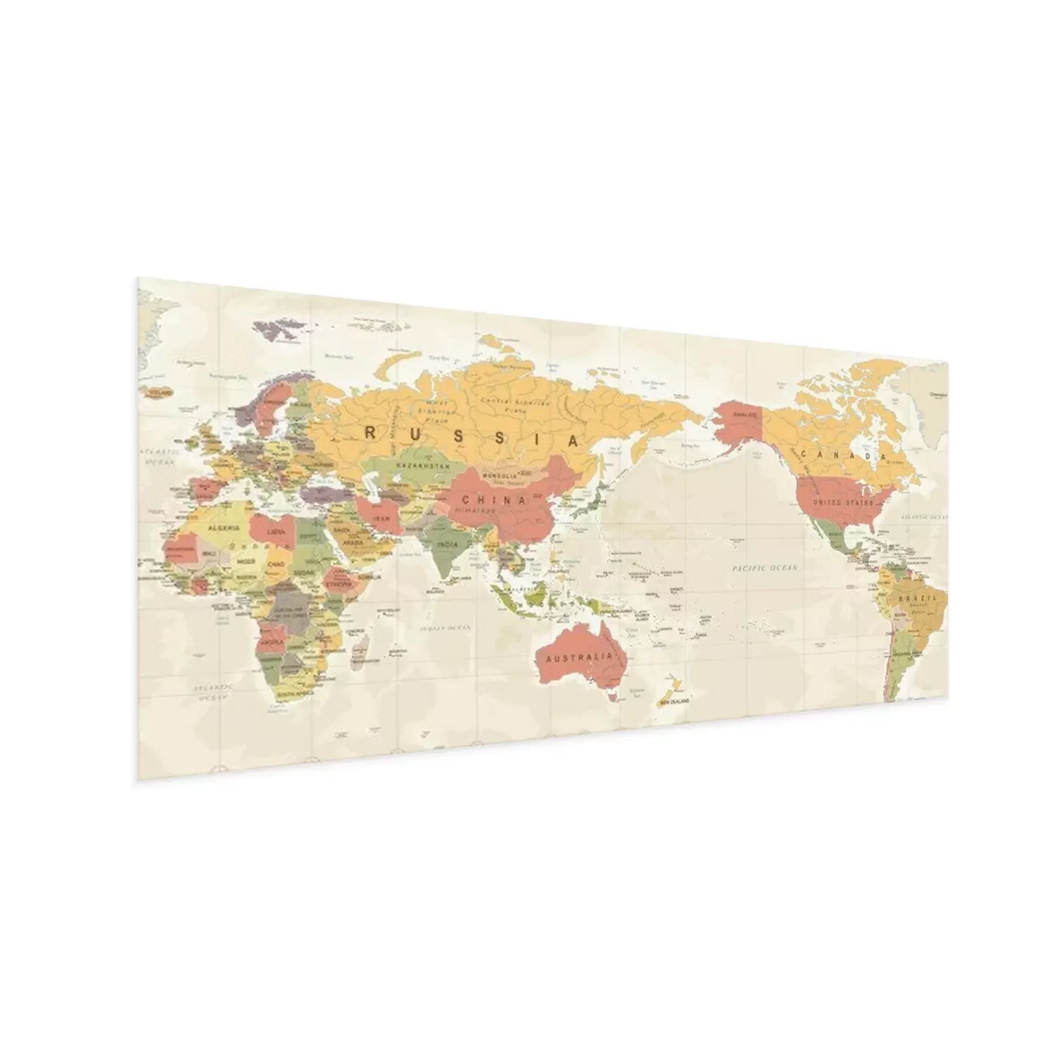 Poster  Carte du monde Vintage Old Retro - Asia in Centre