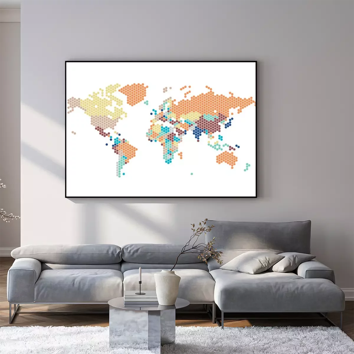 Ces posters sont imprimés sur du papier de haute qualité. L'utilisation de la technologie HP Latex permet d'obtenir des couleurs éclatantes pendant de nombreuses années et qui résistent aux effets nuisibles des rayons UV. Le poster standard est imprimé sur du papier semi-brillant.