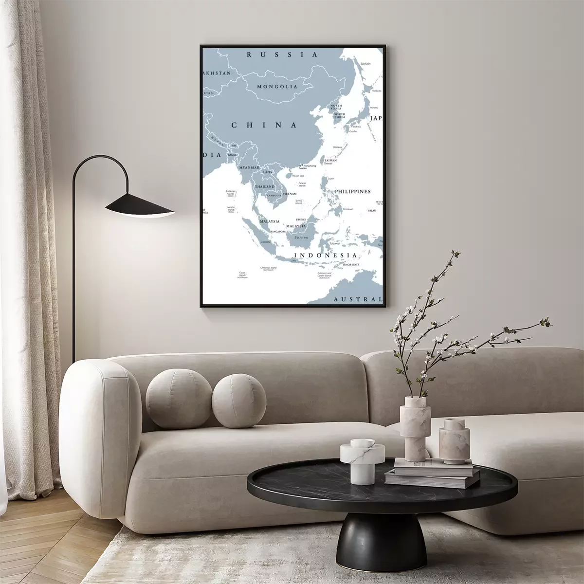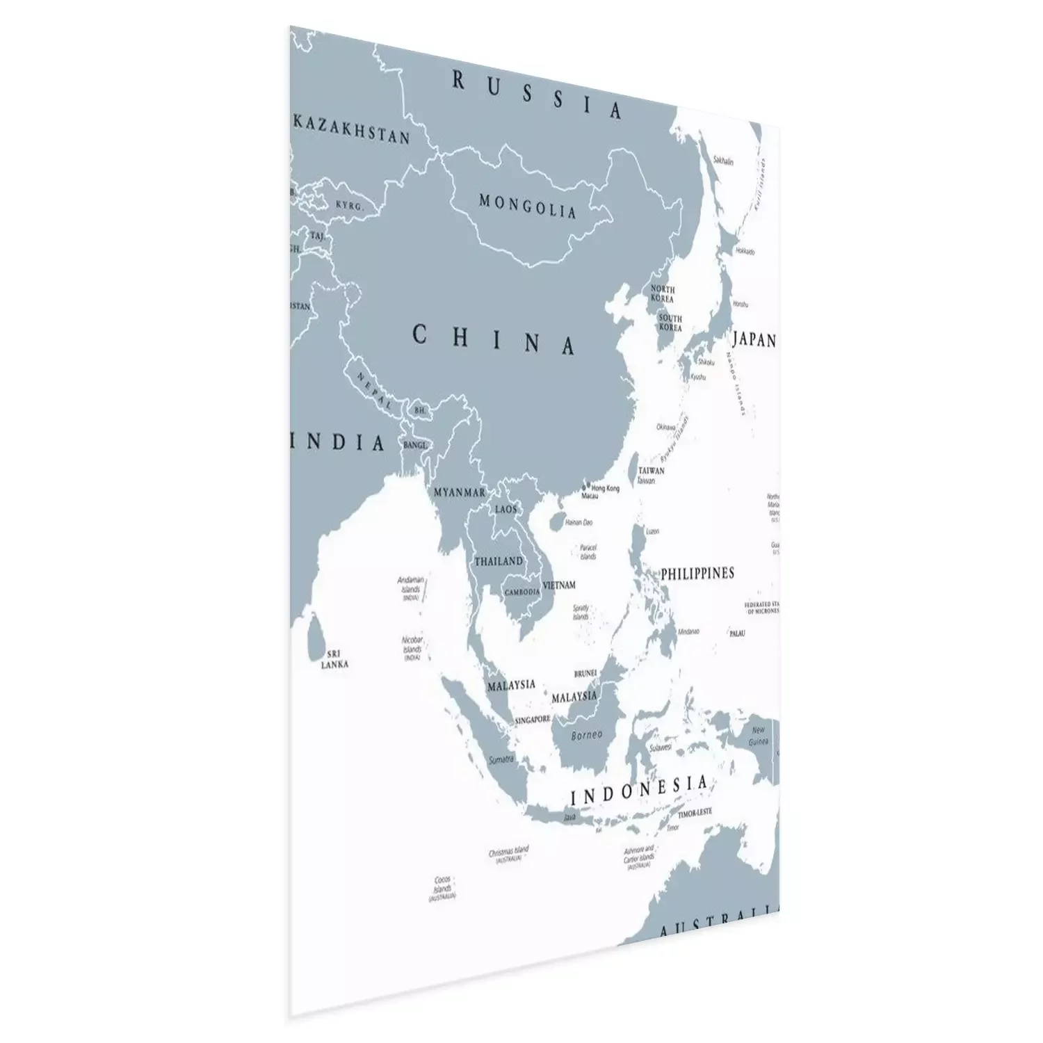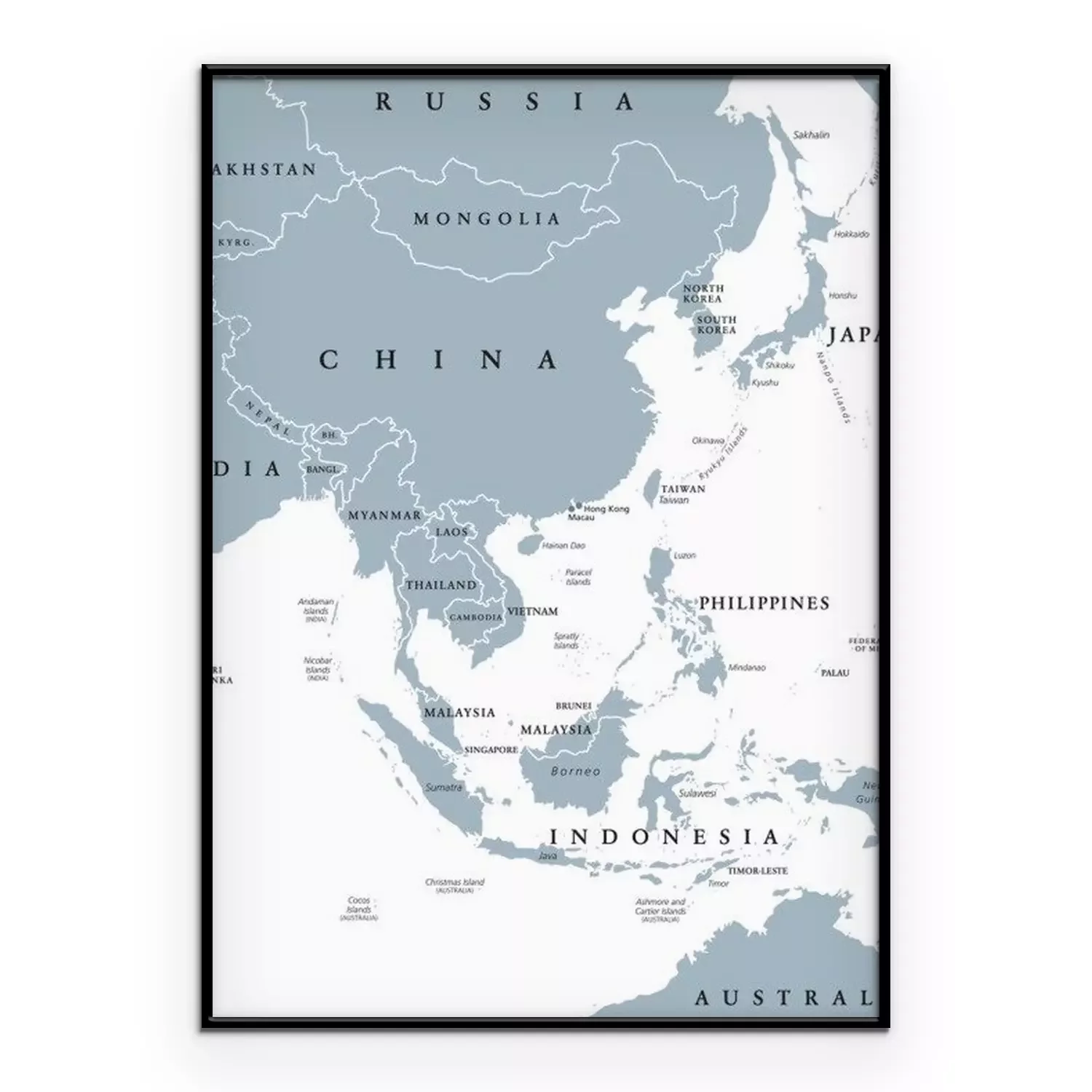 Poster  Carte politique de l'Asie de l'Est avec les pays et les frontières. Sous-région orientale du continent asiatique avec la Chine, le Japon, la Mongolie et l'Indonésie. Étiquetage en anglais. Illustratio