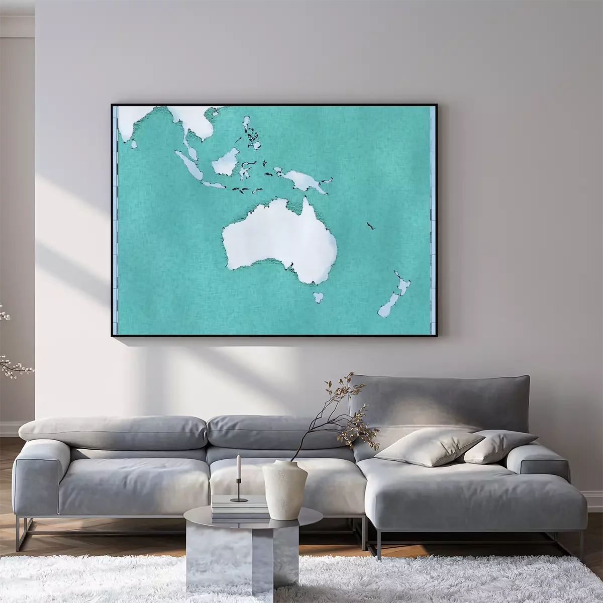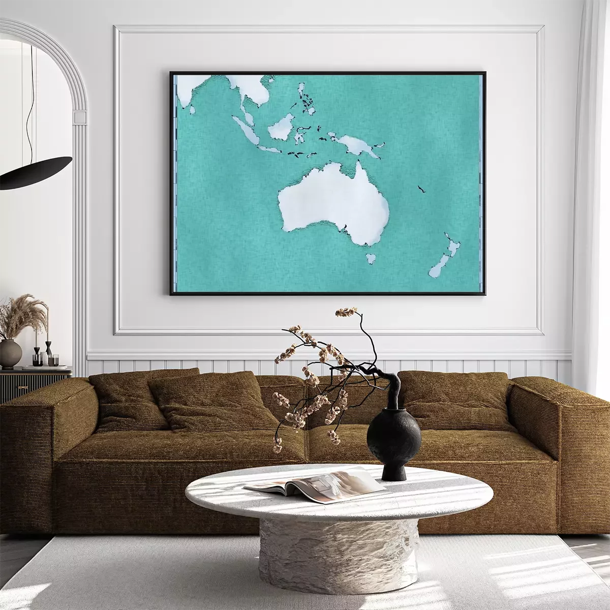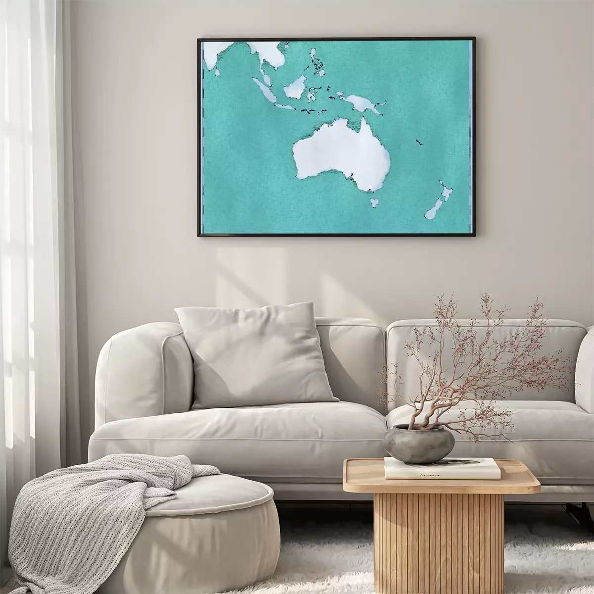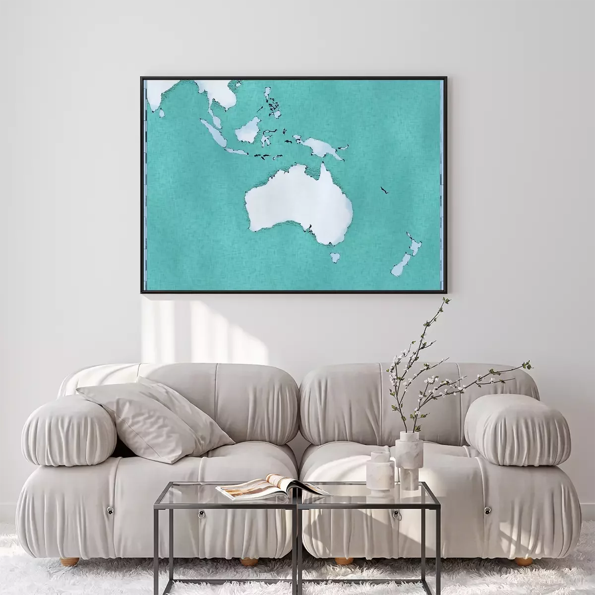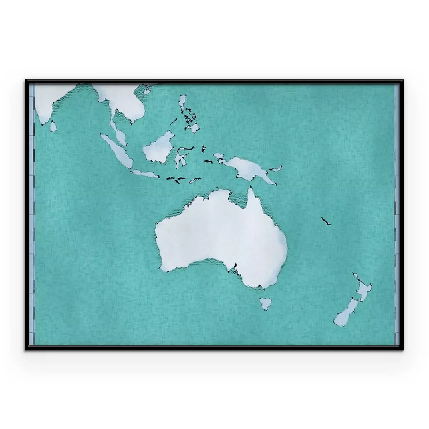 Poster  Cartina dell'Oceania, disegnata illustrata pennellée, cartina geografica, fisica. Cartografia, atlante geografico
