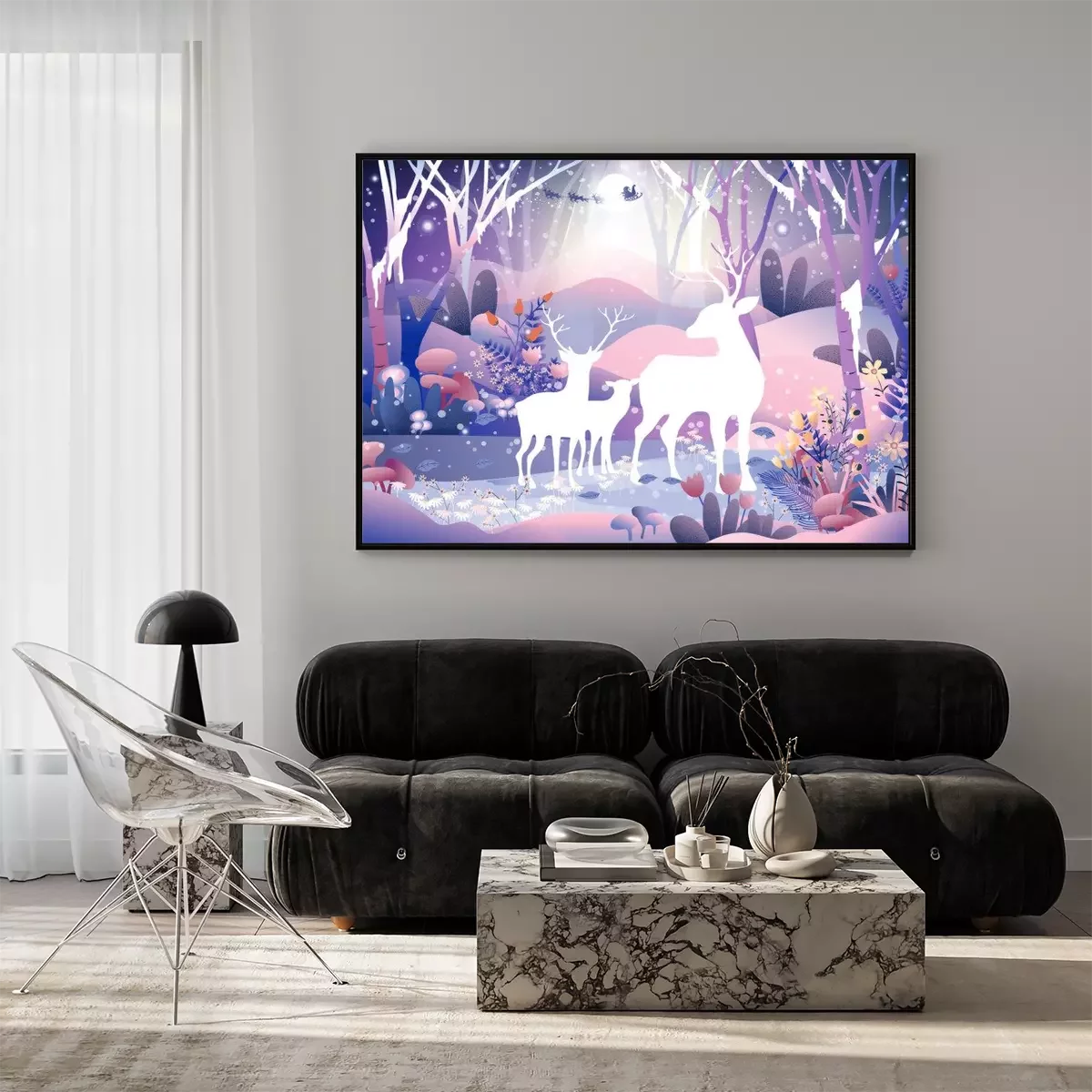 Poster : Cerf blanc dans la forêt fantastique
