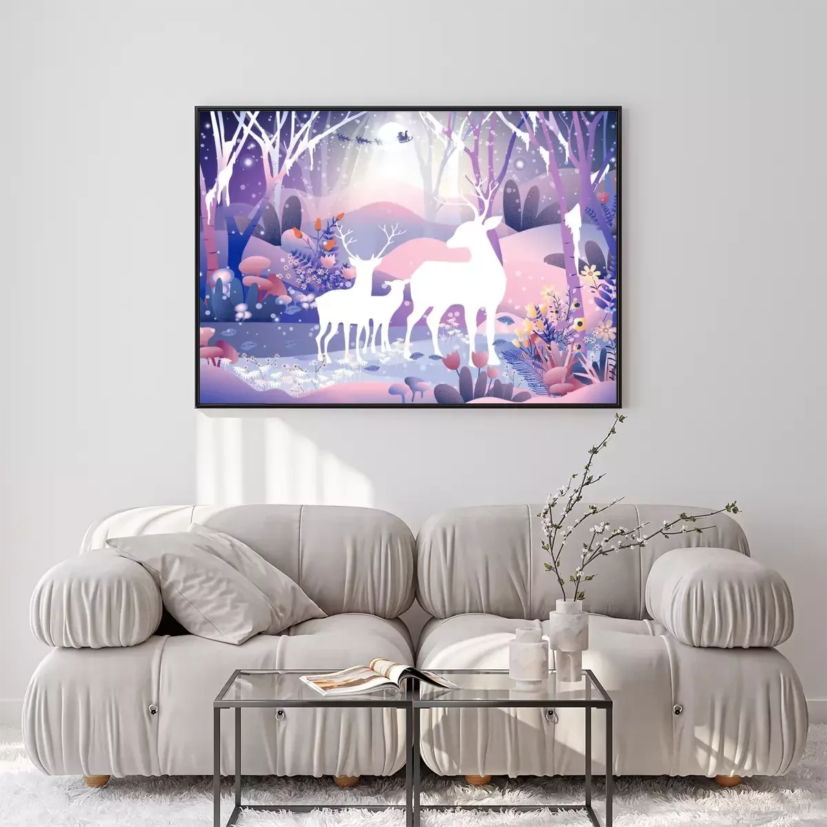 Poster  Cerf blanc dans la forêt fantastique