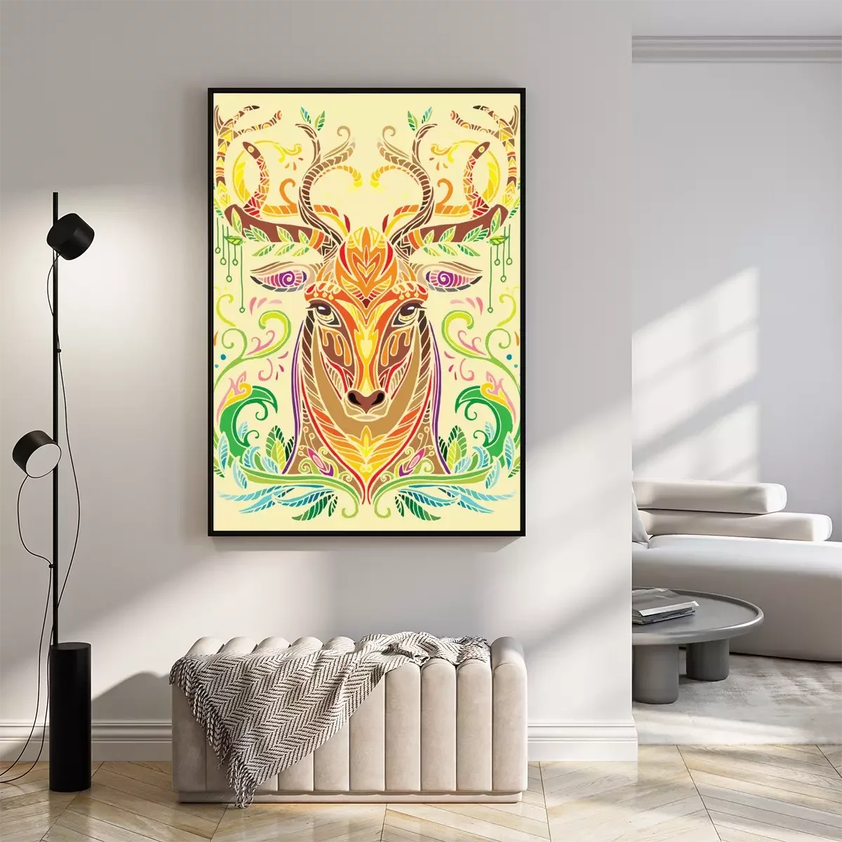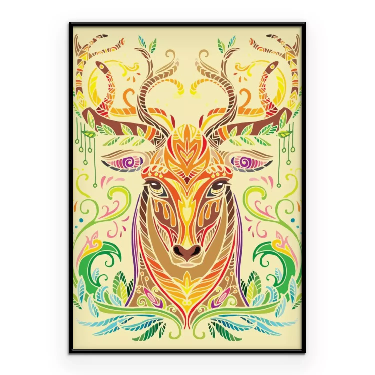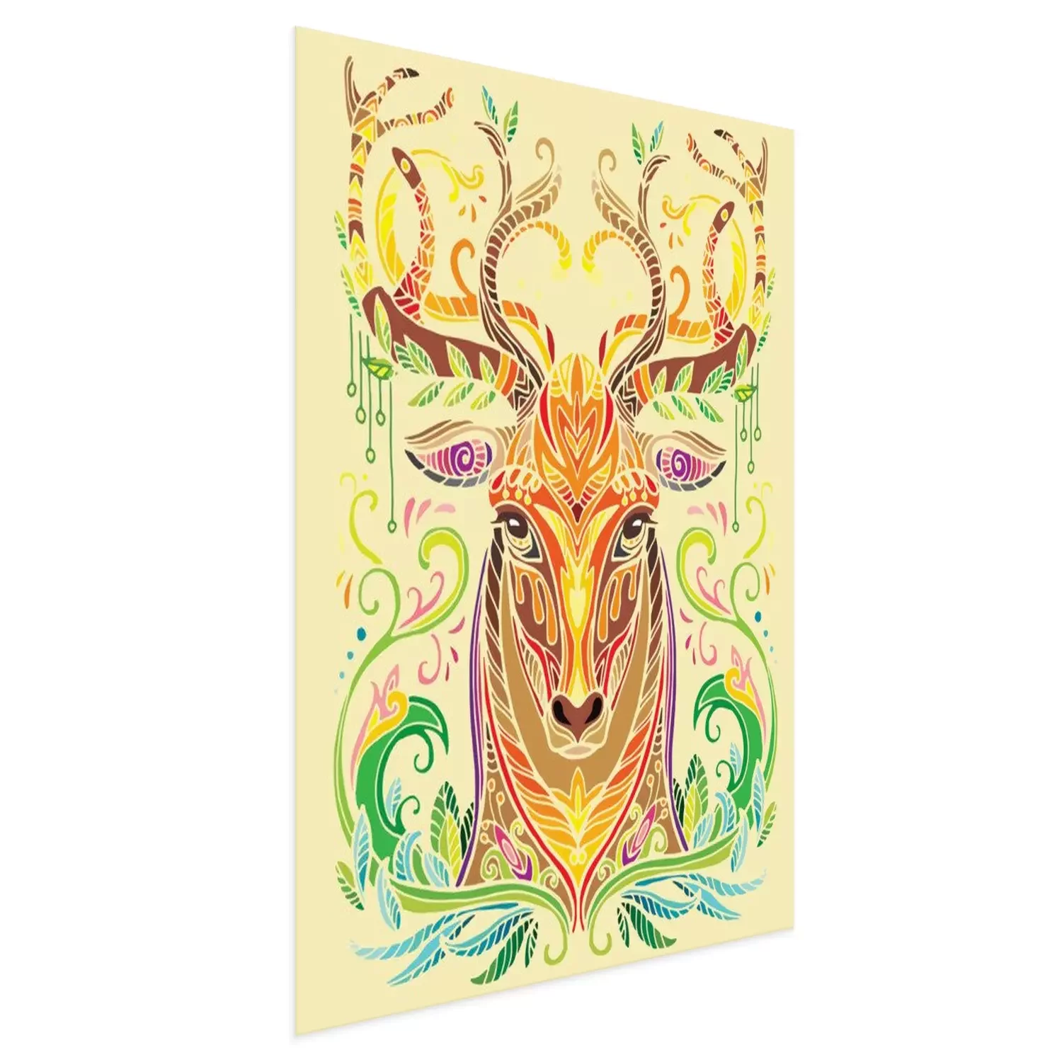 Poster : Cerf coloré sur un fond jaune