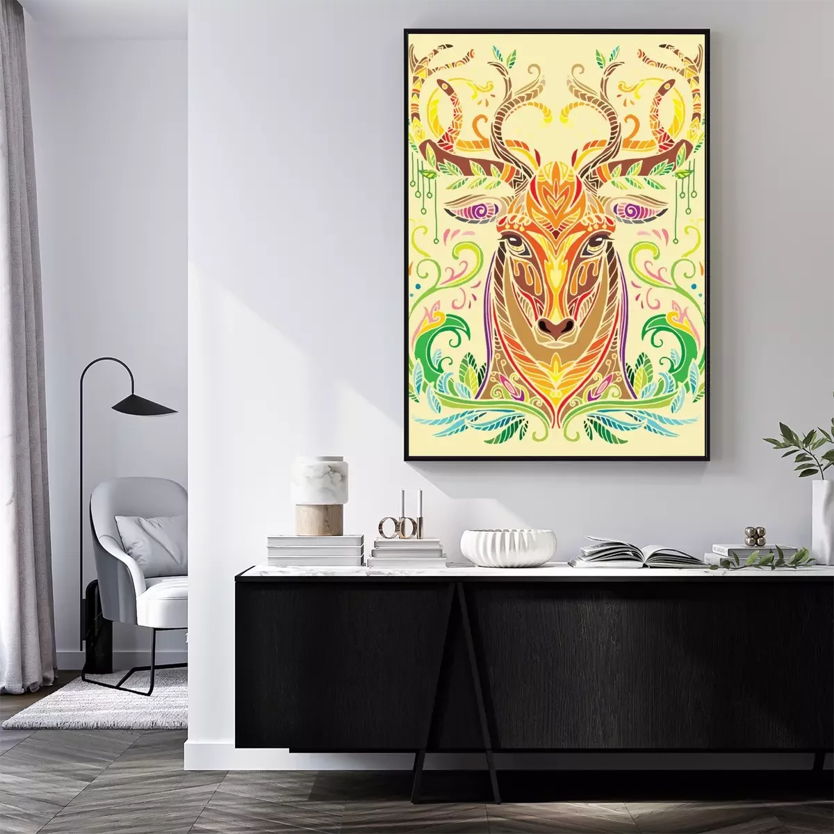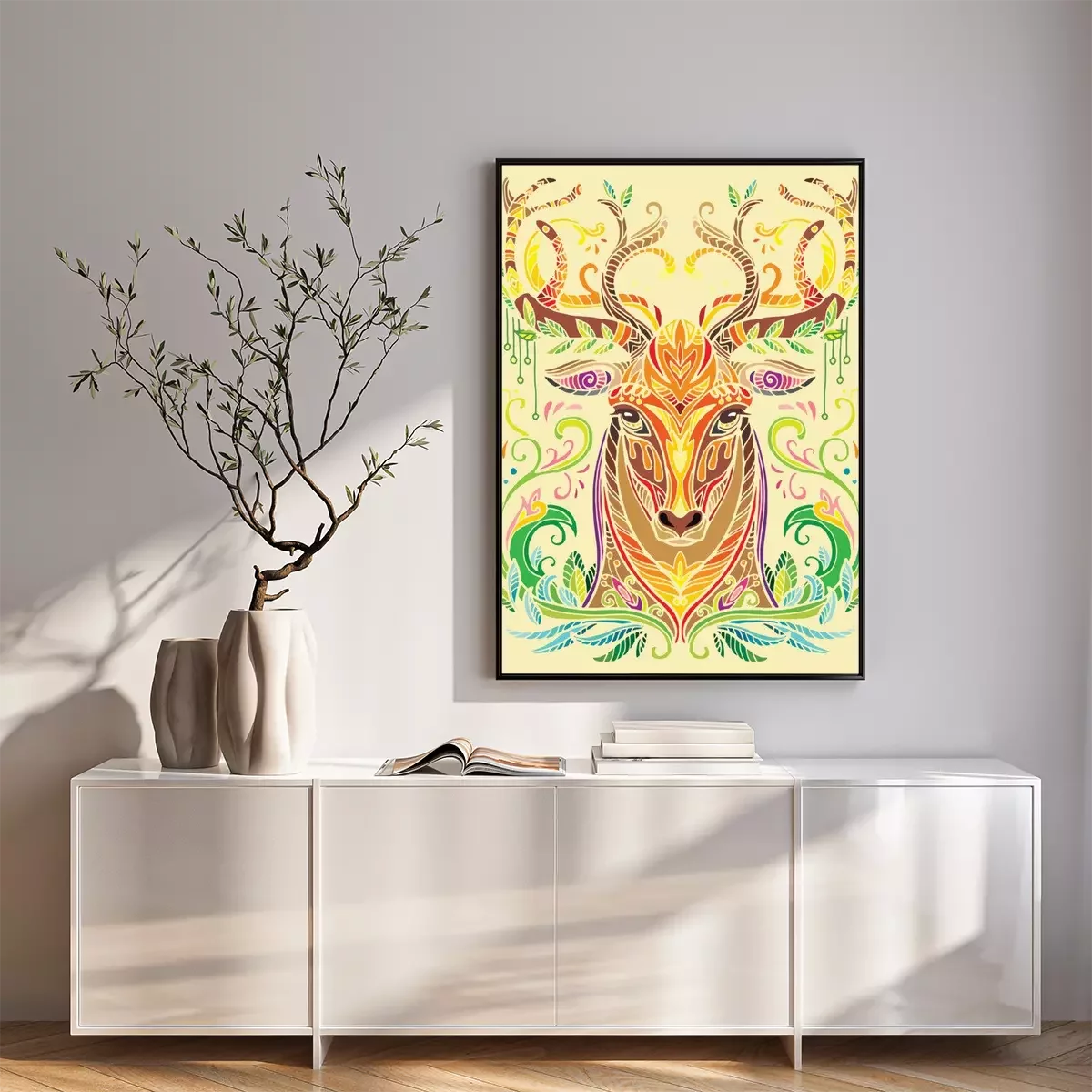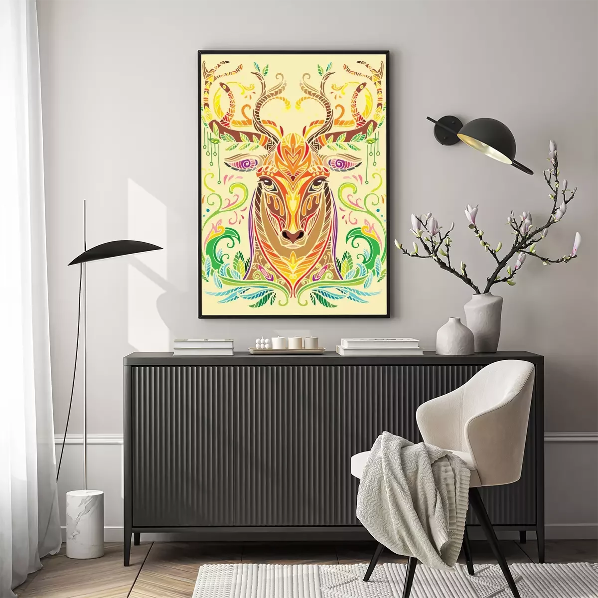 Poster : Cerf coloré sur un fond jaune