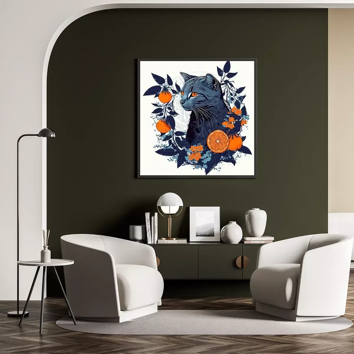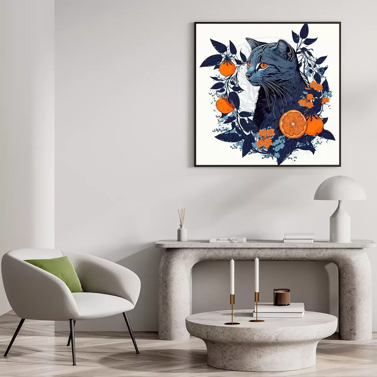 Poster : Chat et fruit orange
