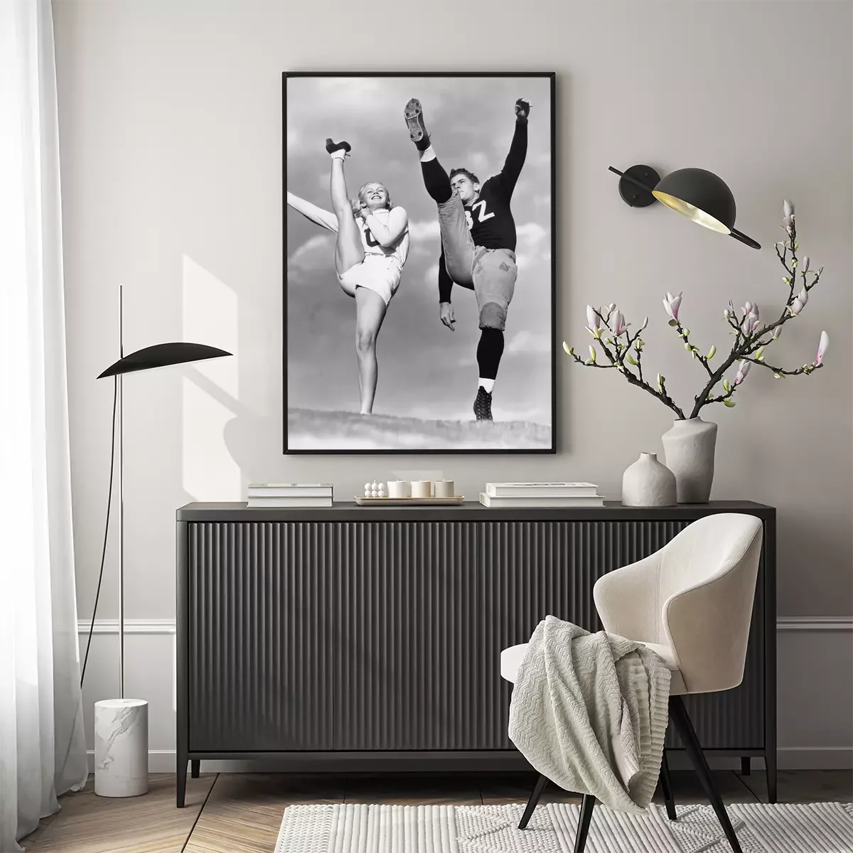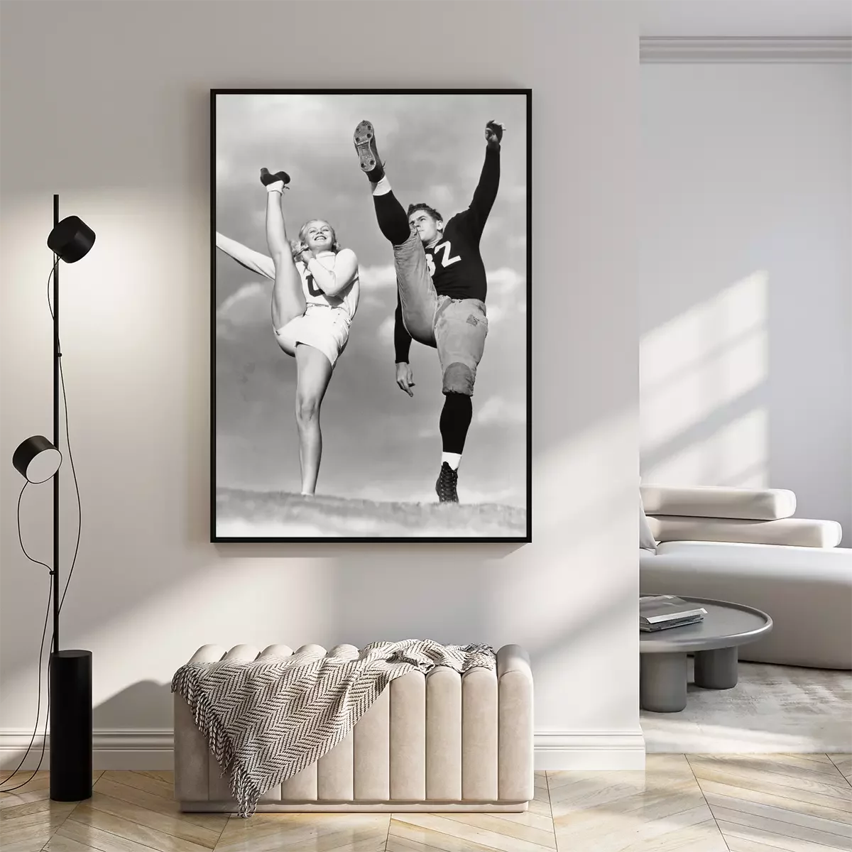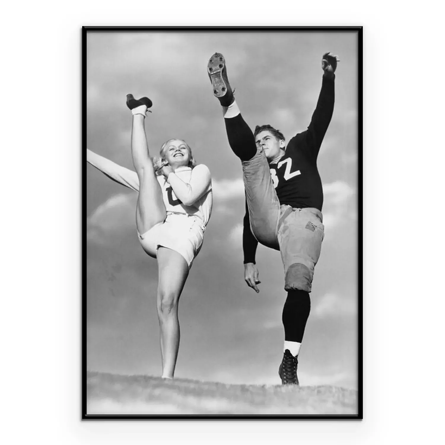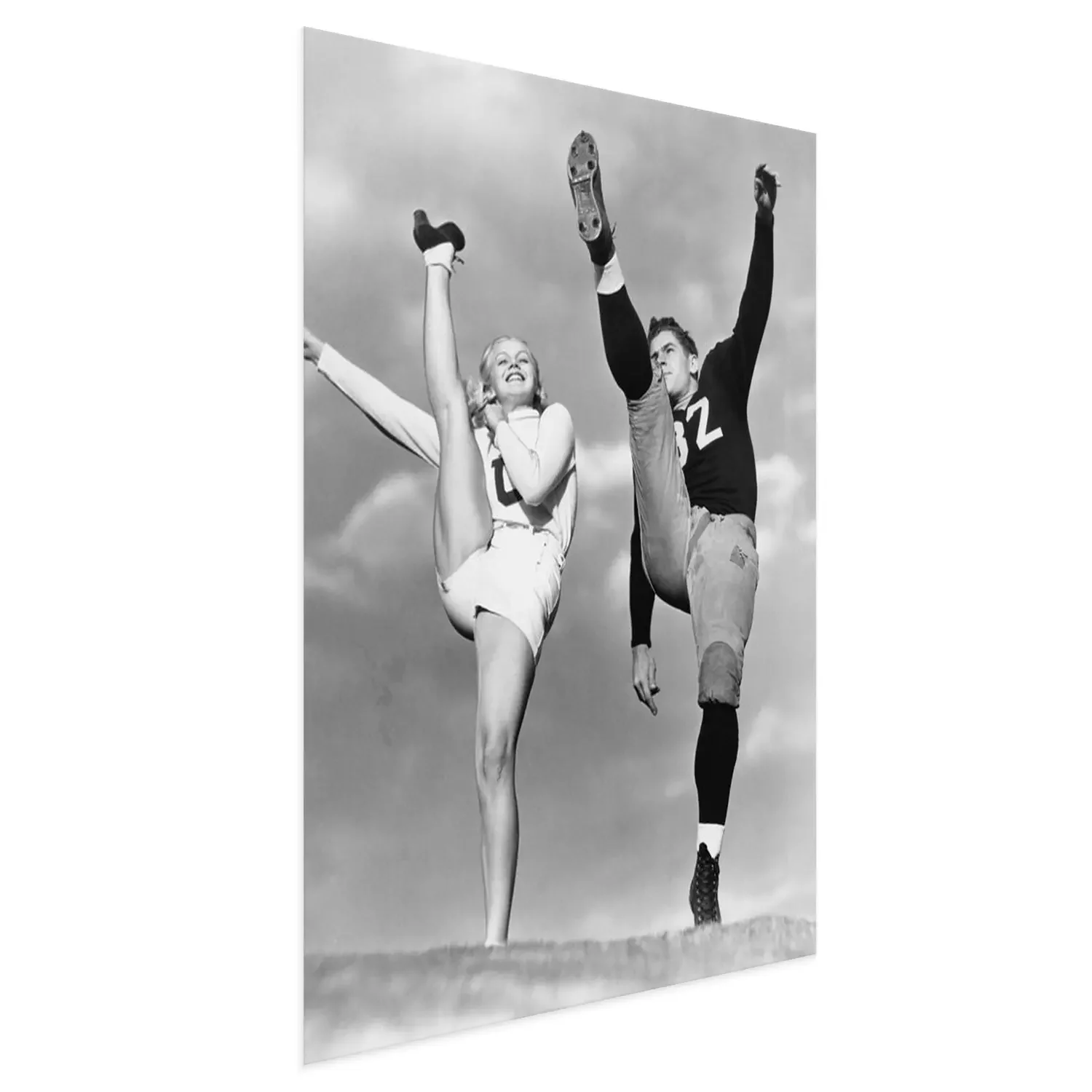 Poster  Cheerleader et joueur de football dans une photo rétro vintage