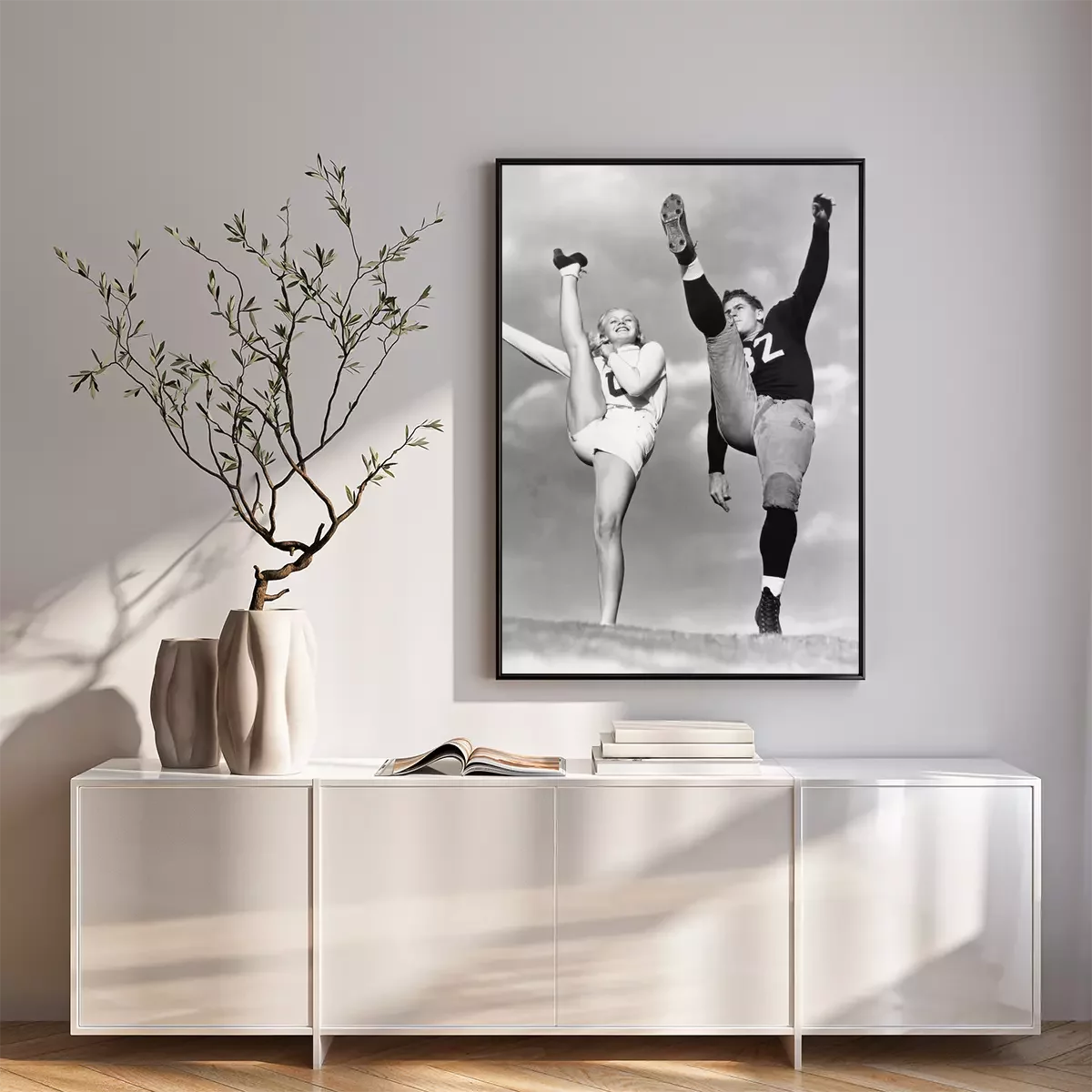 Poster : Cheerleader et joueur de football dans une photo rétro vintage