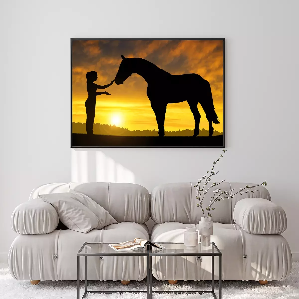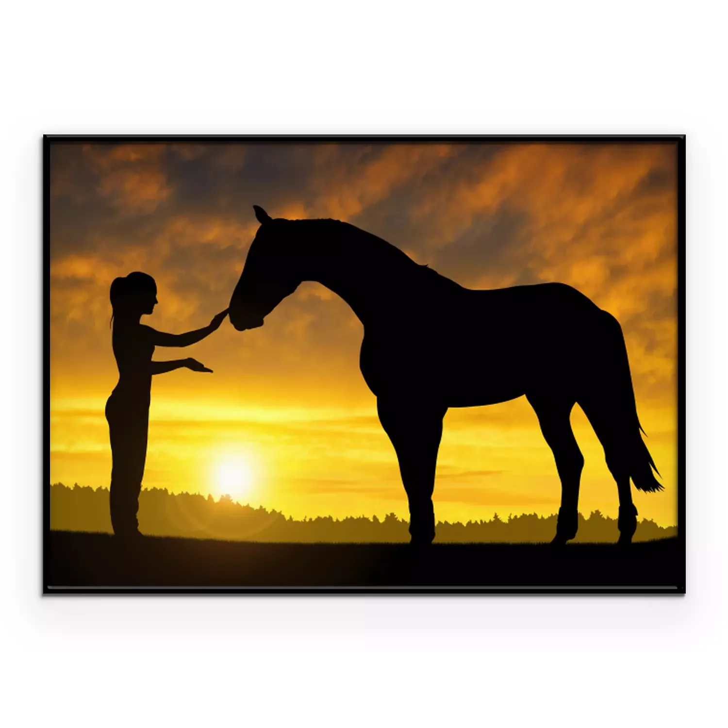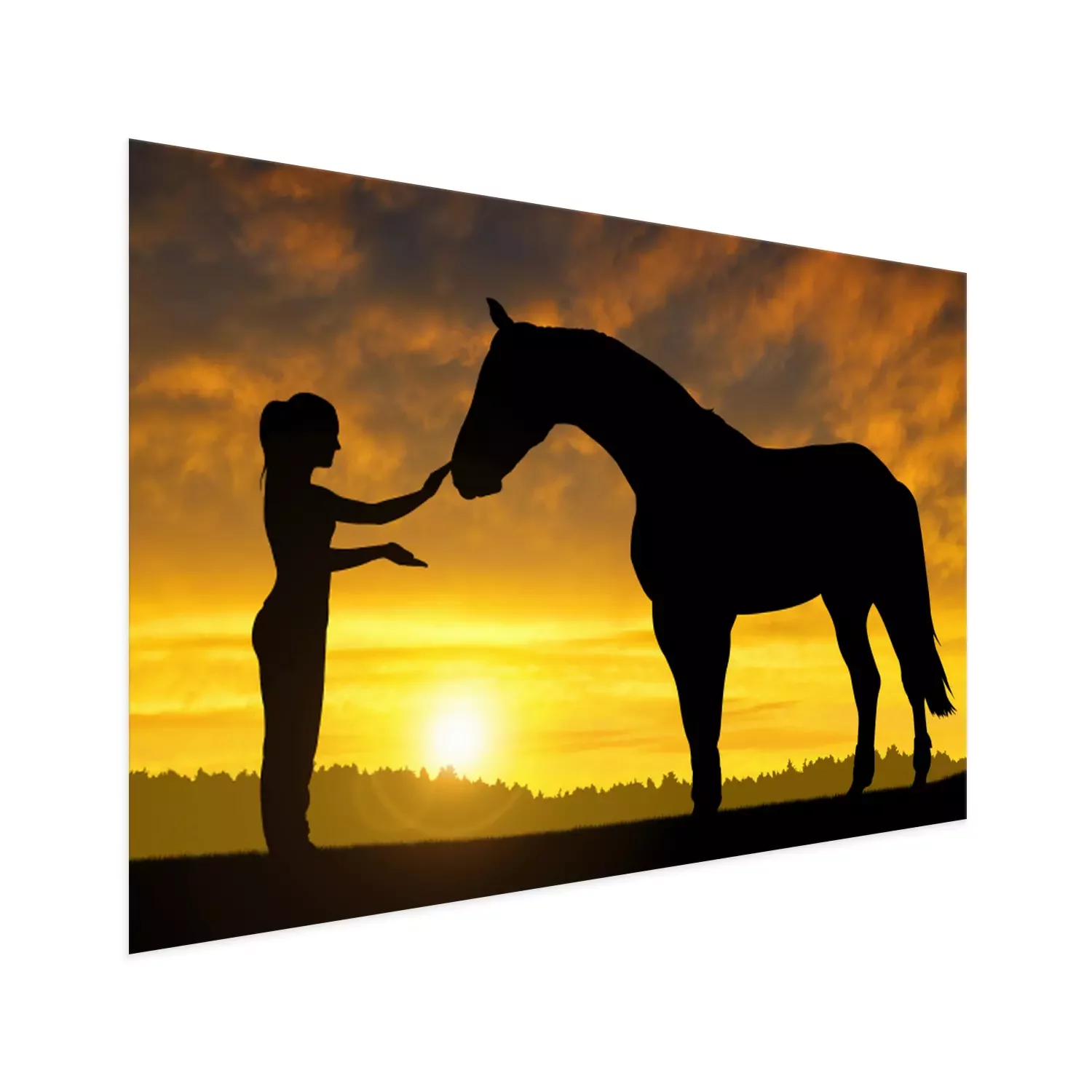 Poster  Cheval et femme au coucher du soleil