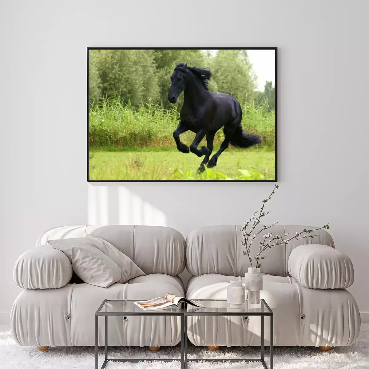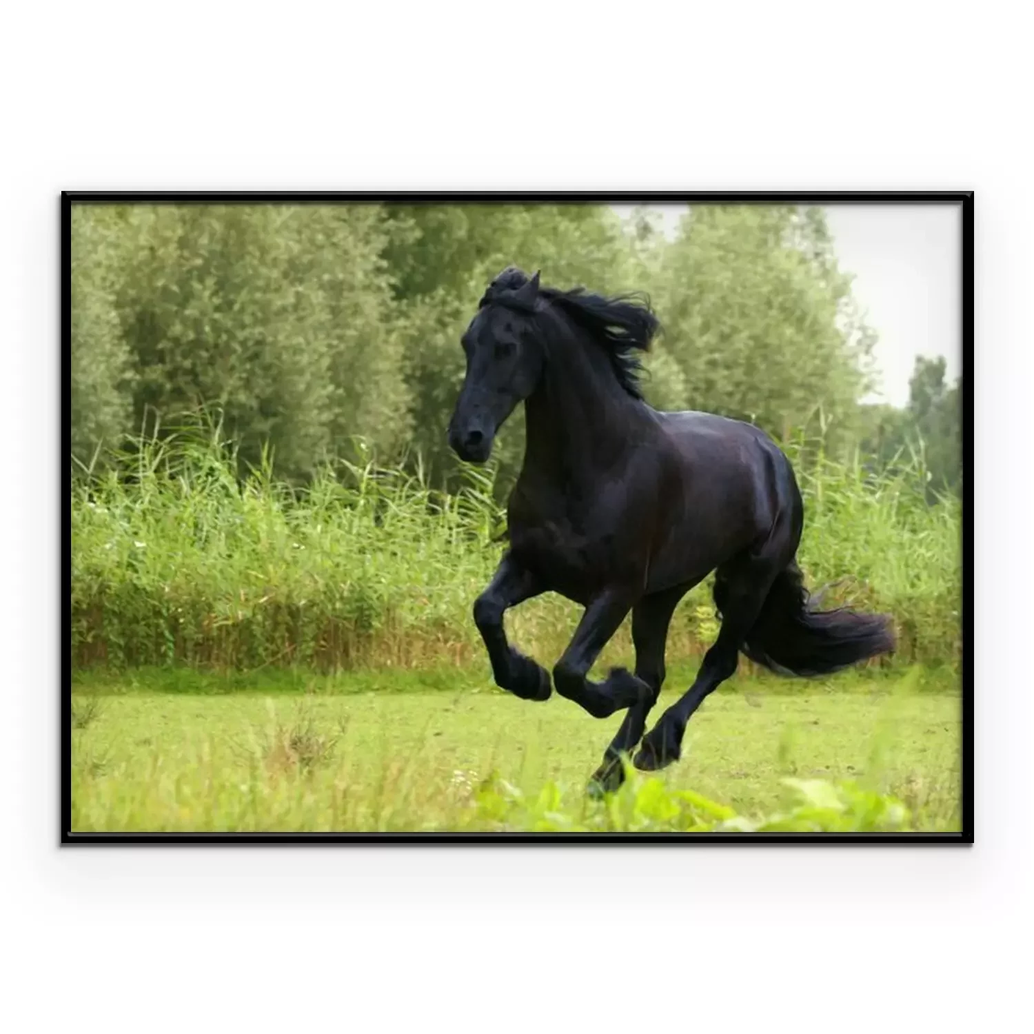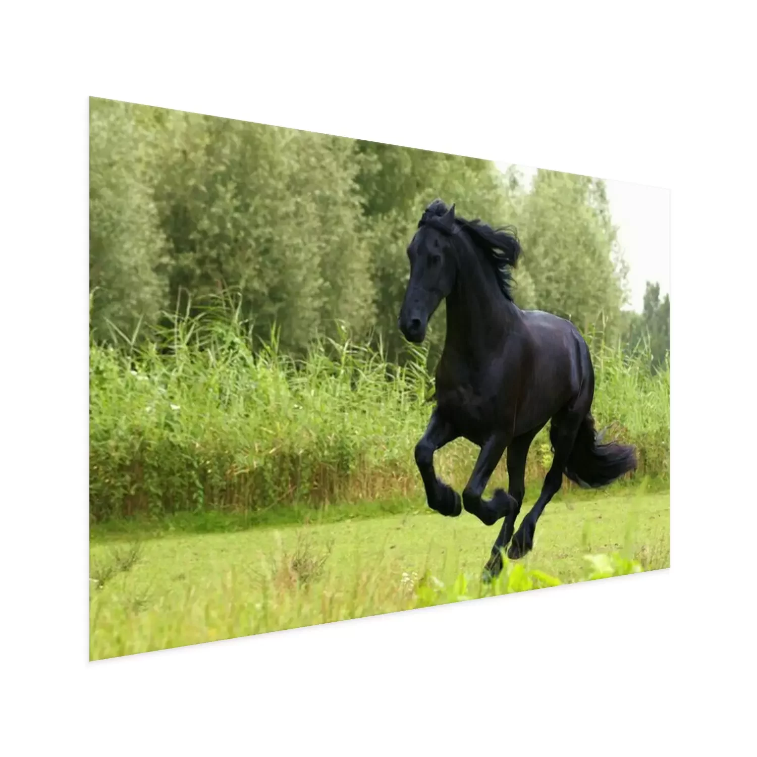 Poster : Cheval noir dans une prairie