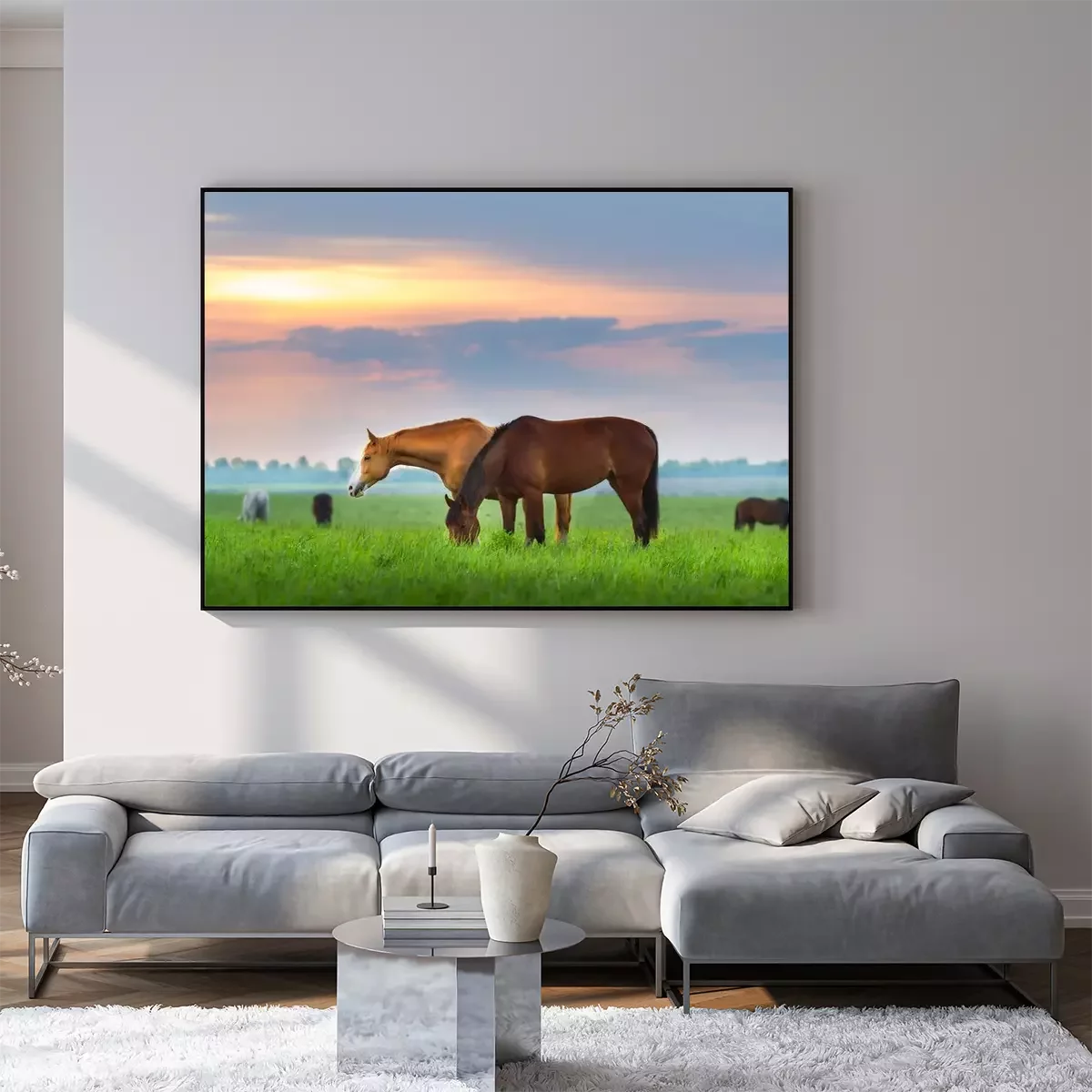 Poster  Chevaux dans le pré le matin