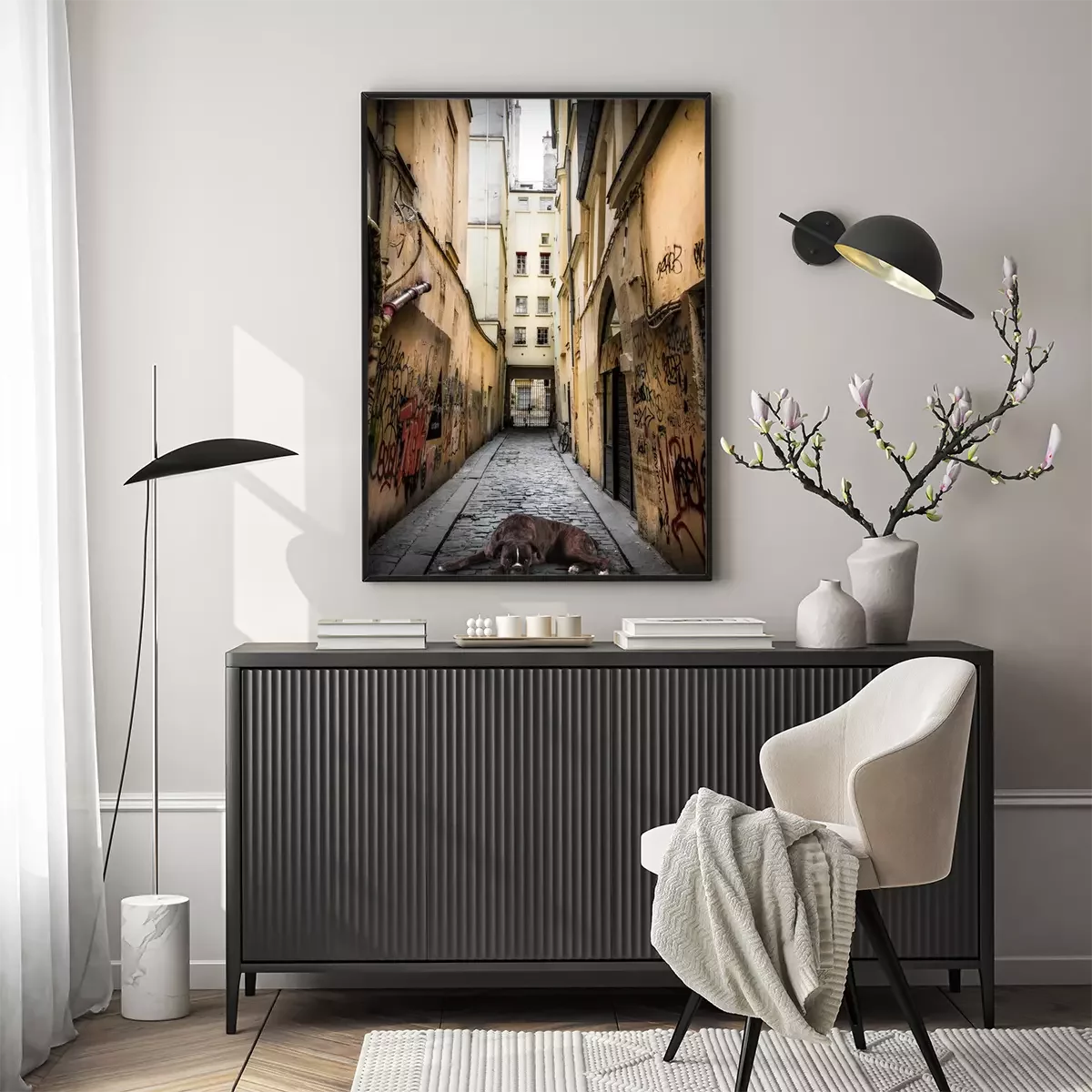 Poster  Chien animal parmi les rues de la ville
