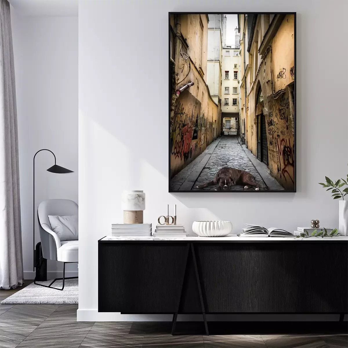 Poster : Chien animal parmi les rues de la ville