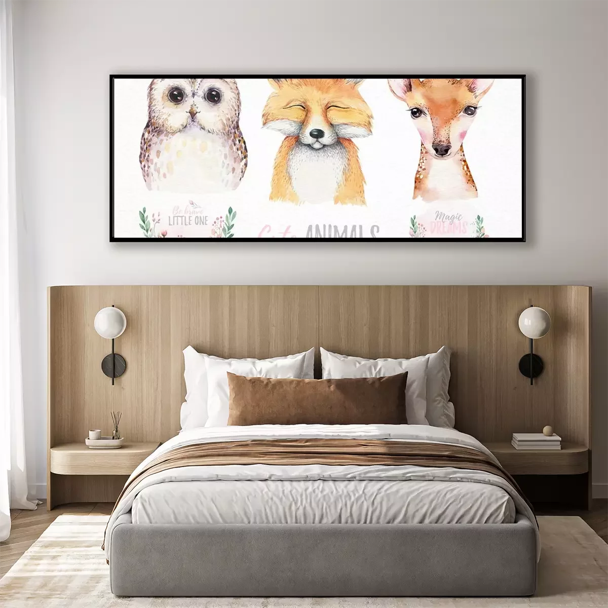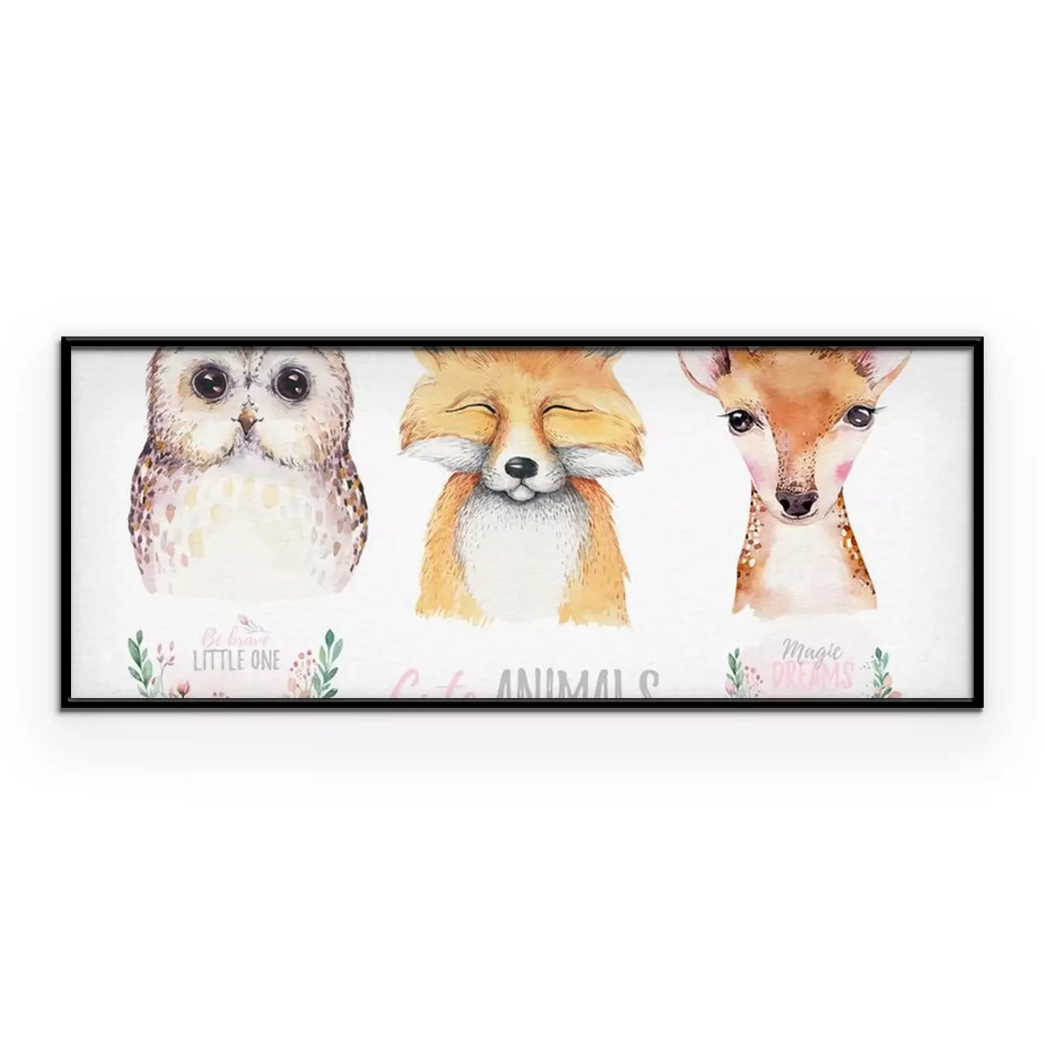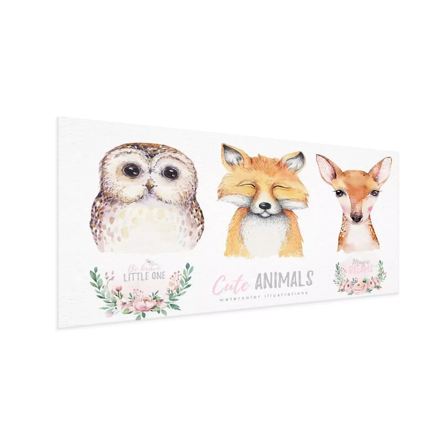 Poster  Chouette aquarelle renard et cerf et fleurs