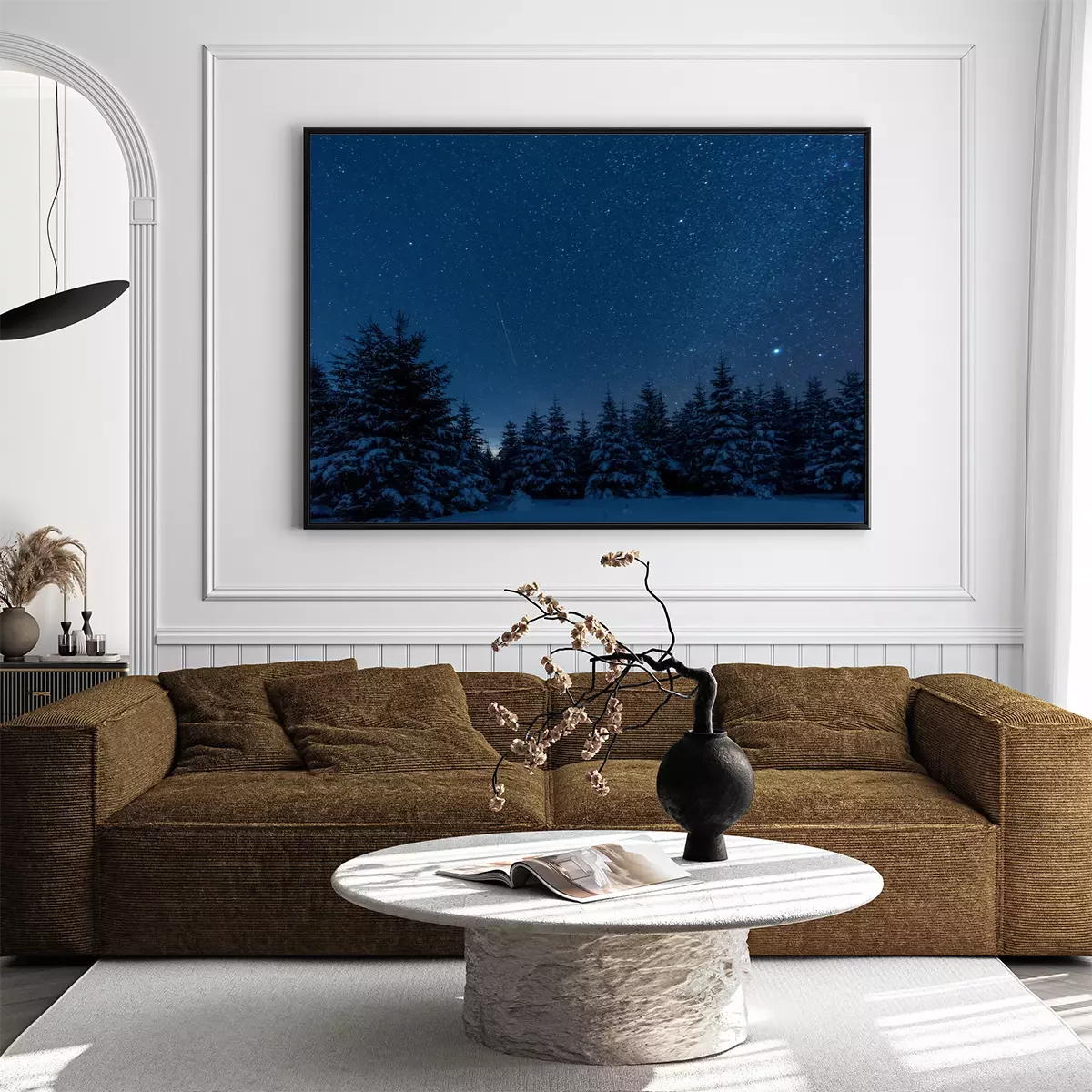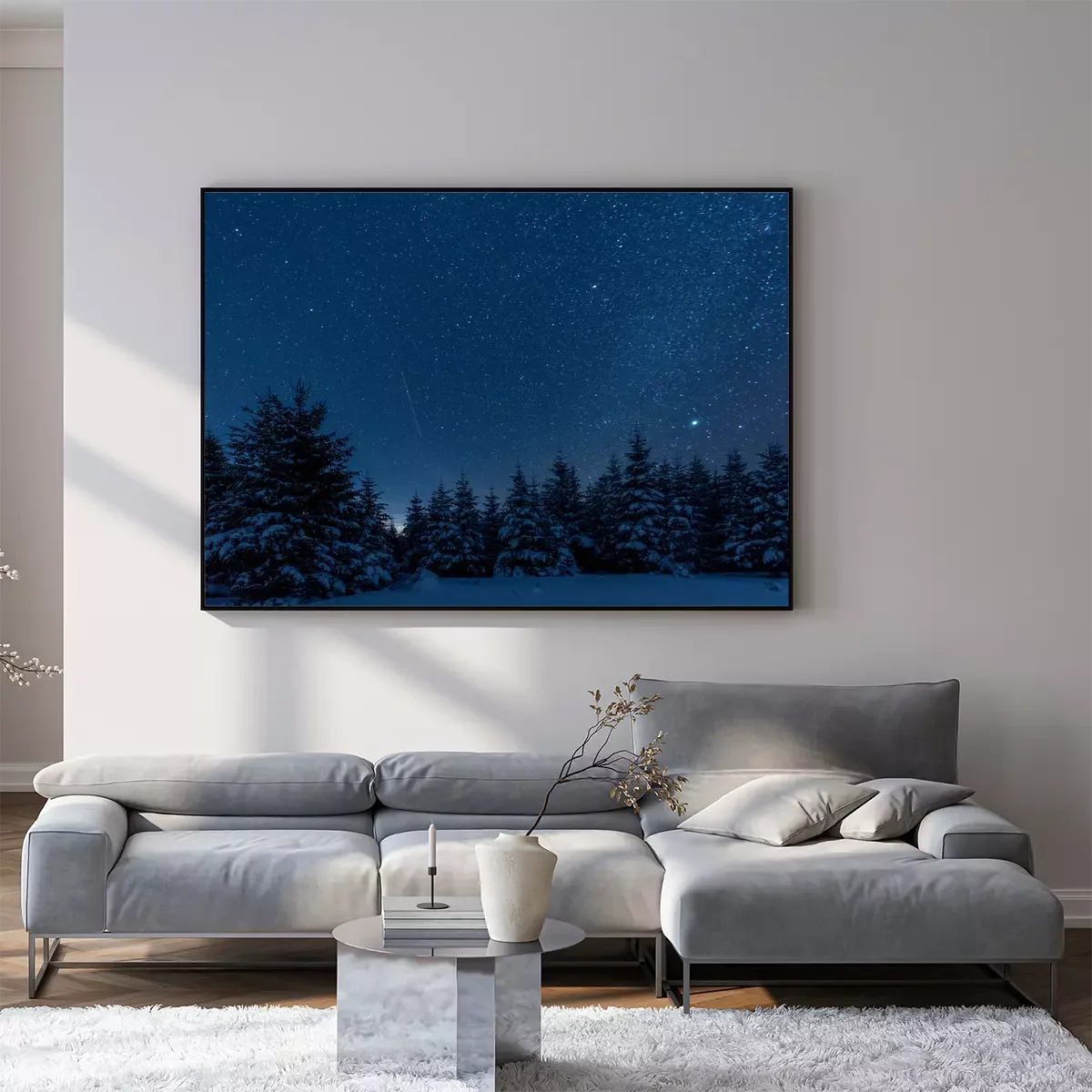 Poster  Ciel nocturne au-dessus de la forêt d'hiver