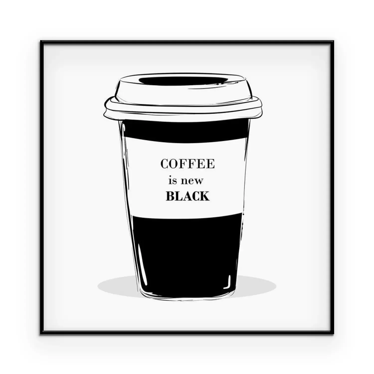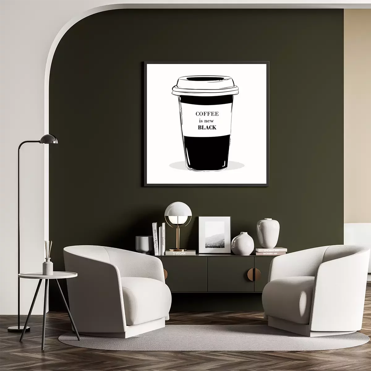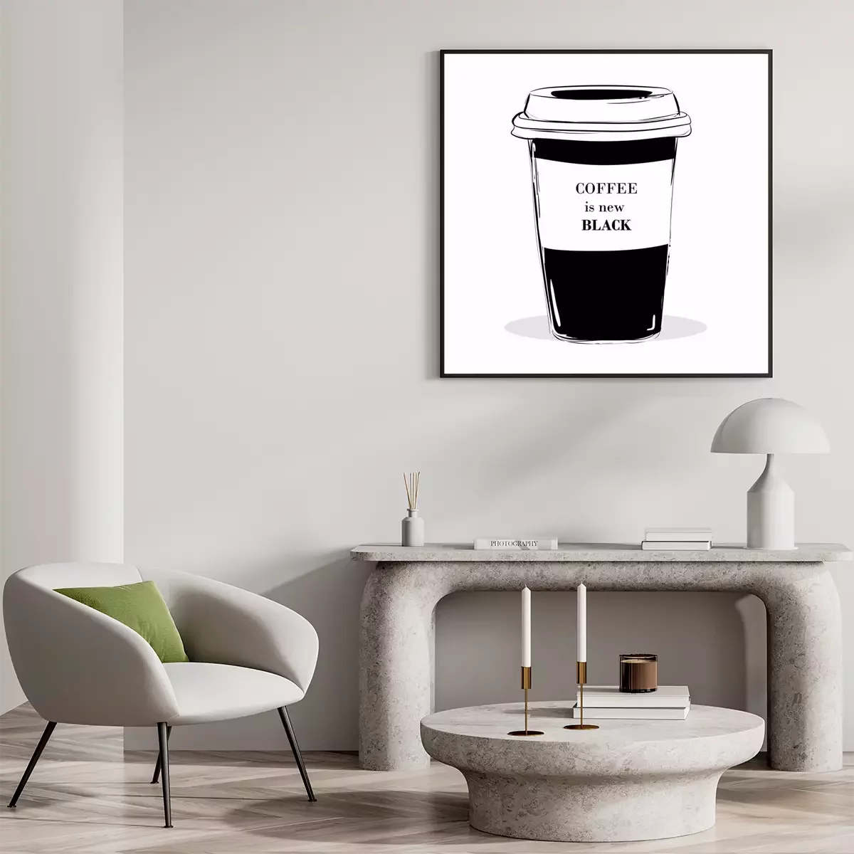 Poster : Citer le lettrage sur une tasse noire de café. Le café est une nouvelle citation au café au style calligraphie noir. Motivation de la promotion du café. Typographie graphique. Illustration dessinée à