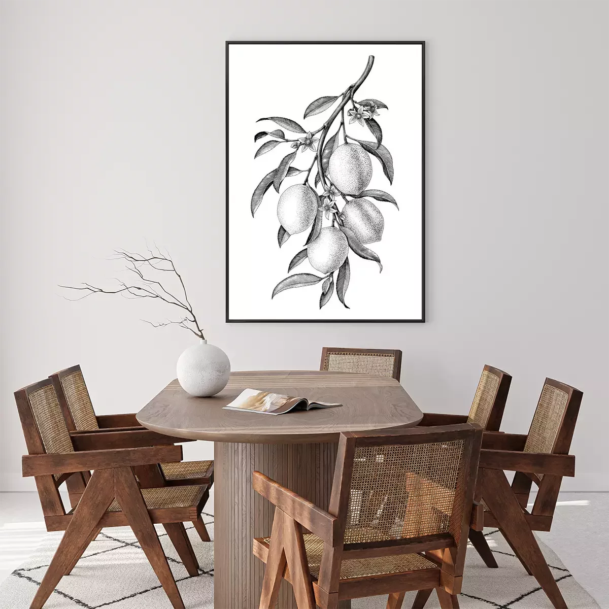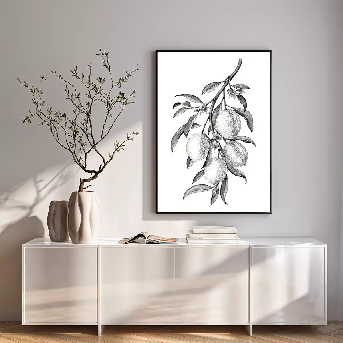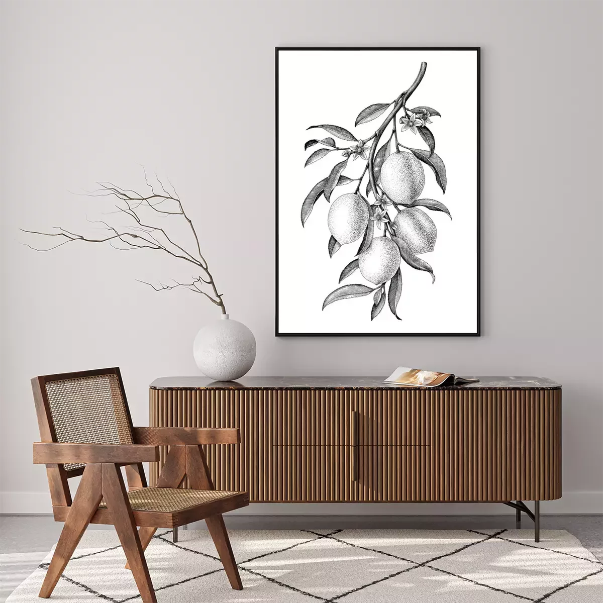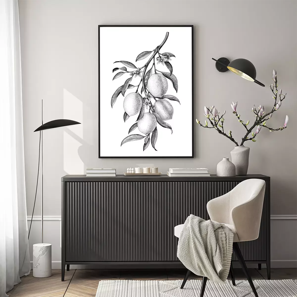 Poster  Citron avec une branche noire et blanche