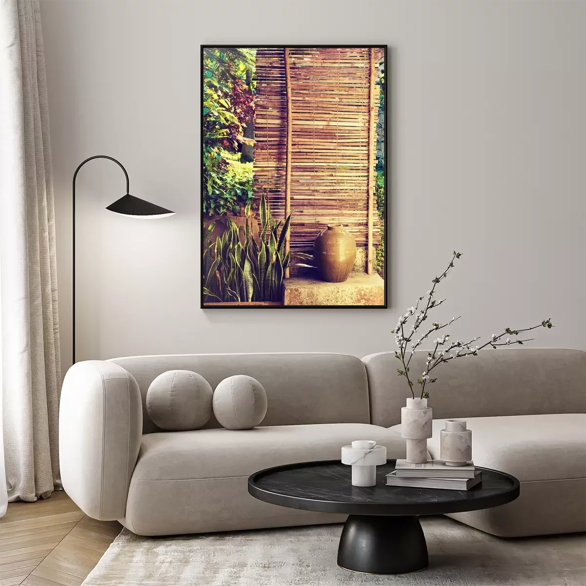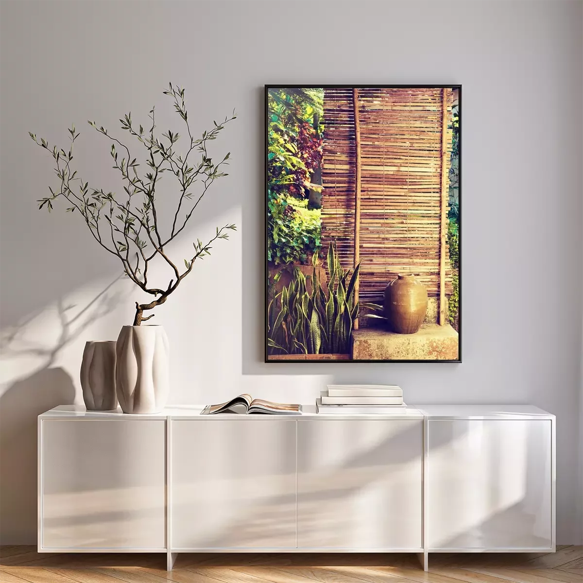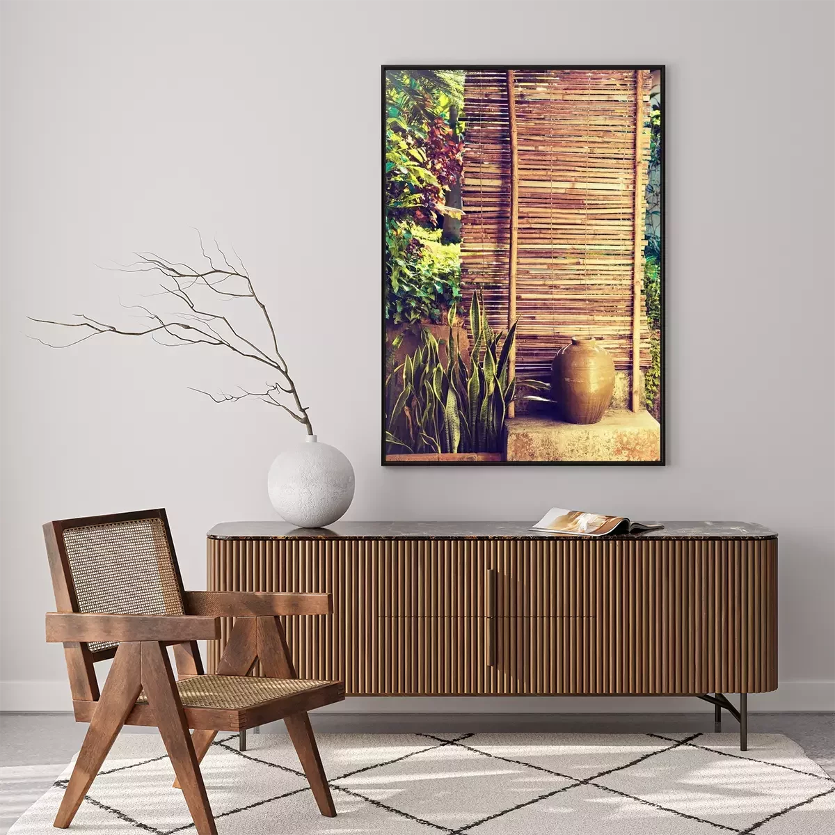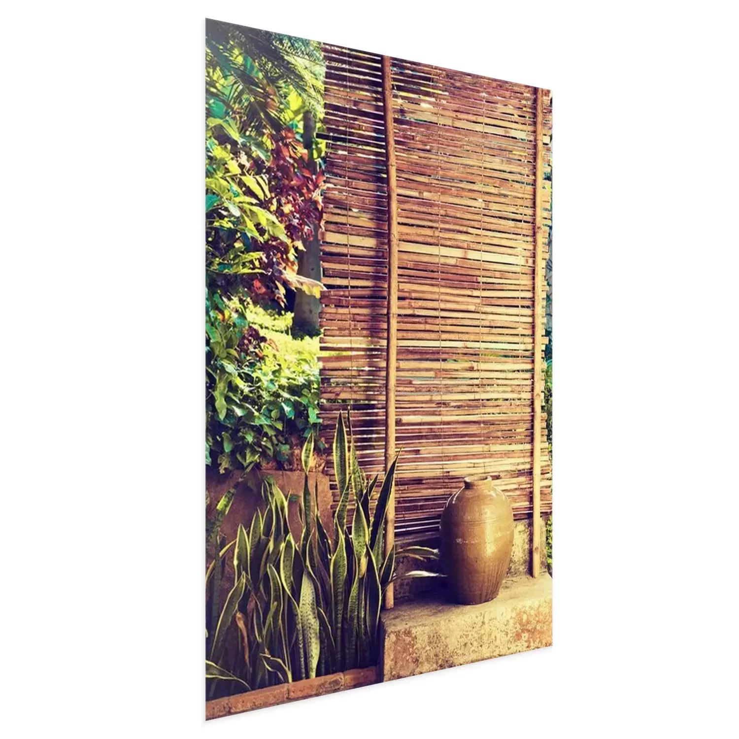 Poster : Clôture en bambou entourée de plantes