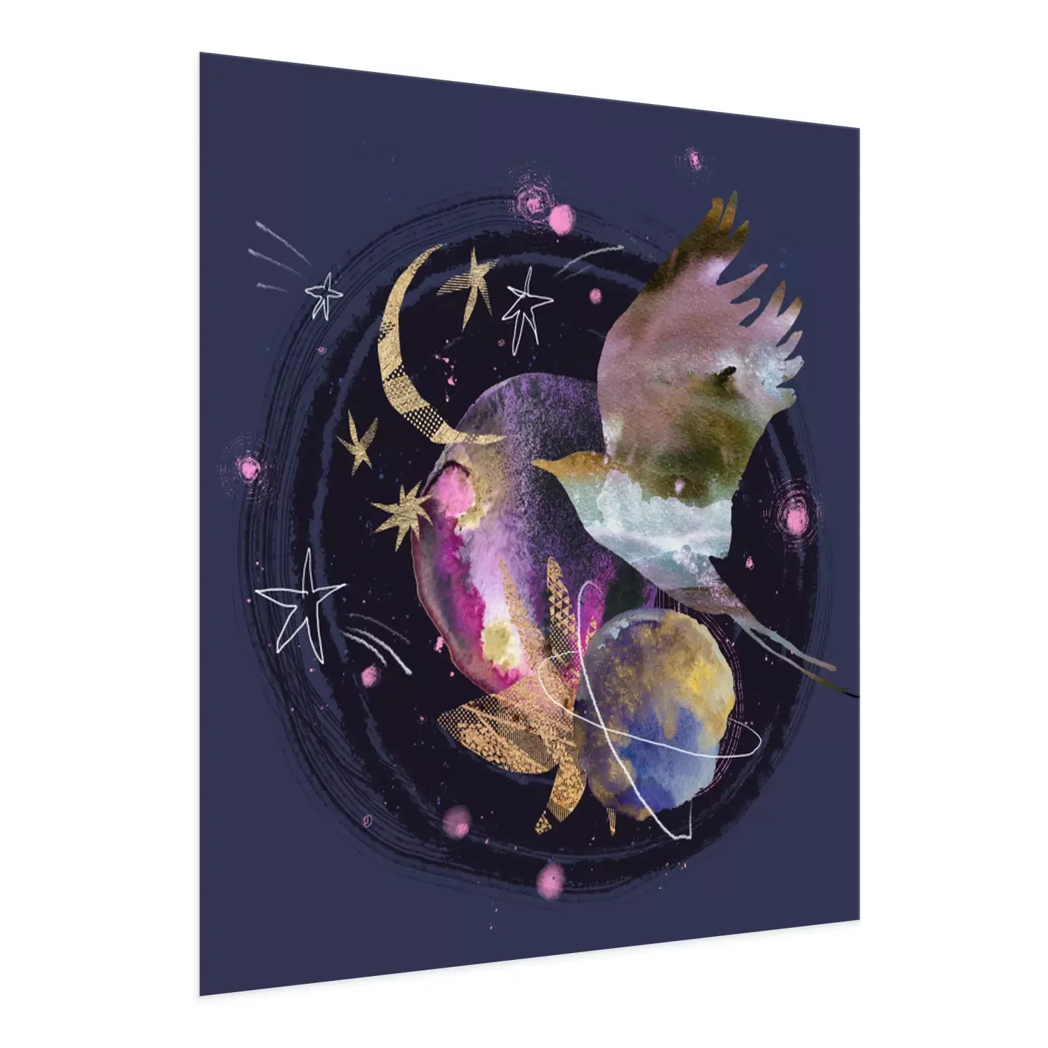 Poster : Collage artistique avec un oiseau