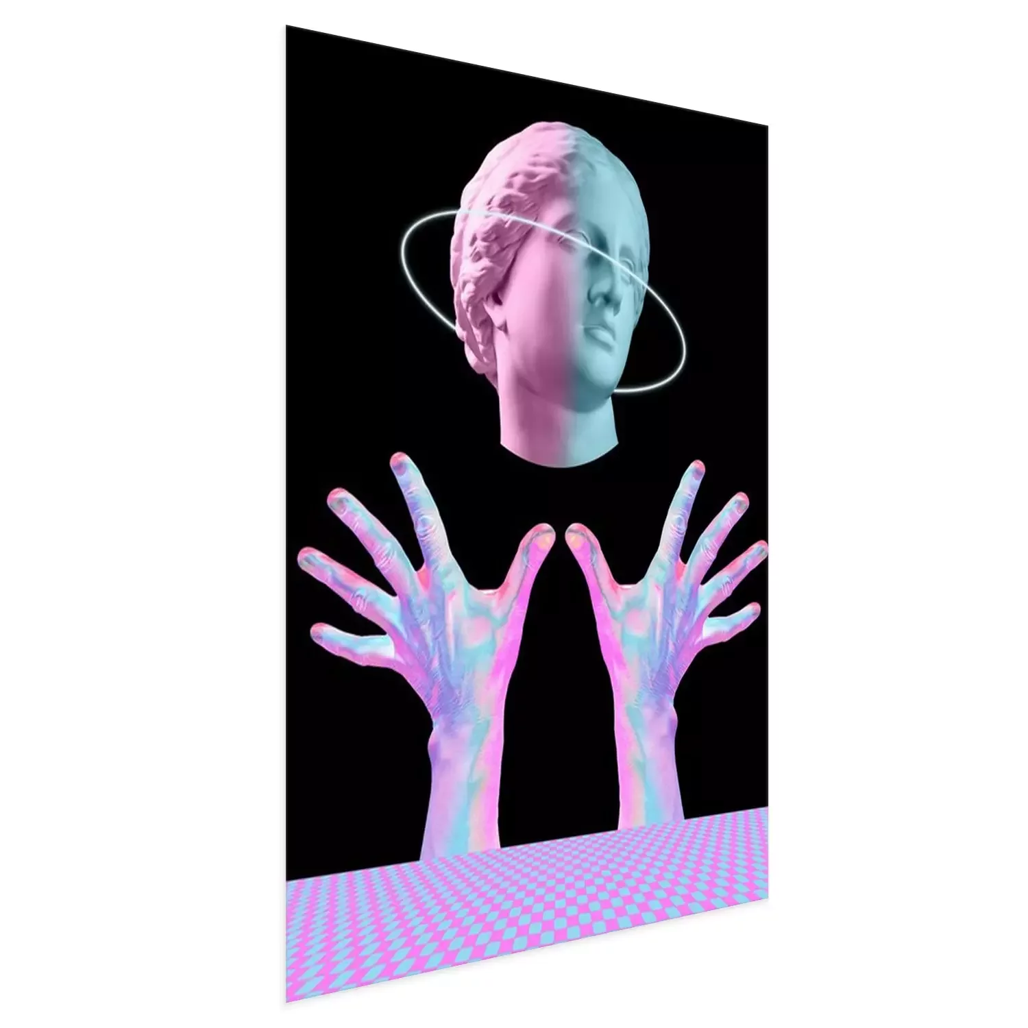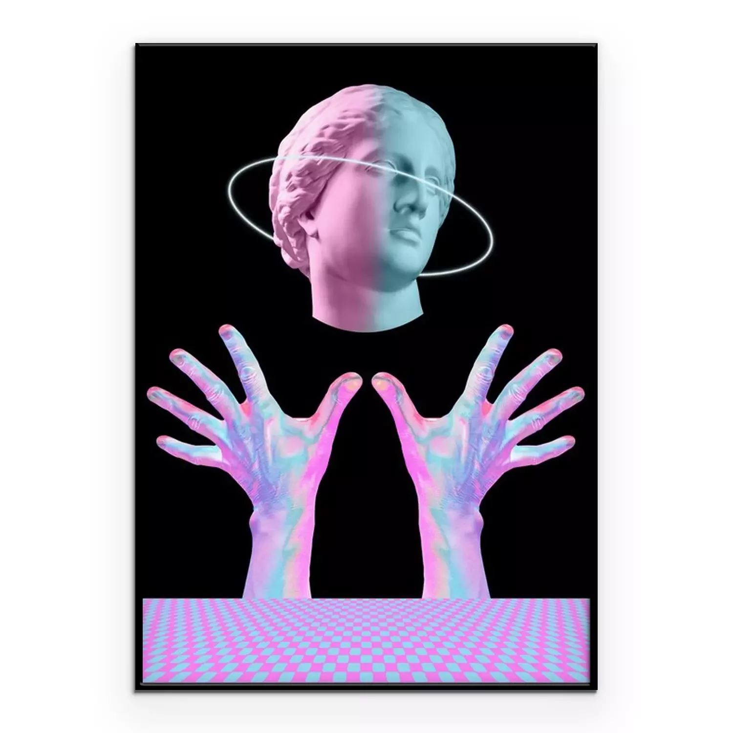 Modern conceptual art poster with ancient statue of bust of Venus. Collage of contemporary art.