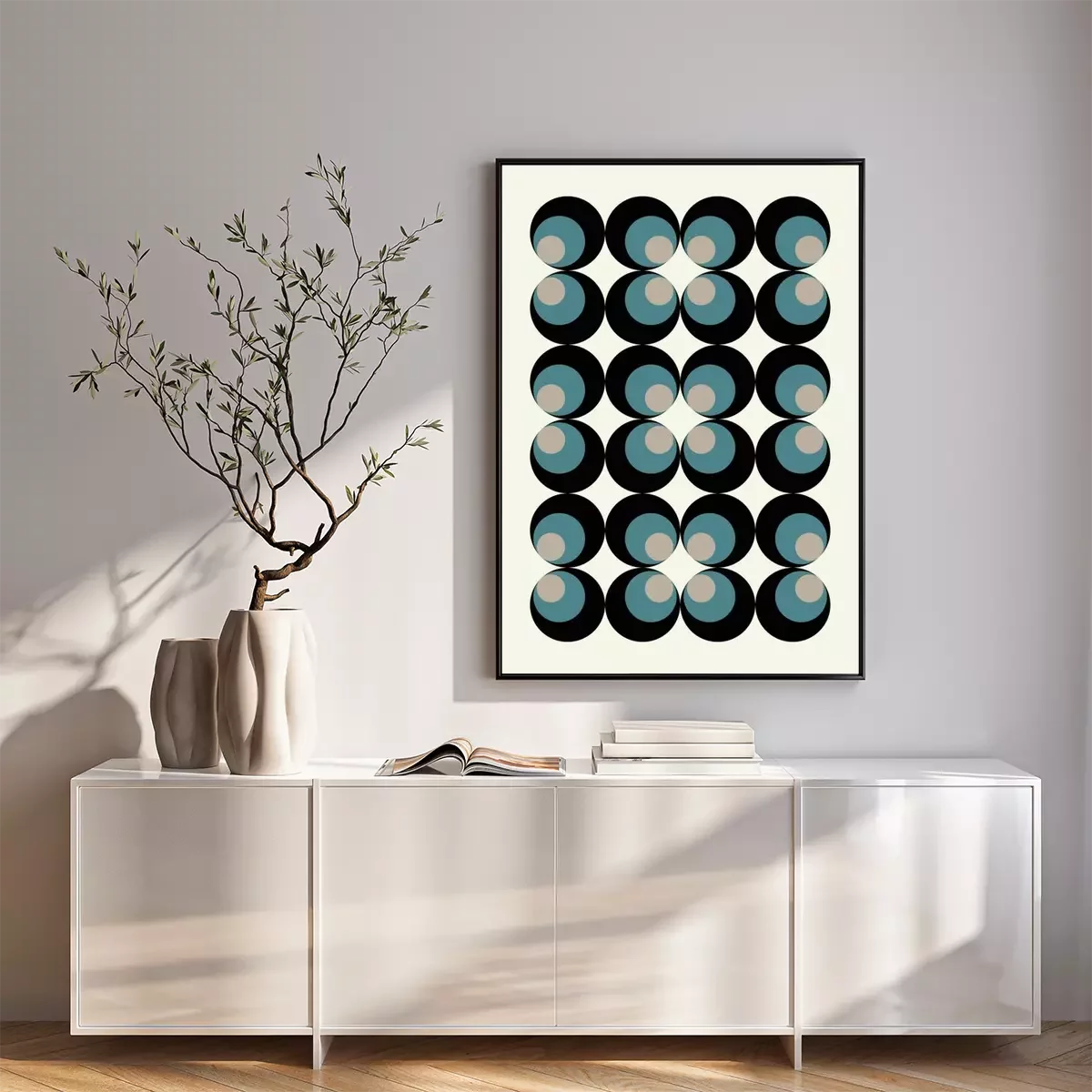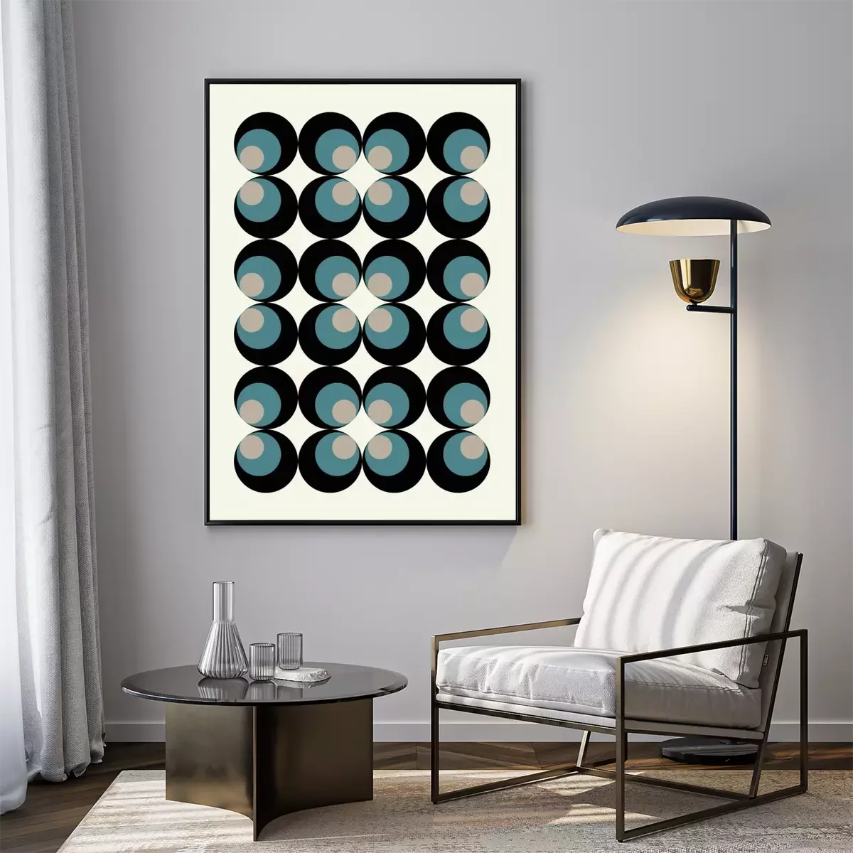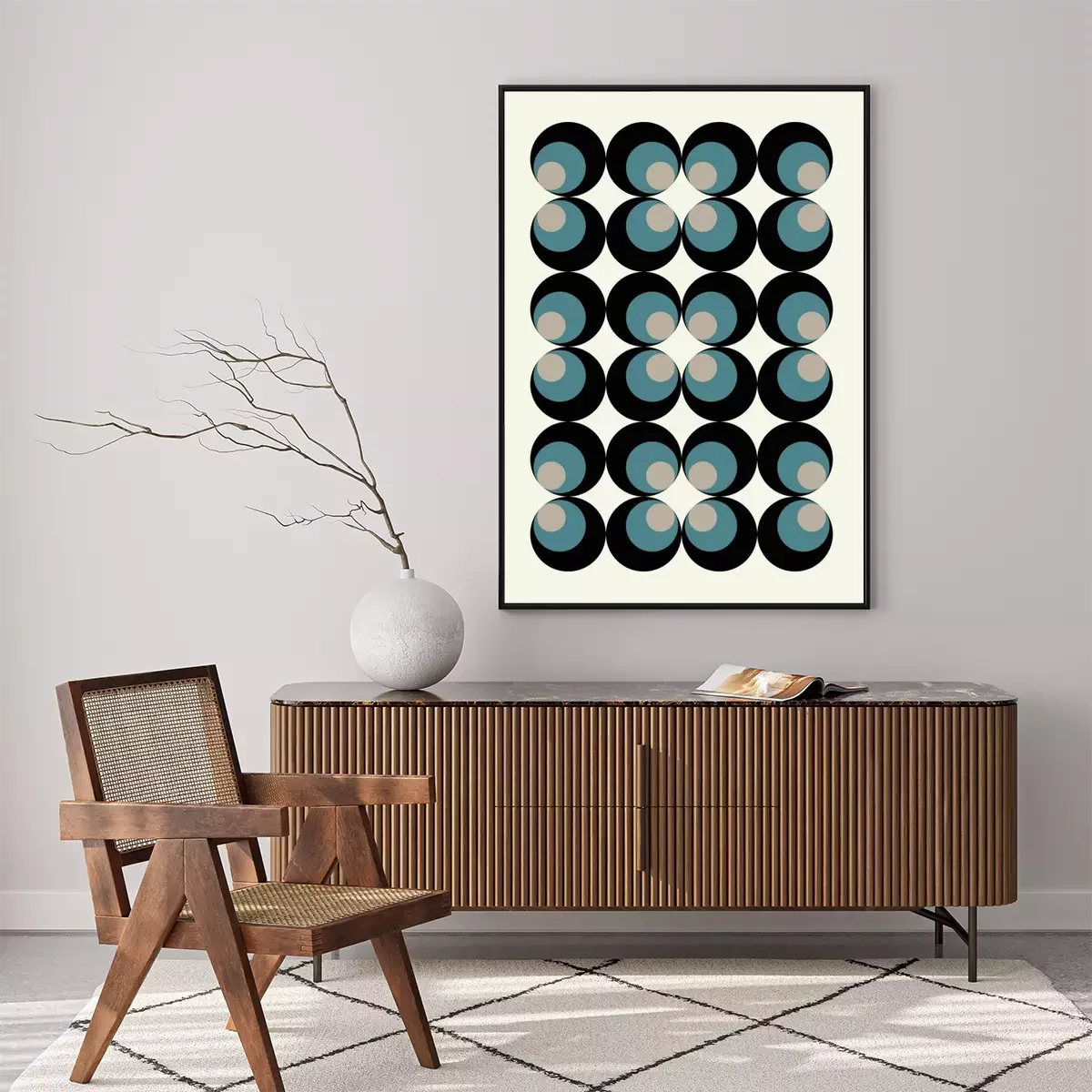 Composition abstraite avec des cercles bleus et noirs dans le style bauhaus