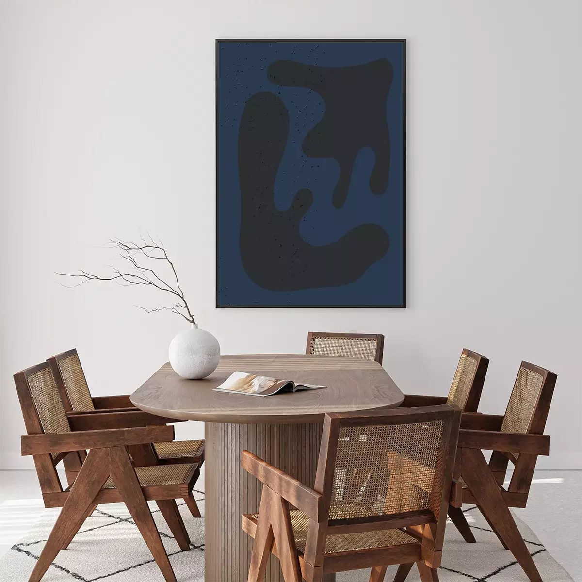 Poster : Composition abstraite noire sur fond bleu foncé