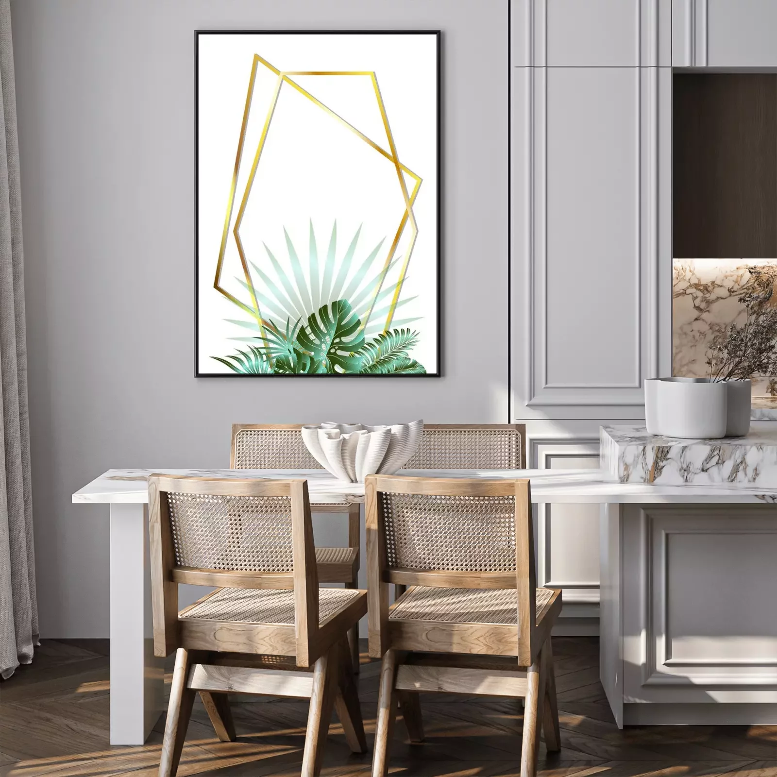 Poster : Composition de feuilles tropicales dans un cadre doré