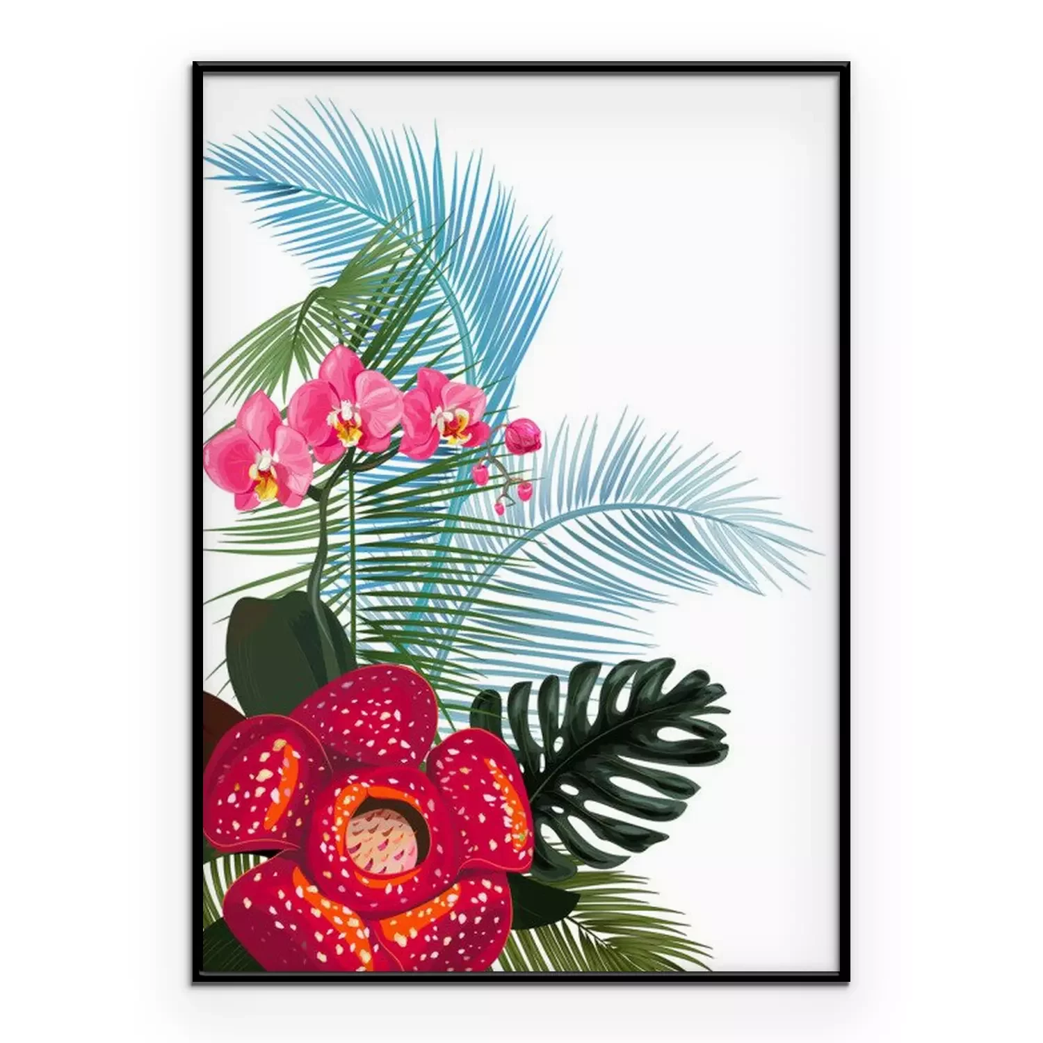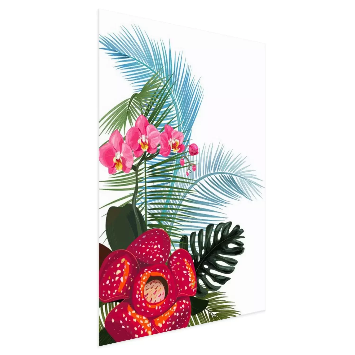 Poster : Composition de fleurs exotiques et de feuilles de monstera et de fougères