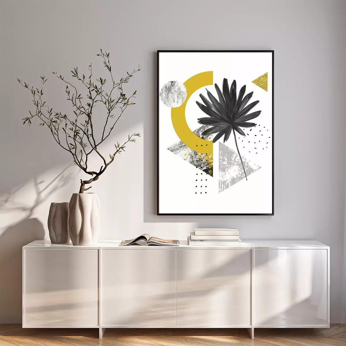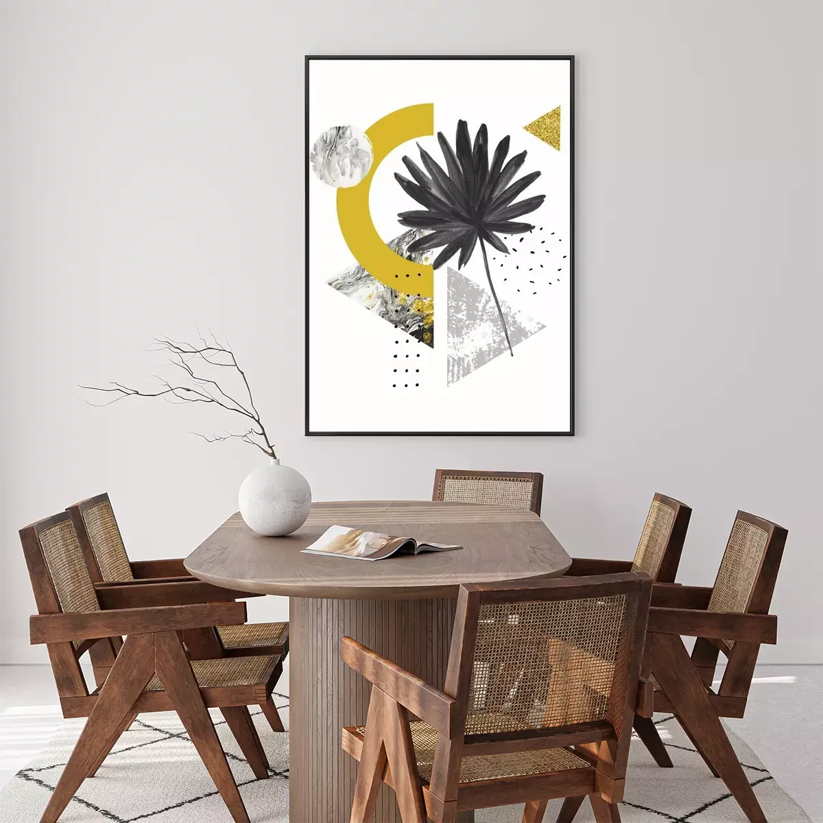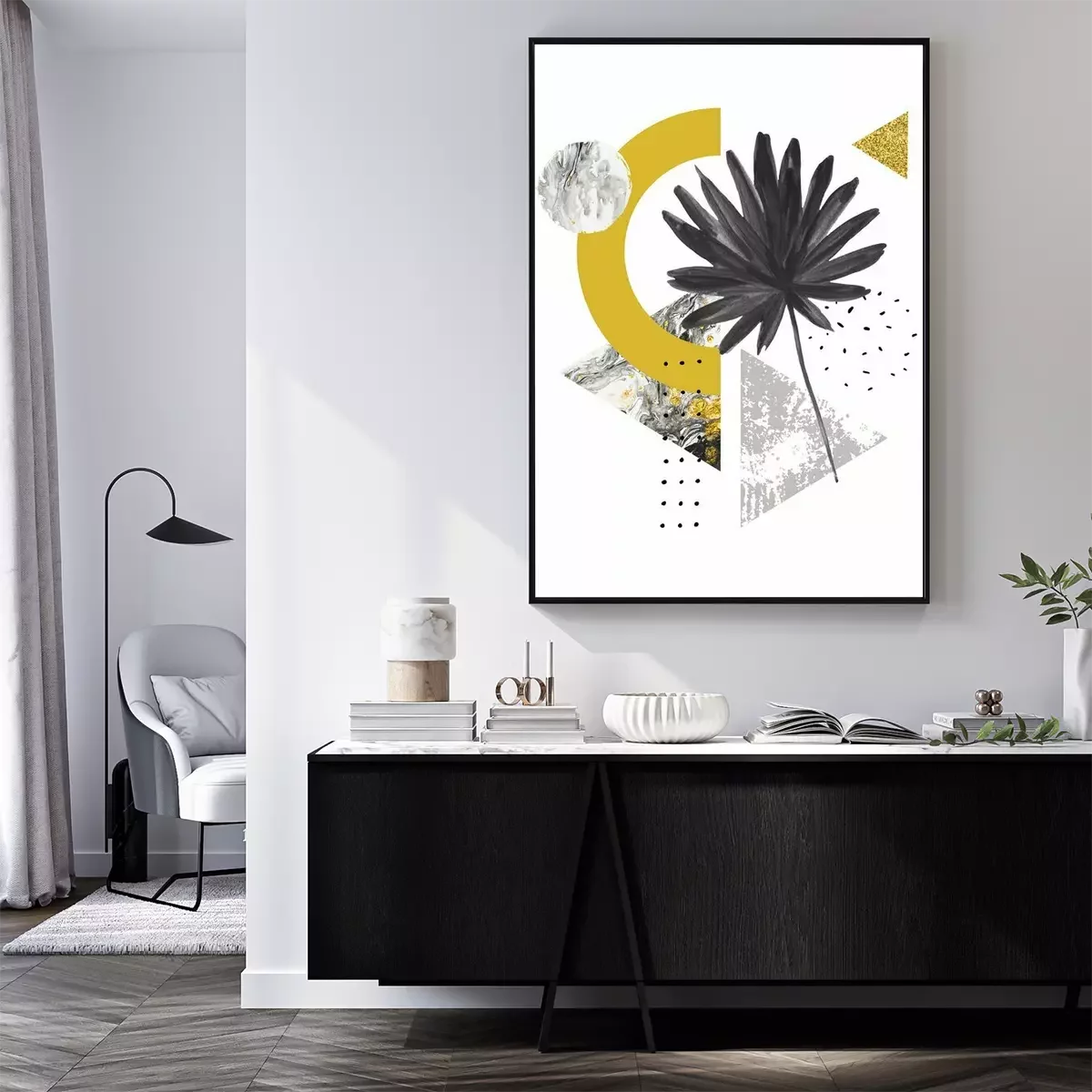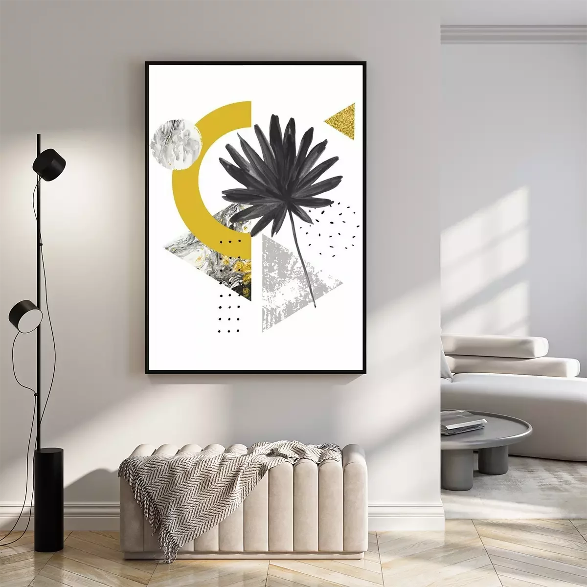 Composition exotique avec monstera et triangles