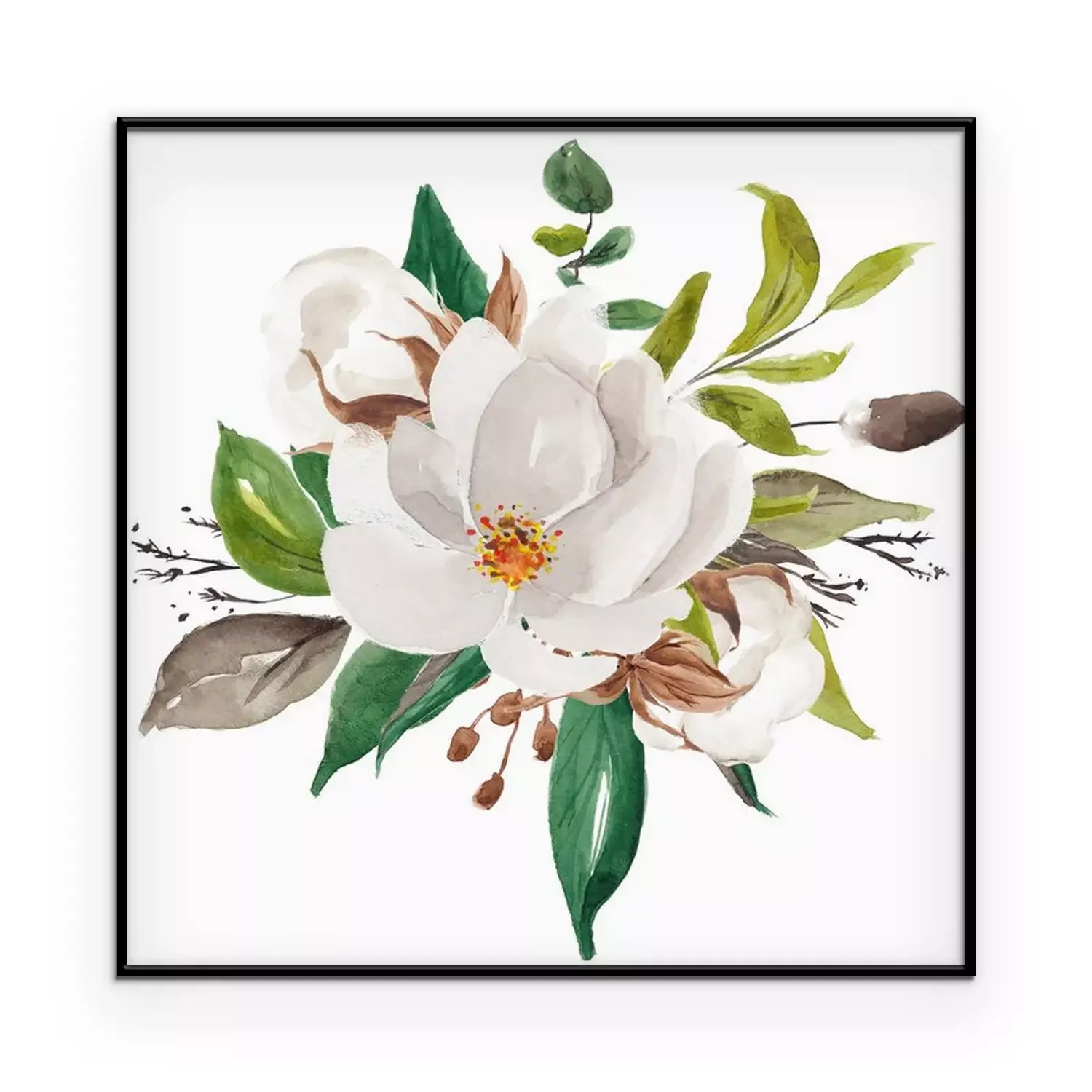 Poster : Composition de magnolias aquarelle avec des feuilles