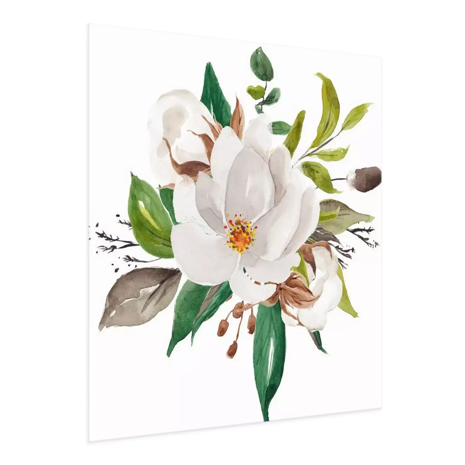 Poster  Composition de magnolias aquarelle avec des feuilles