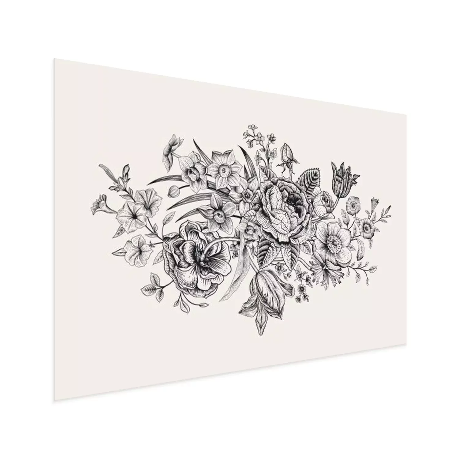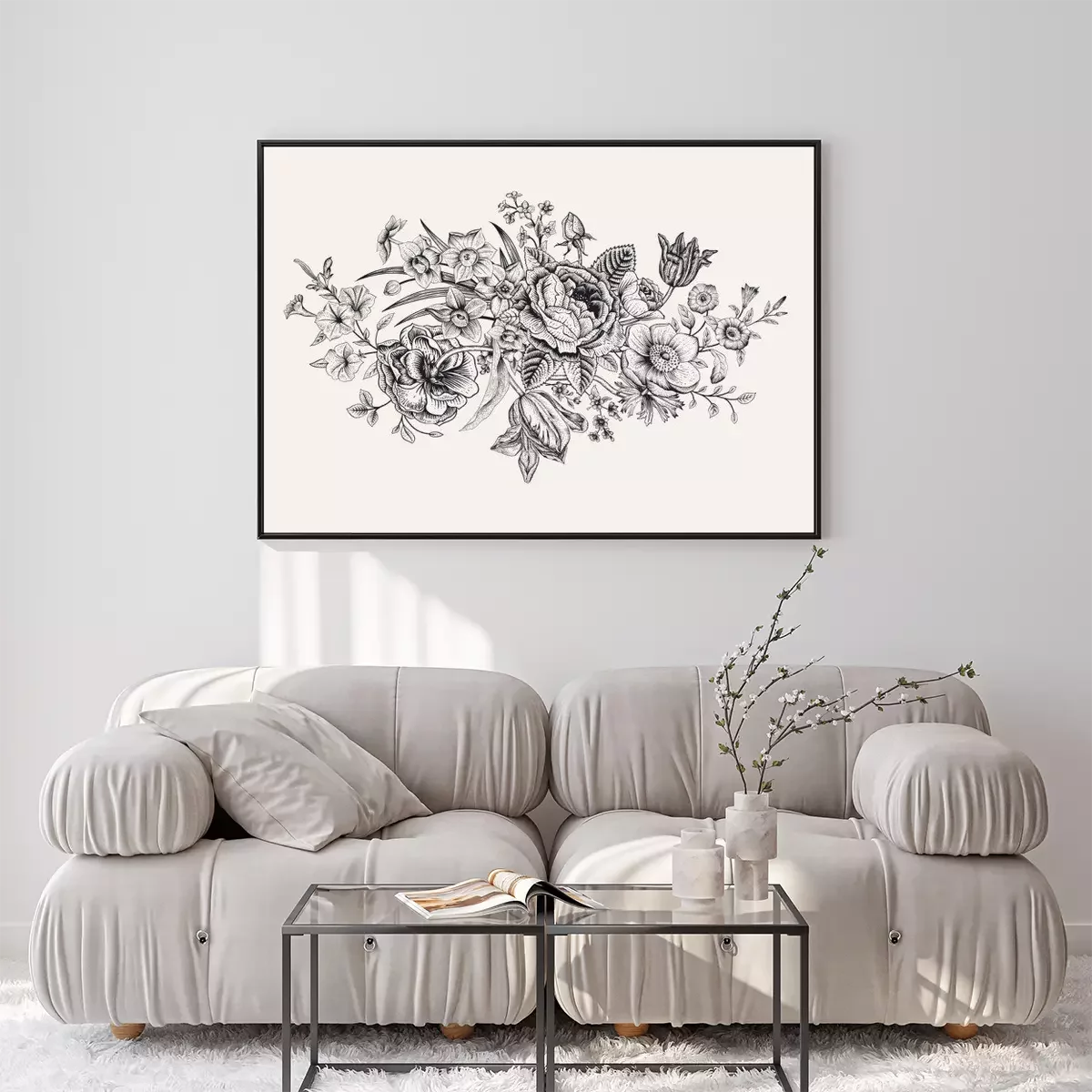 Poster  Composition de tulipes et de fleurs en noir et blanc