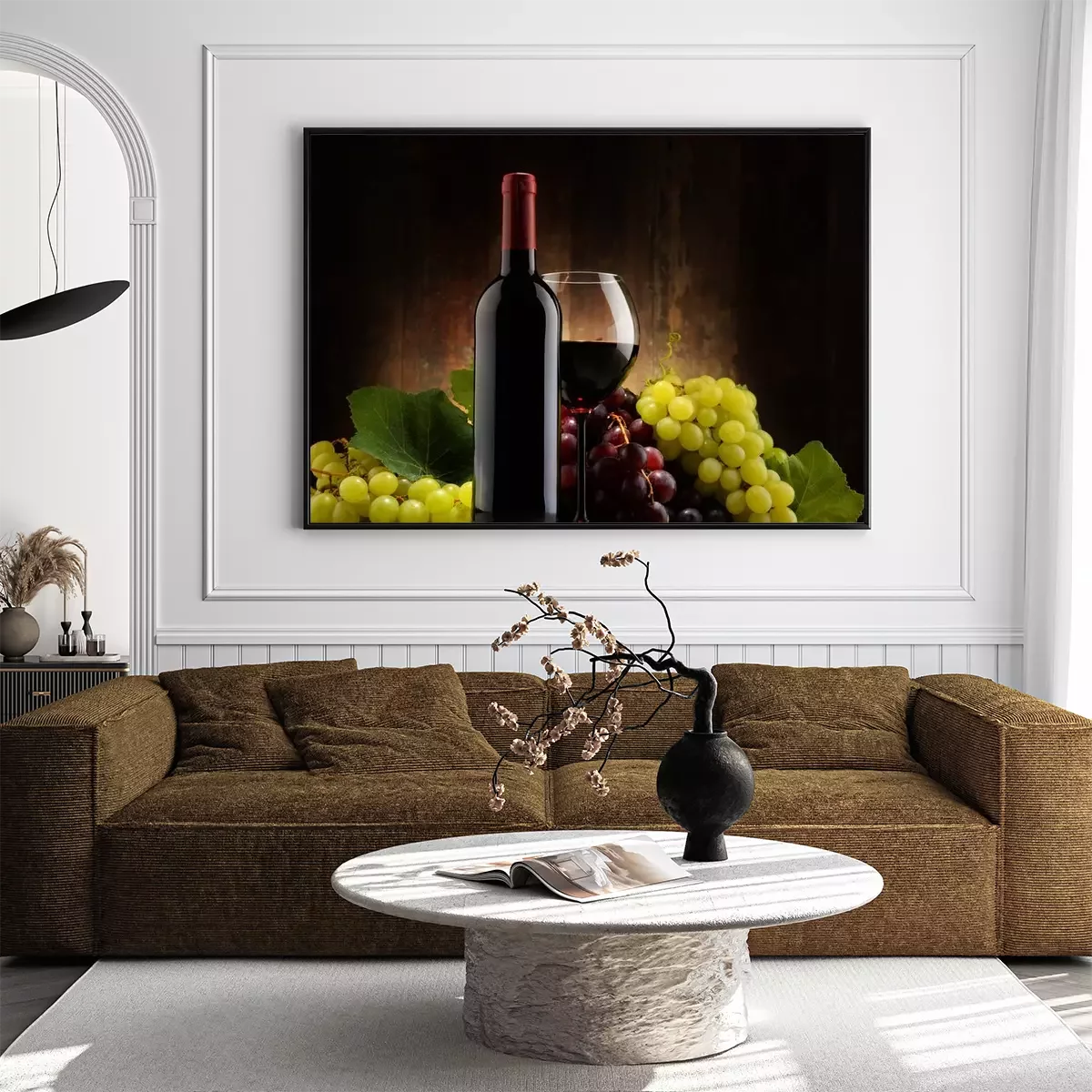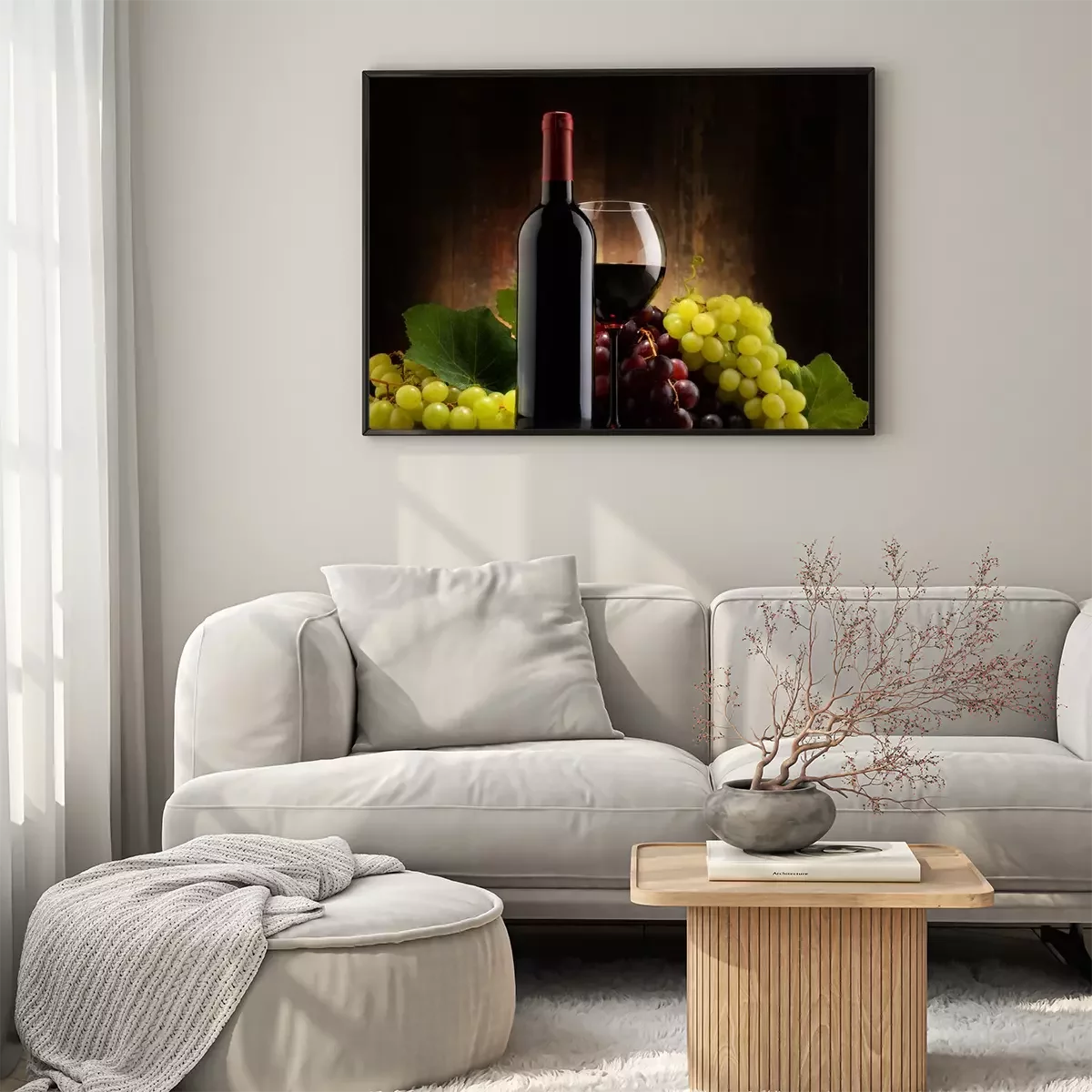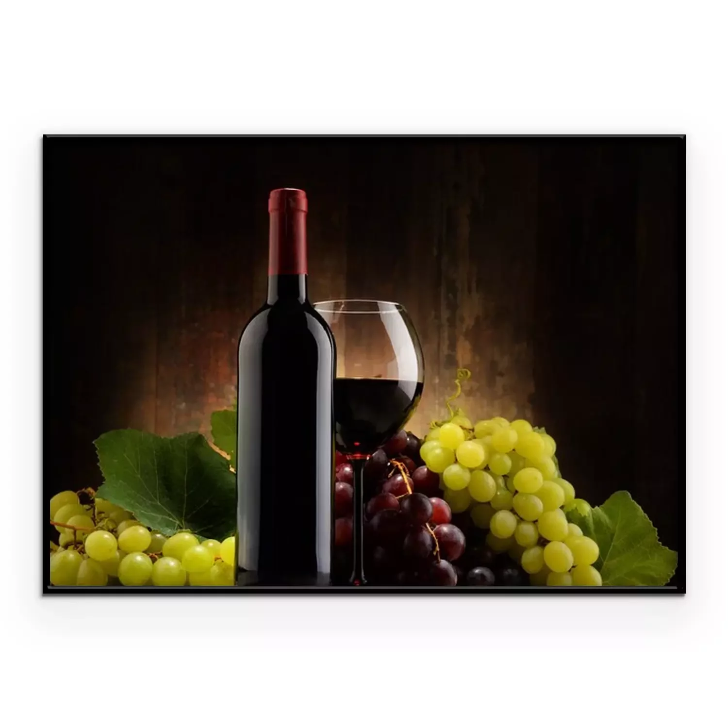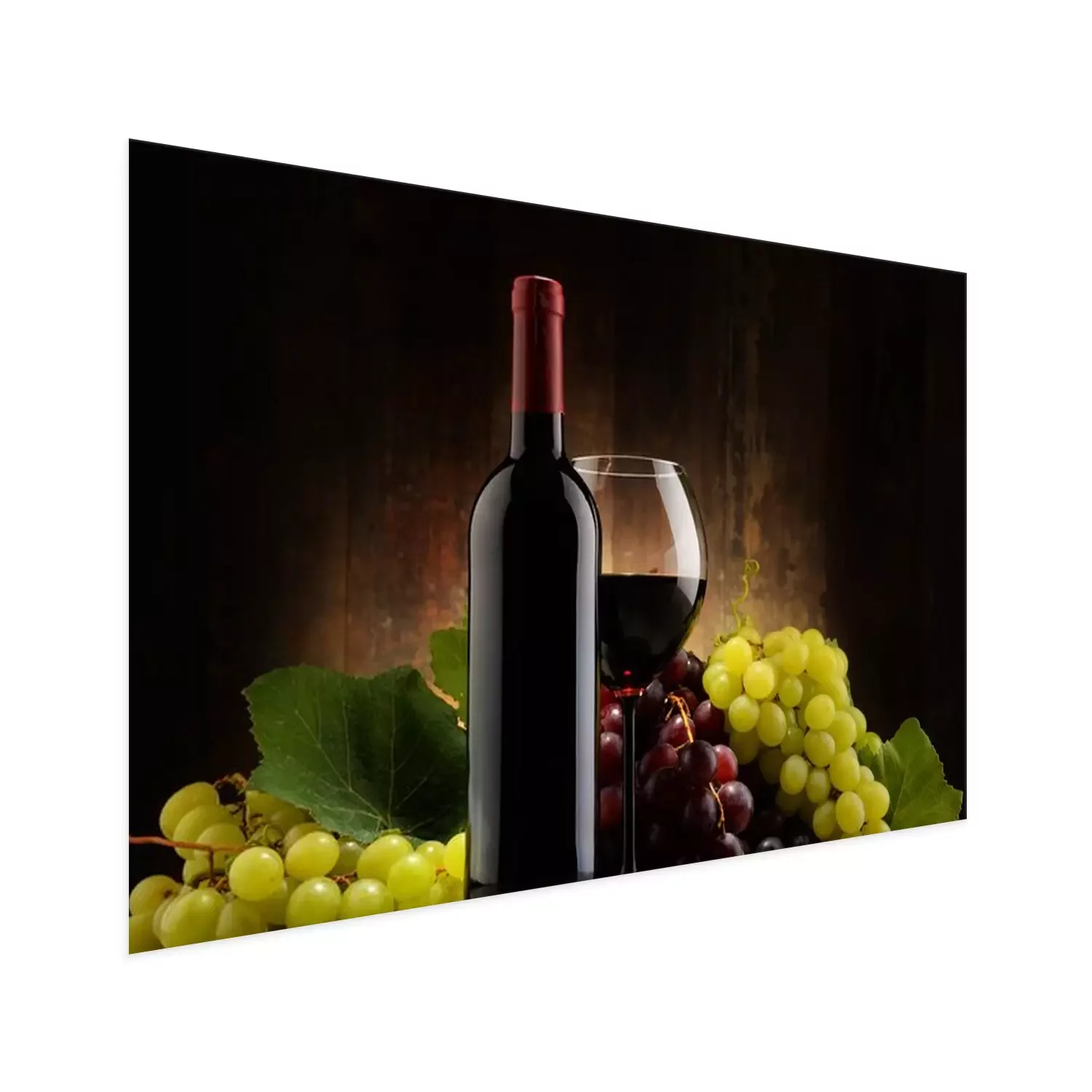 Poster : Composition de verre, bouteille de vin rouge et de raisins frais