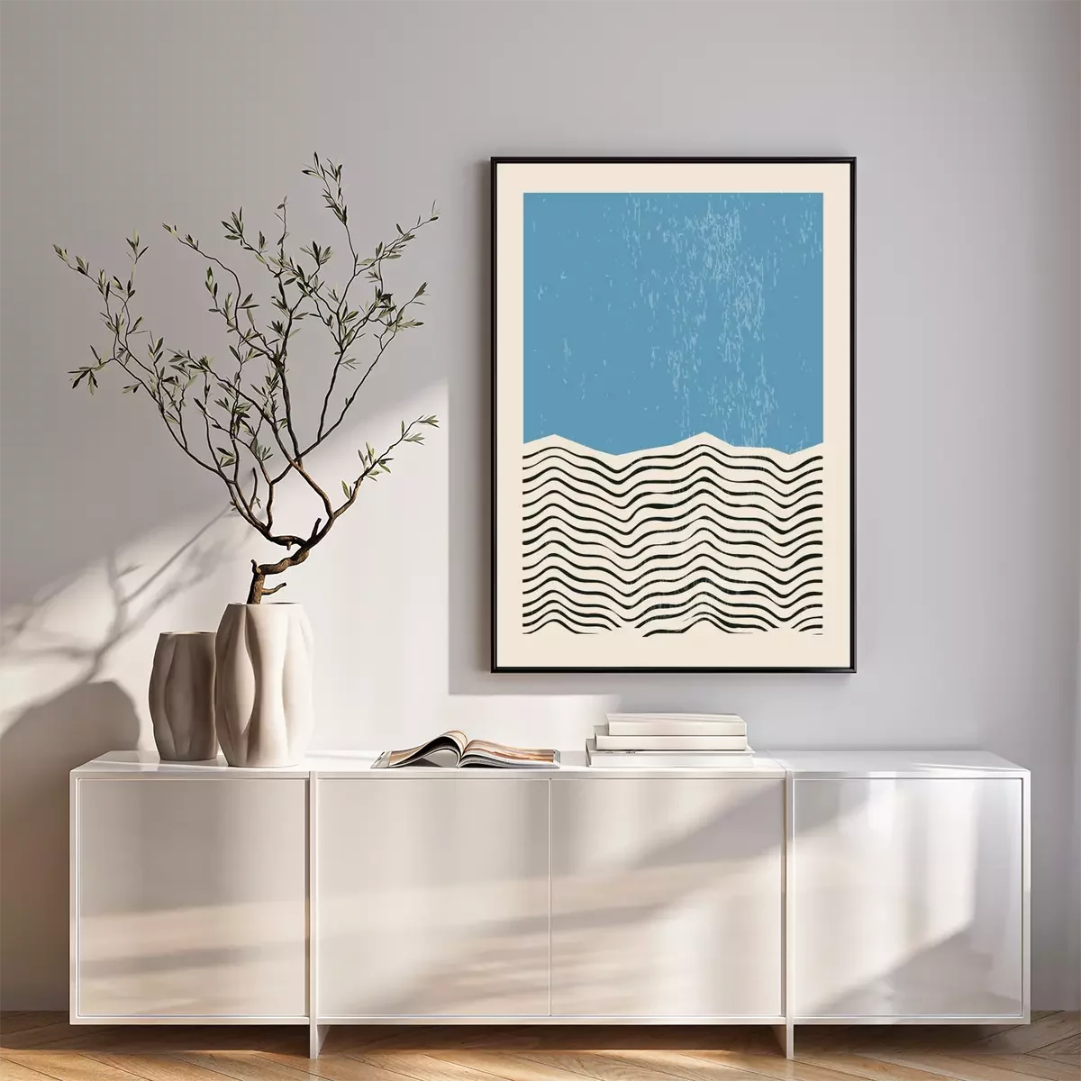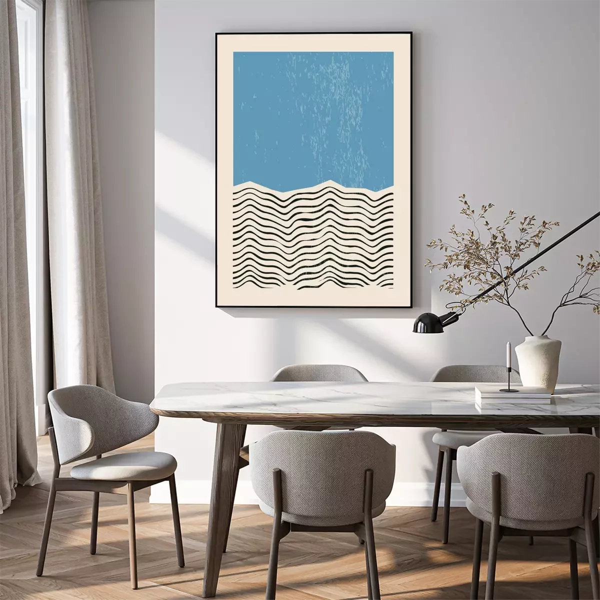 Composition géométrique inspirée du bauhaus avec des lignes et des formes bleues